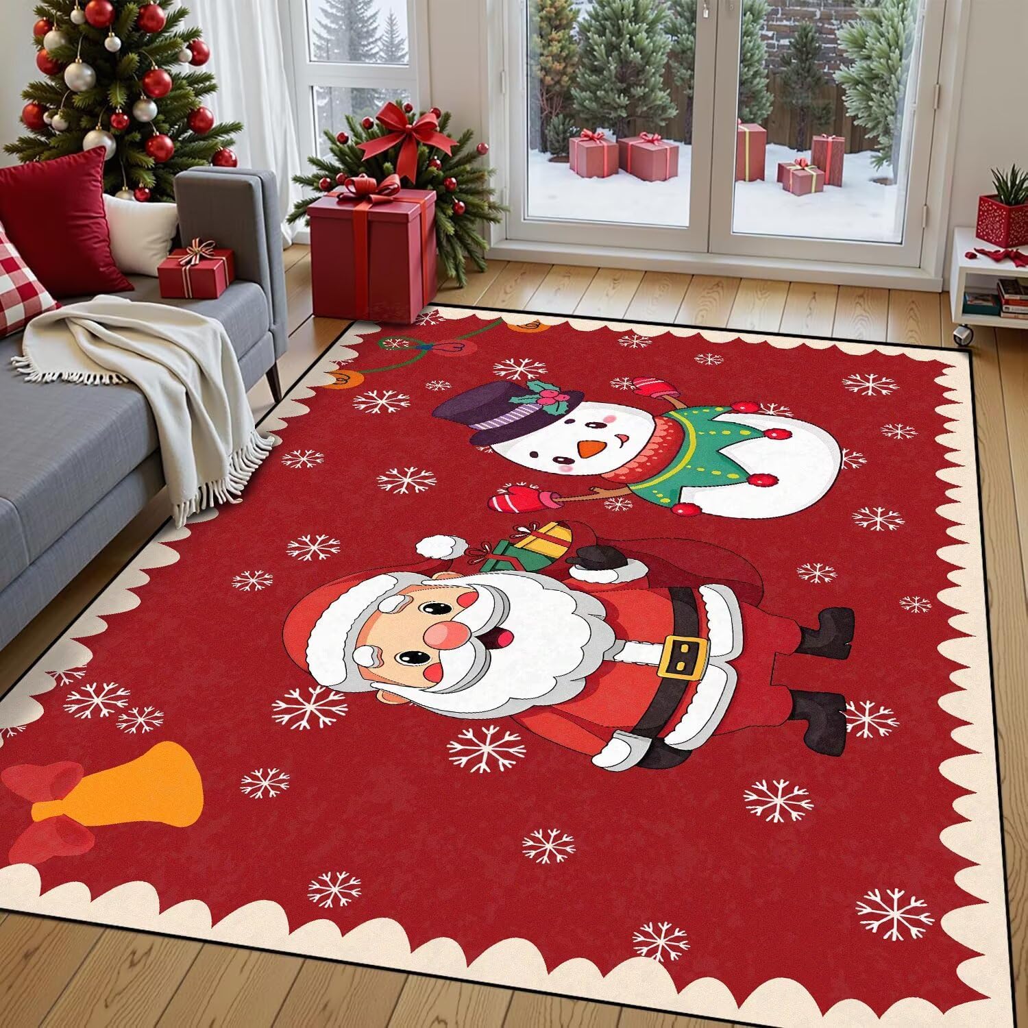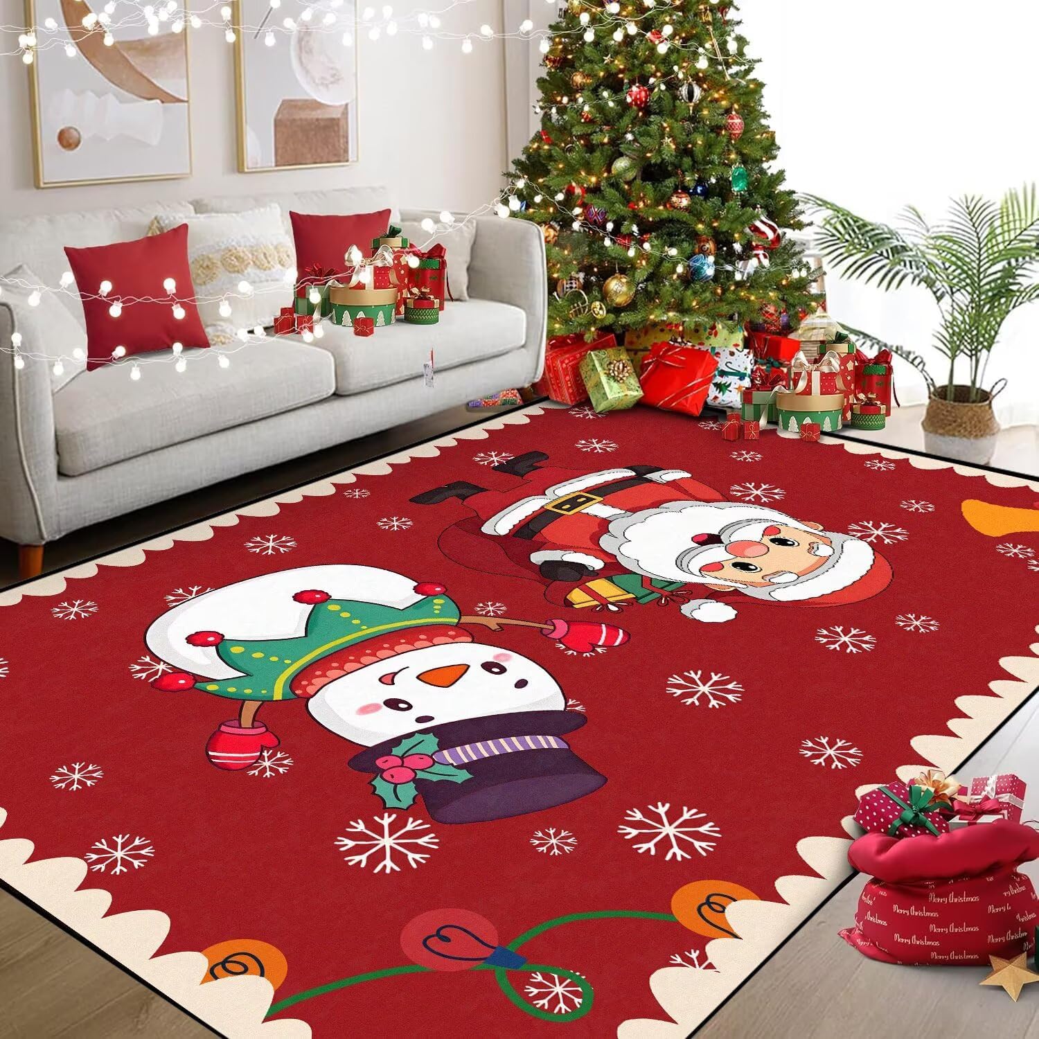 Tamaño de la alfombra de Papá Noel: la alfombra de muñeco de nieve de Navidad mide 3 x 5 (aprox. 152.4 cm) (35.4 x 59.1 (aprox. 150.1 cm)), con varios tamaños para elegir, satisface perfectamente diferentes requisitos de espacio y por lo que es una opción flexible para la decoración del hogar durante Navidad.