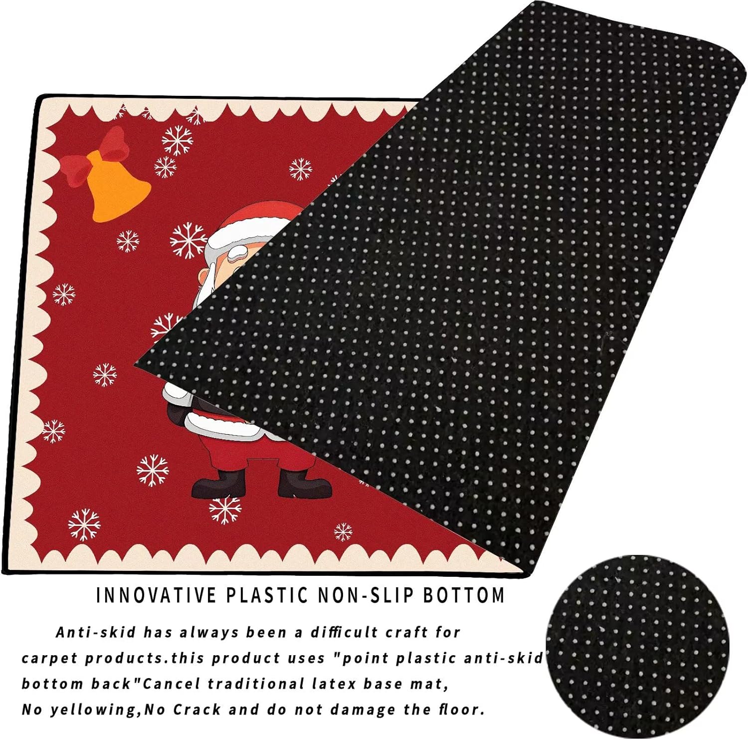 Material: la alfombra temática navideña está hecha de 100% fibra de poliéster, y la parte inferior de la alfombra está recubierta con pegamento antideslizante de alta calidad, que tiene un fuerte agarre y evita eficazmente que la alfombra se deslice, asegurando la seguridad de los miembros de la familia e invitados caminando.