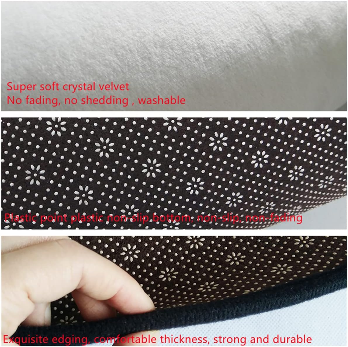 Alfombra de área mejorada: el proceso de tejido apretado garantiza que la alfombra del piso en esta área no se caiga fácilmente y los bordes no se deshagan fácilmente. Parte trasera de partículas de látex antideslizante, que puede sostener el suelo más firmemente