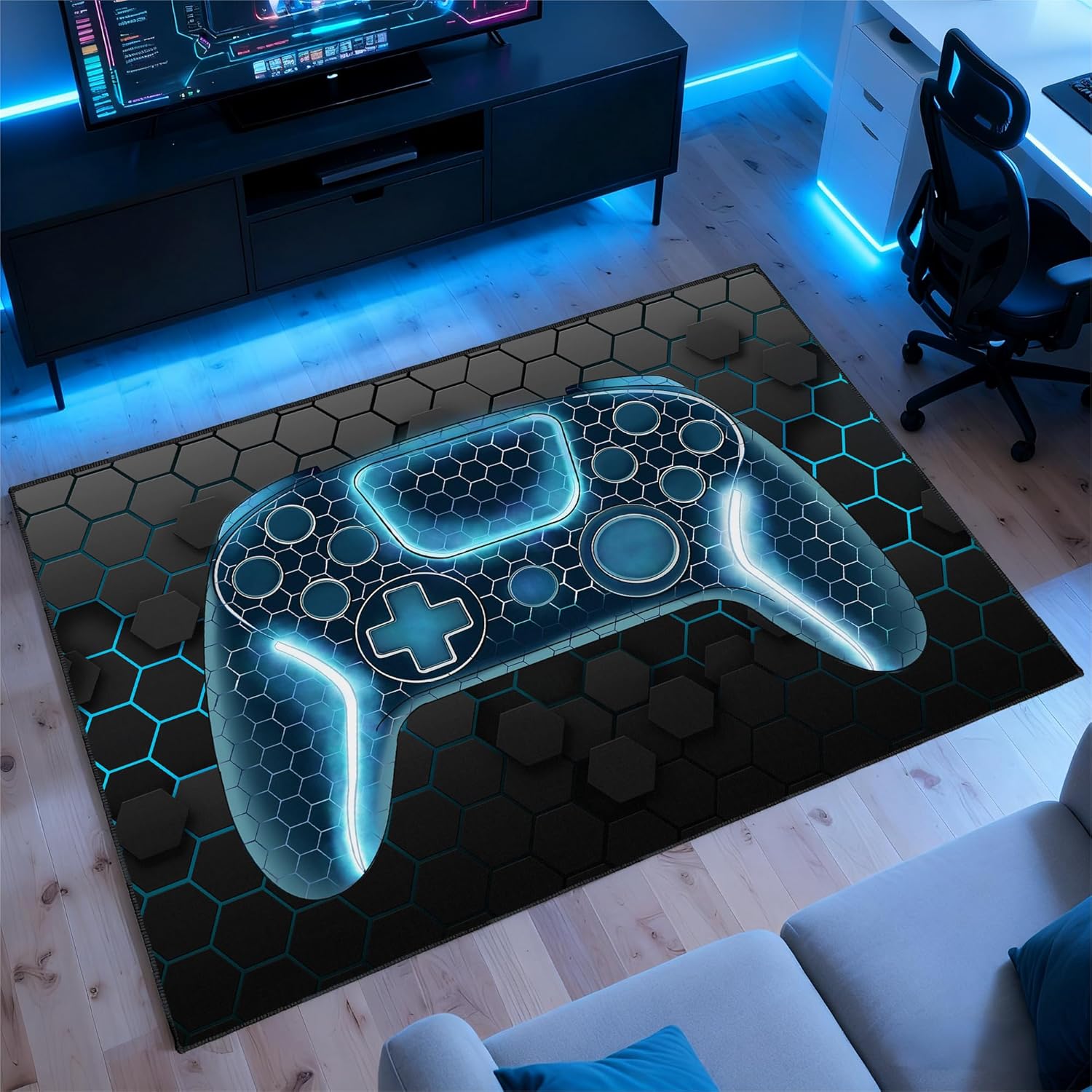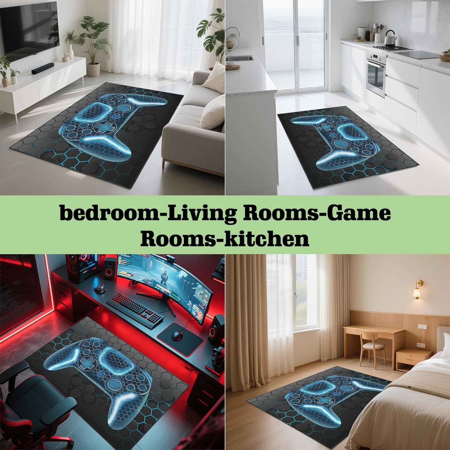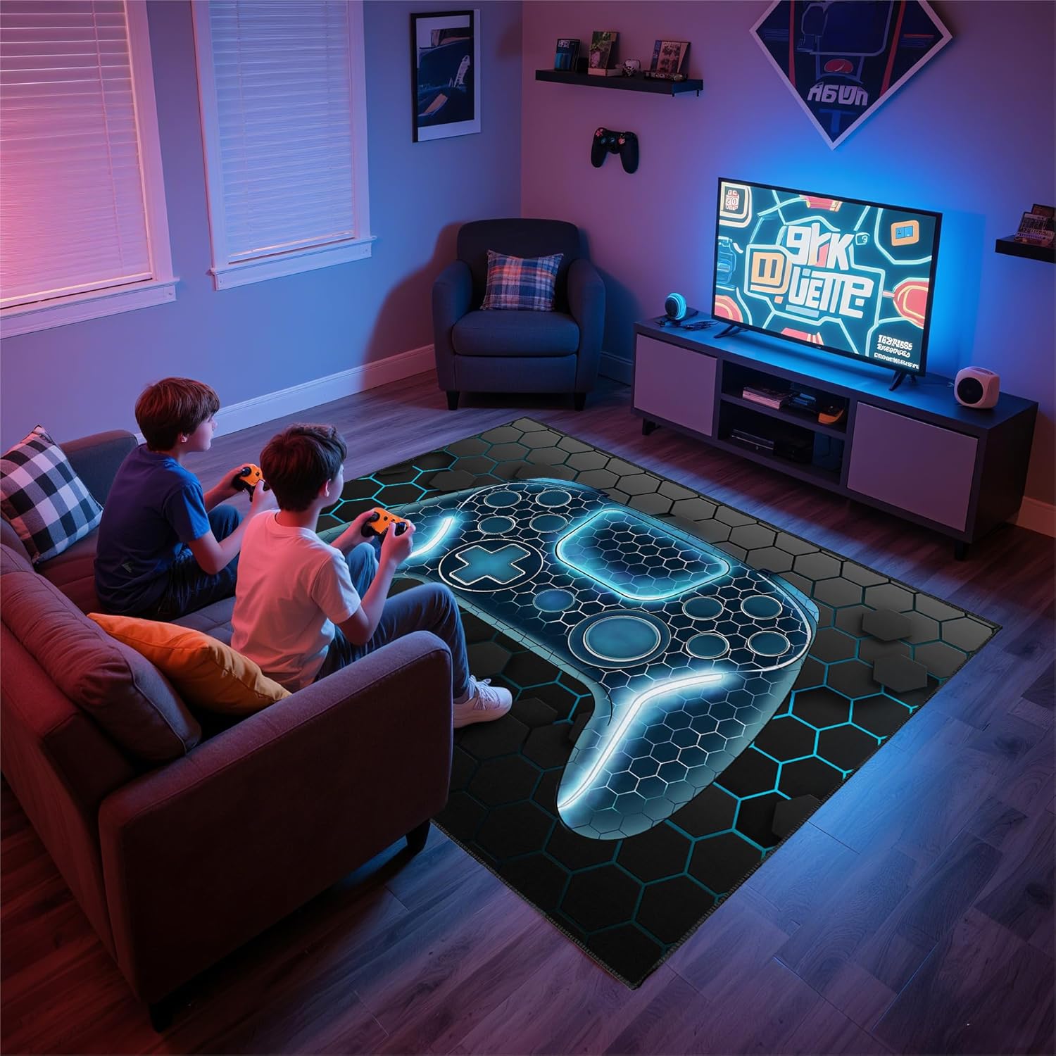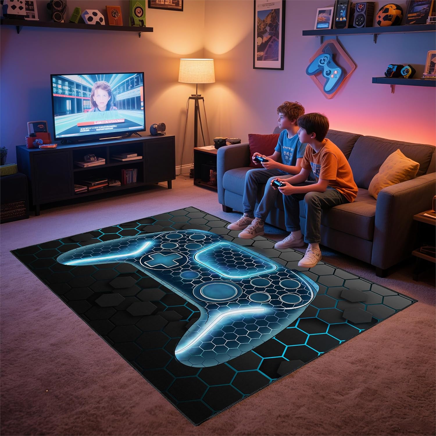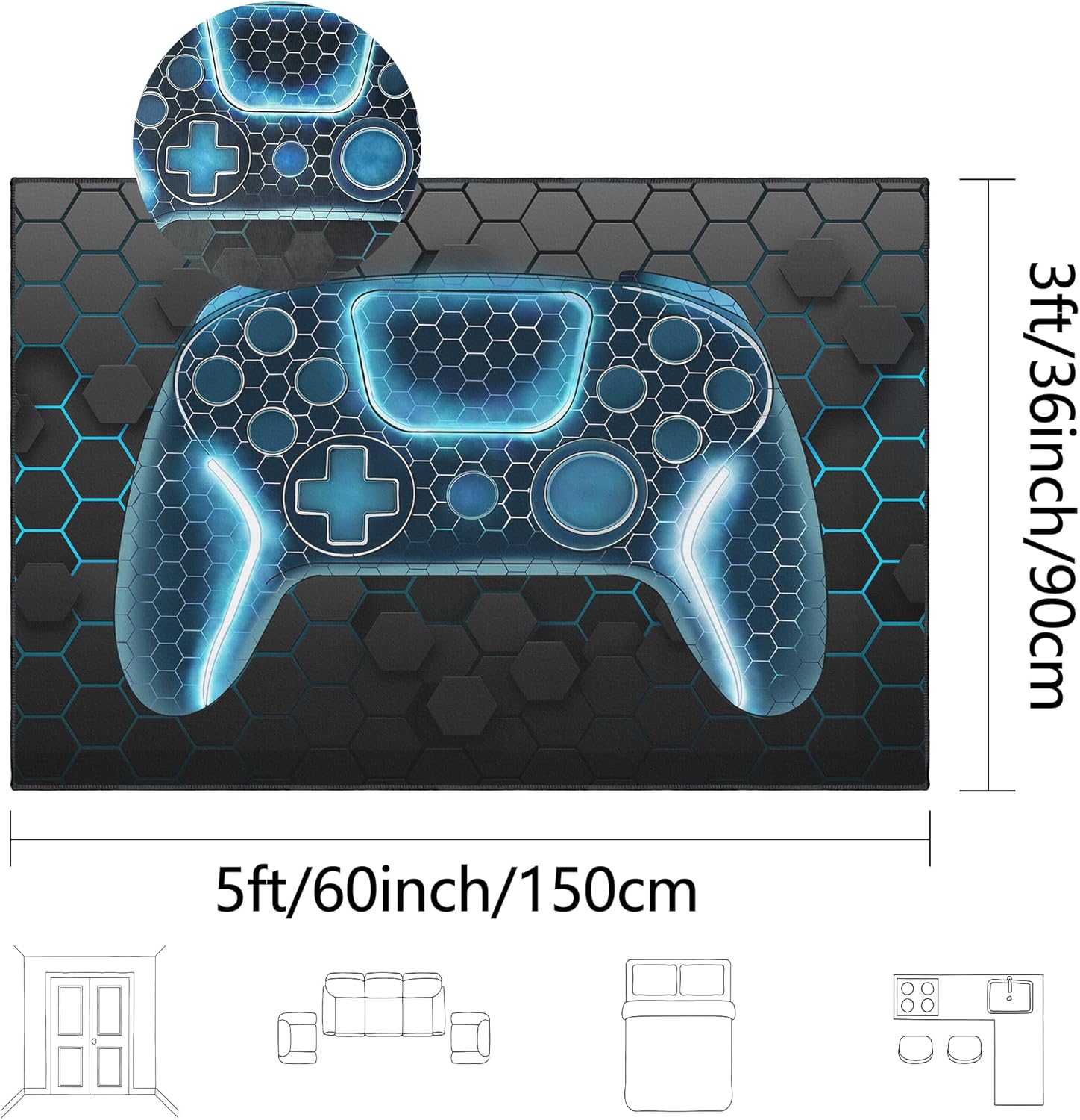Alfombra de videojuegos para habitación de niños, 3 x 5 pies, antideslizante, color azul, para dormitorio, sala de estar y decoración de espacio de juego