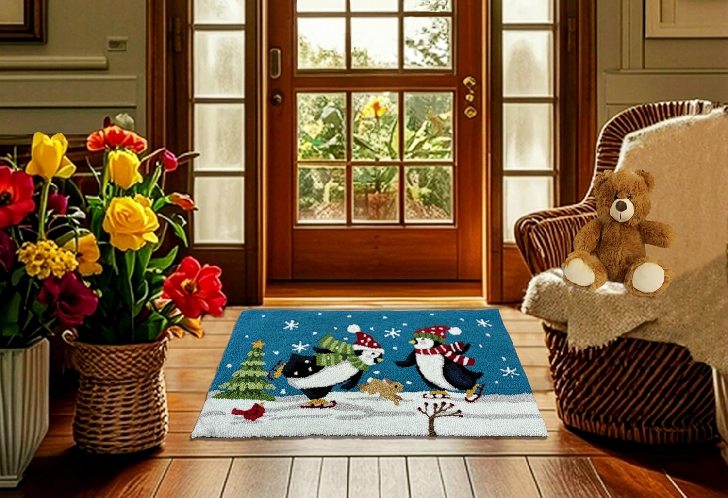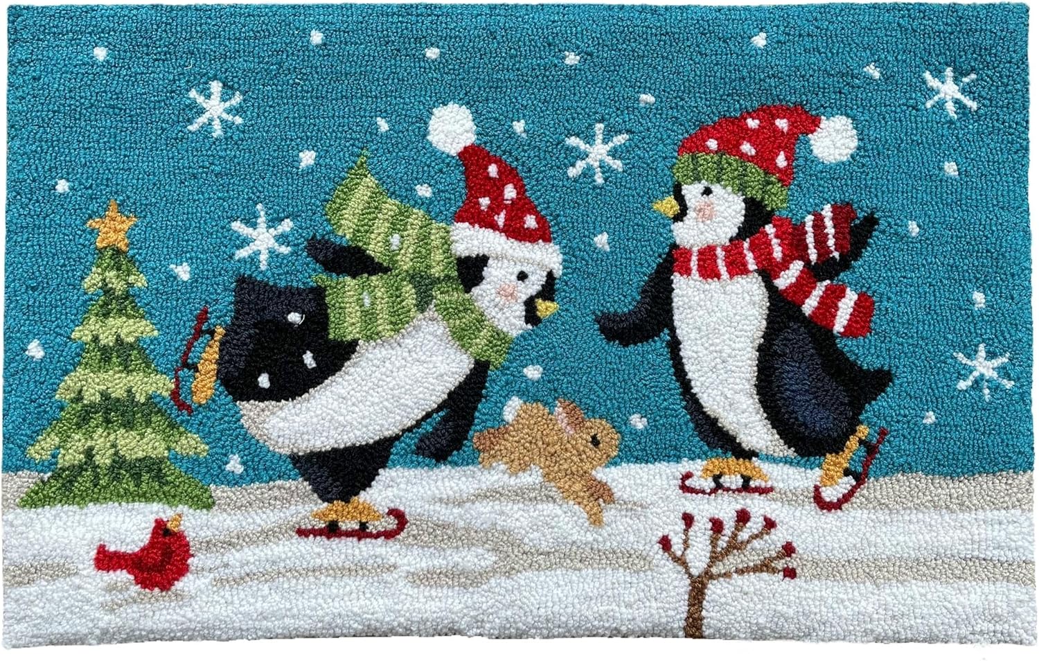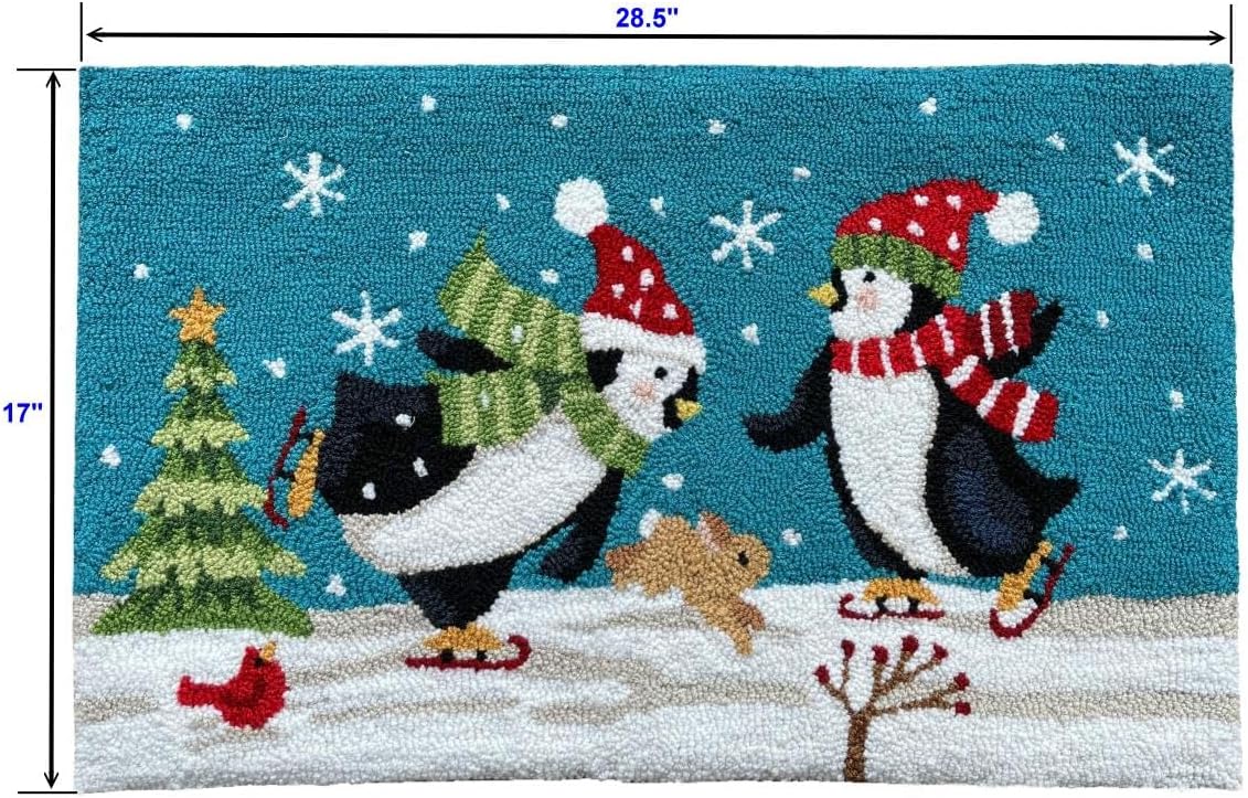 Característica: pingüinos lindos con sombrero y bufanda, conejo, cardenal, en el campo de nieve con diseño de cielo azul. Cuenta con colores vibrantes e imagen clara con un diseño impresionante y único para mejorar su hogar. El pelo hecho a mano mejora su comodidad y suavidad.