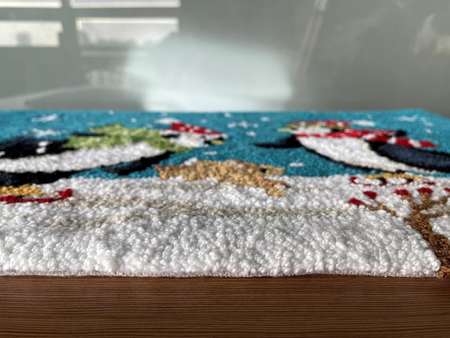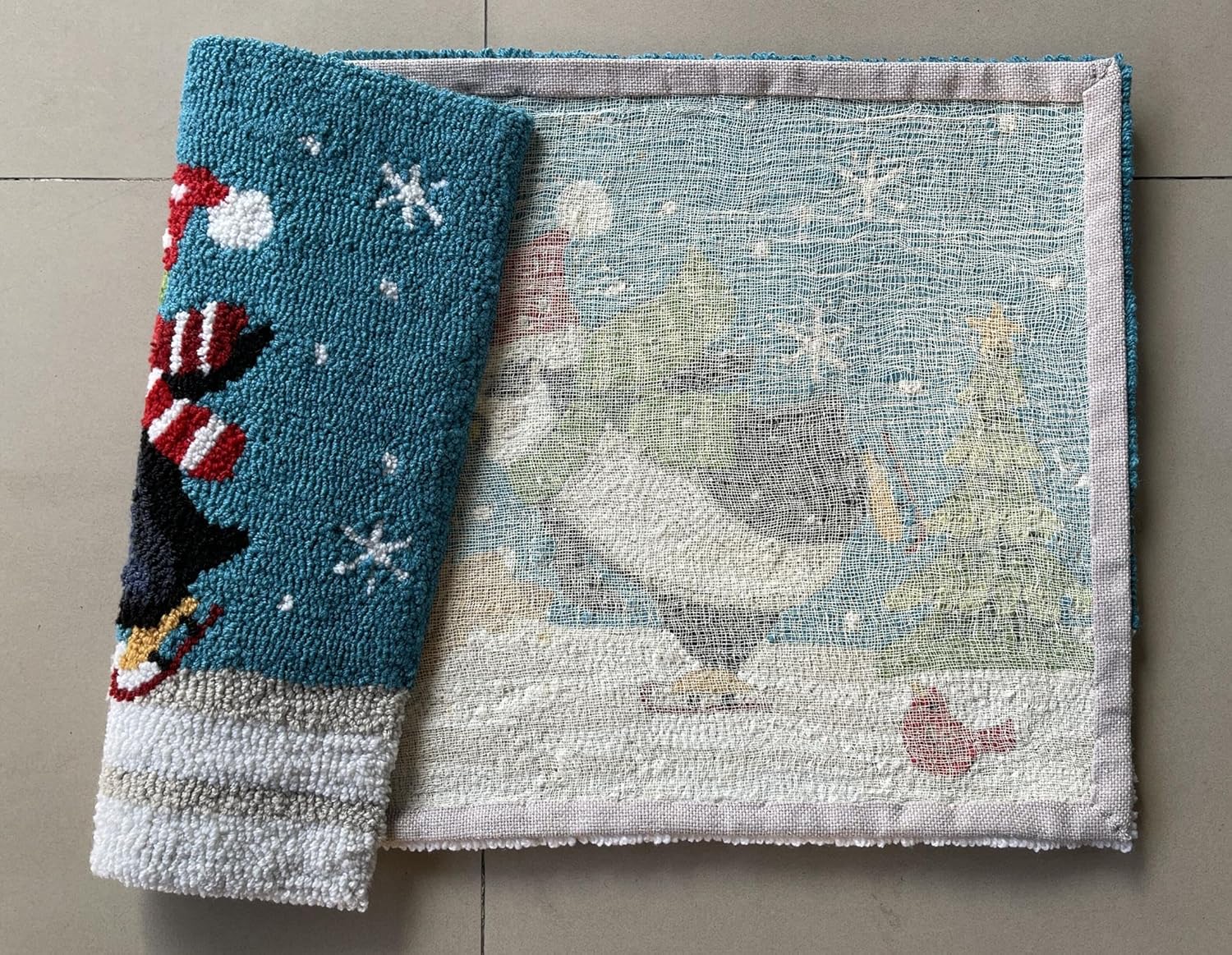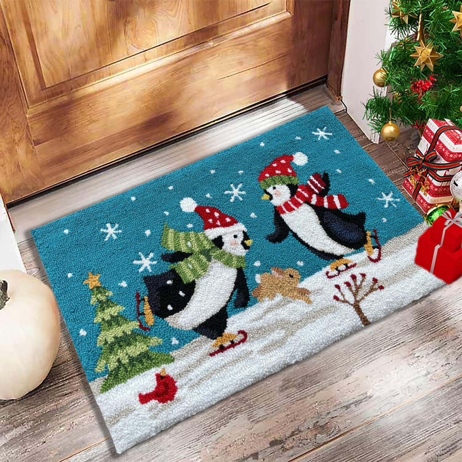 Característica: pingüinos lindos con sombrero y bufanda, conejo, cardenal, en el campo de nieve con diseño de cielo azul. Cuenta con colores vibrantes e imagen clara con un diseño impresionante y único para mejorar su hogar. El pelo hecho a mano mejora su comodidad y suavidad.