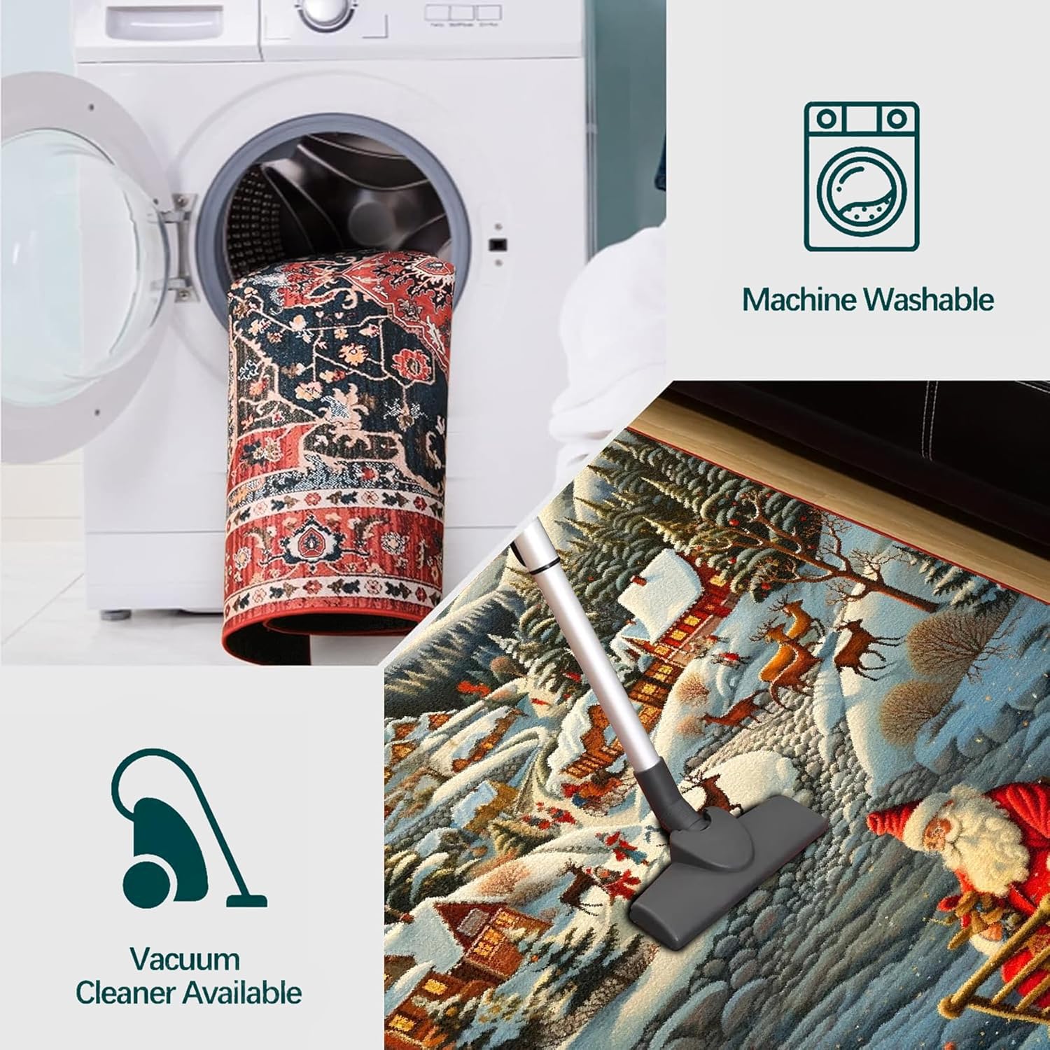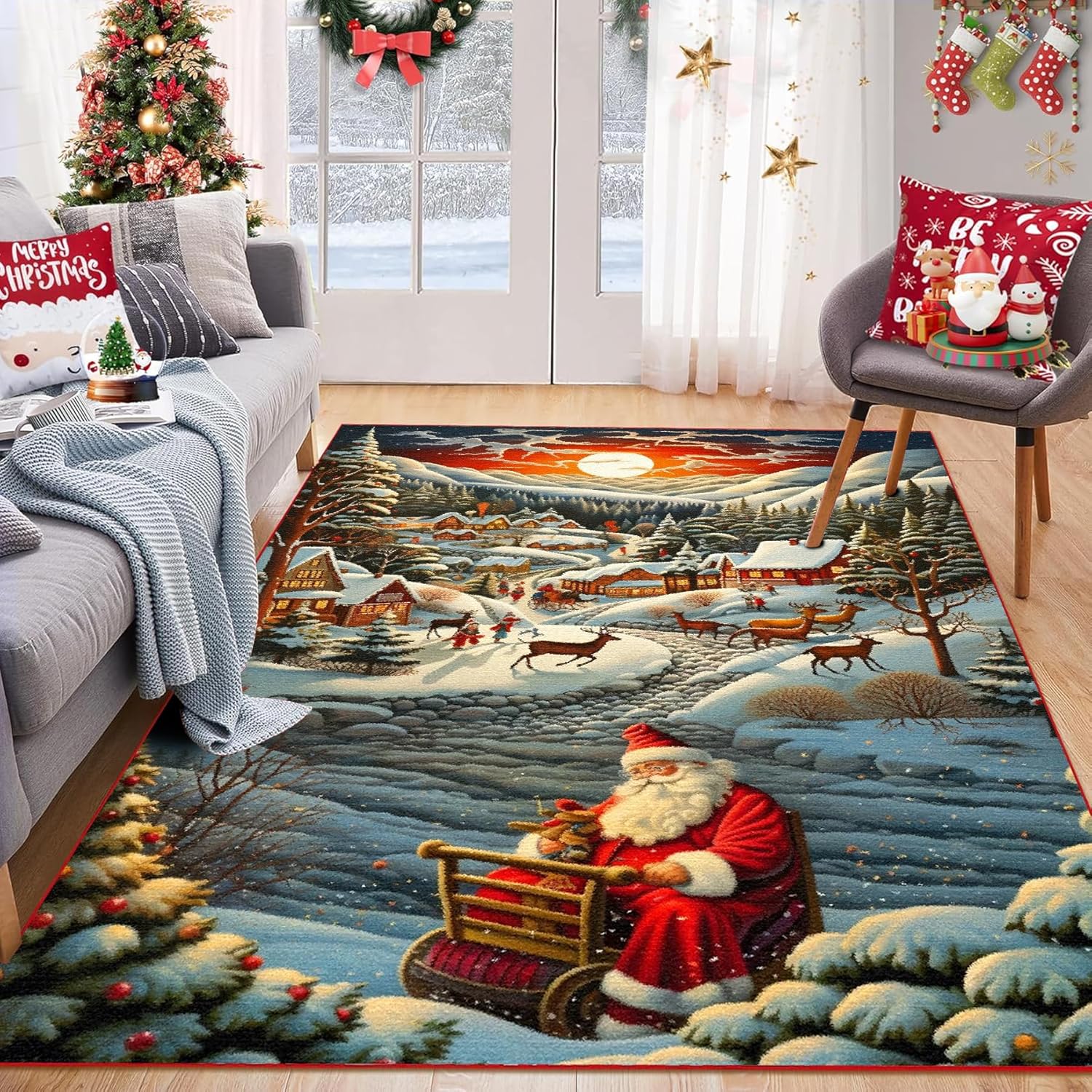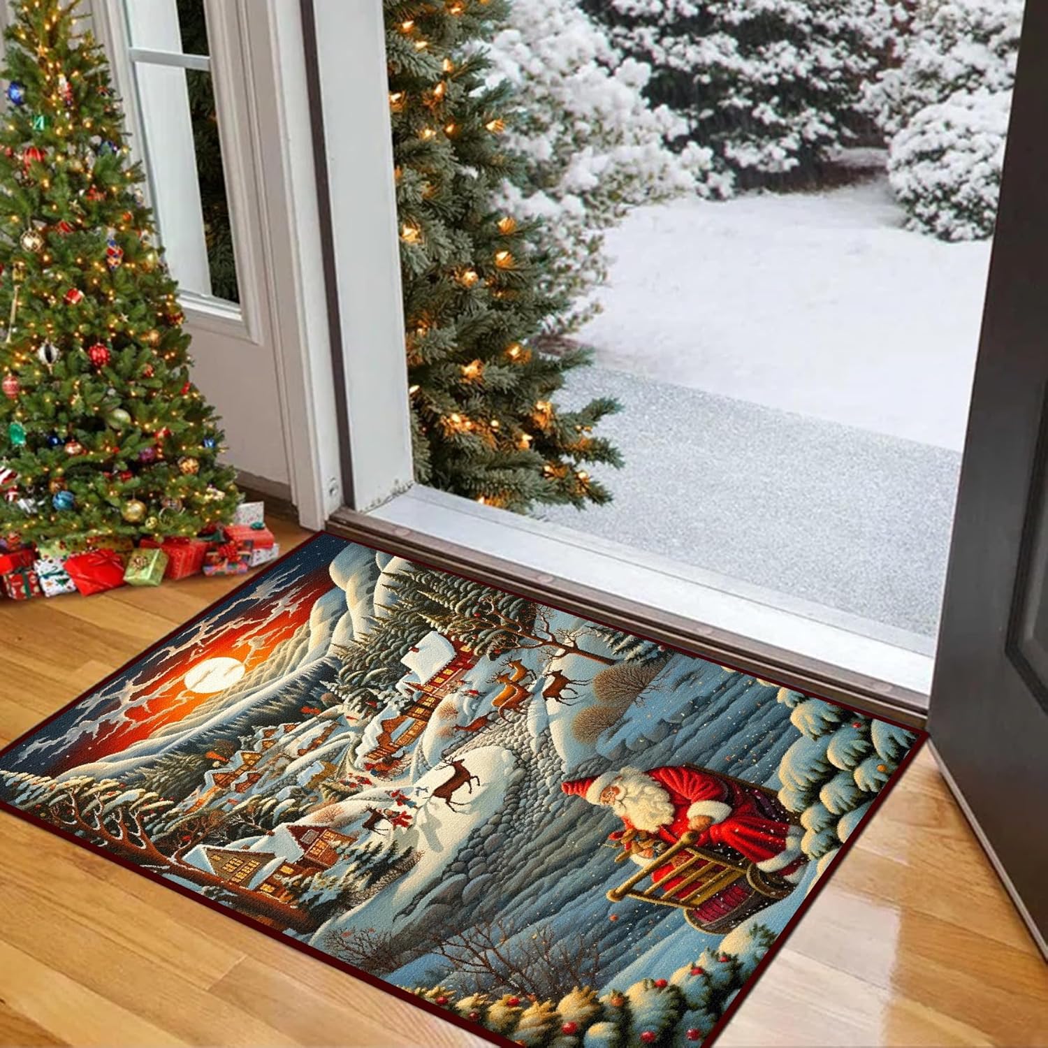 Alfombra decorativa de 2 x 3 pies, 24 x 36 pulgadas, Papá Noel, invierno de cuernos de Navidad, lana novedosa, ideal para zonas de alto tráfico en entrada, sala de estar, dormitorio