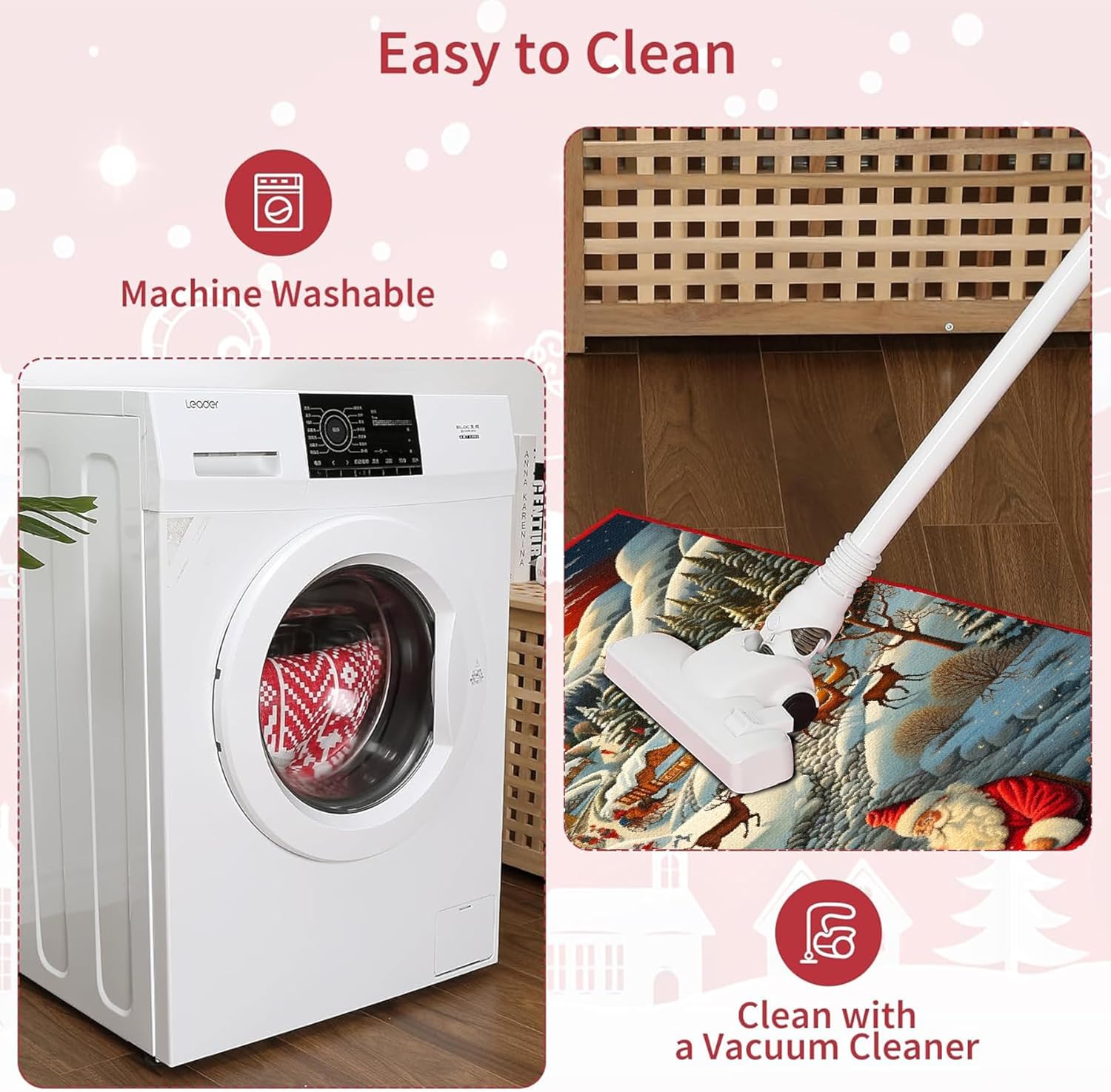 【Fácil de limpiar】: la vida ya no es desordenada con este felpudo de Navidad. Este tapete para puerta es fácil de cuidar y se puede lavar a mano o a máquina. O utiliza una simple aspiradora para eliminar la suciedad rápidamente.
