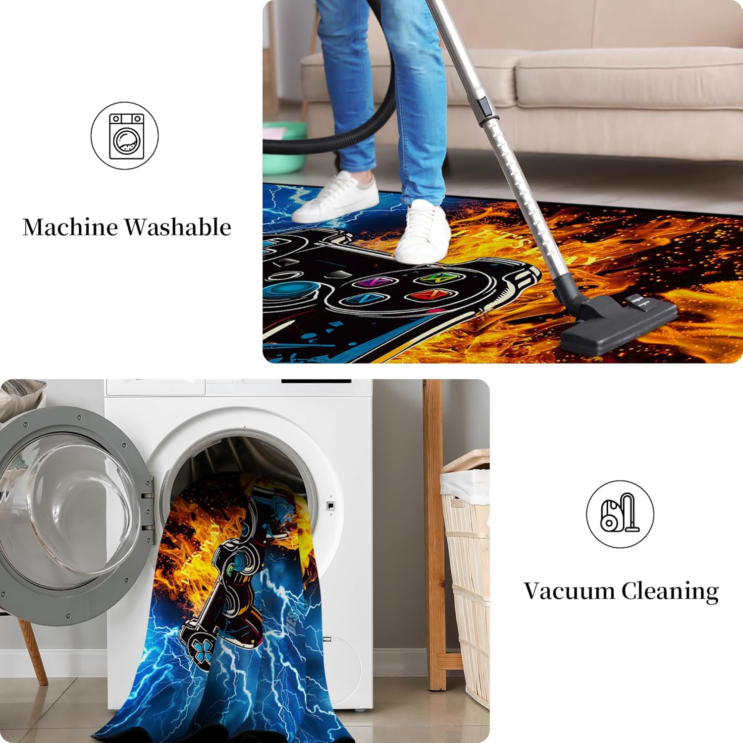 Alfombra lavable: la alfombra Gammer Room es fácil de limpiar, se puede lavar a máquina, aspirar, limpiar escoba o trapo, hace que su vida en casa sea más fácil y más cómoda.