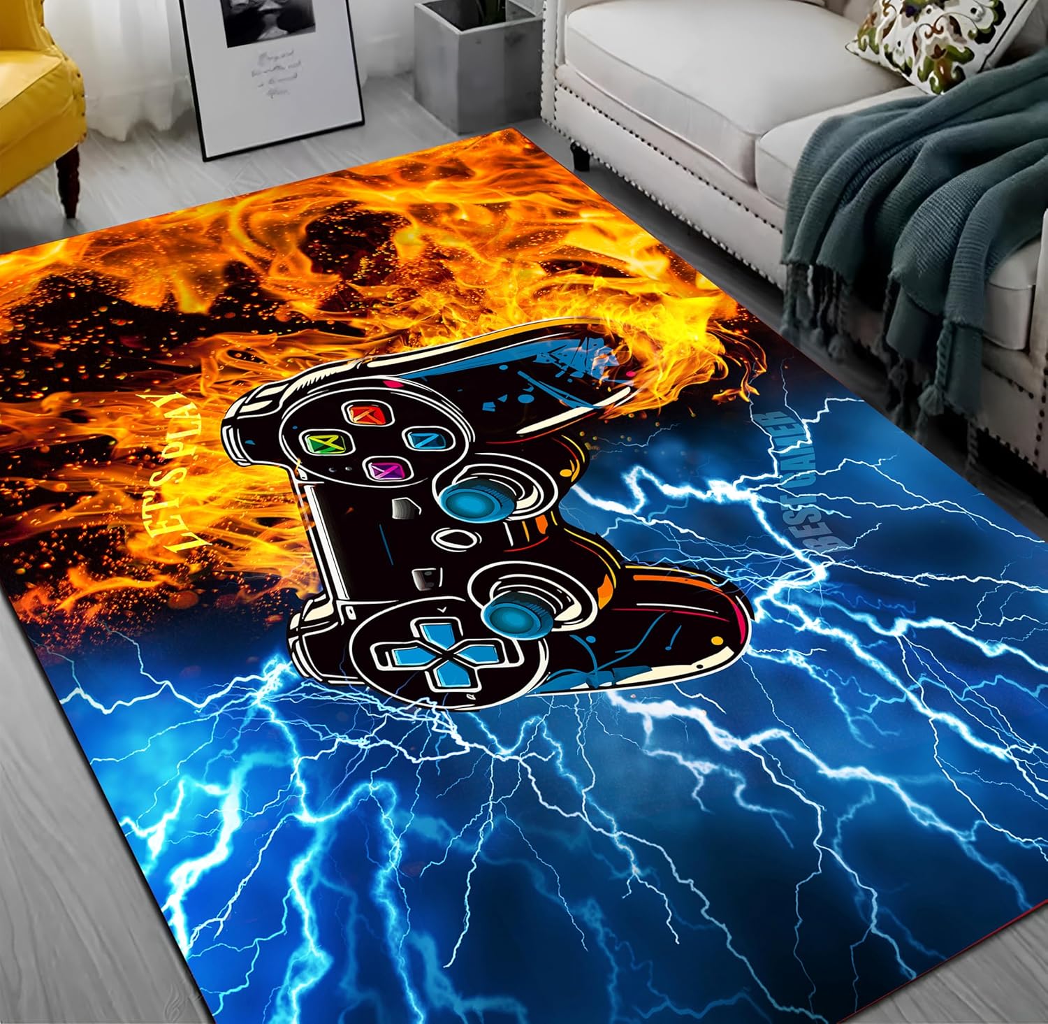 Alfombra grande de videojuegos para habitación de niños, de 5 x 7 pies, antideslizante, lavable, alfombra de juegos para dormitorio, sala de estar, decoración de sala de juegos o accesorios para