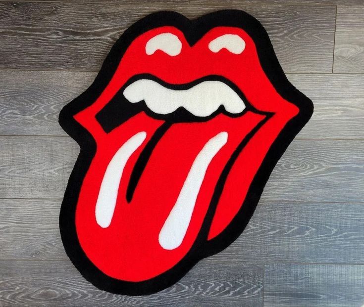 Alfombra de forma libre que reproduce el mundialmente famoso logo “Hot Lips” (Labios Calientes), diseñado originalmente por John Pasche. La alfombra es de color rojo intenso para los labios y la lengua, con el contorno de color negro profundo. Los dientes blancos son peludos y definidos. Es una pieza de decoración esencial de la cultura pop y la música rock, ideal para estudios o salas de estar con estética musical