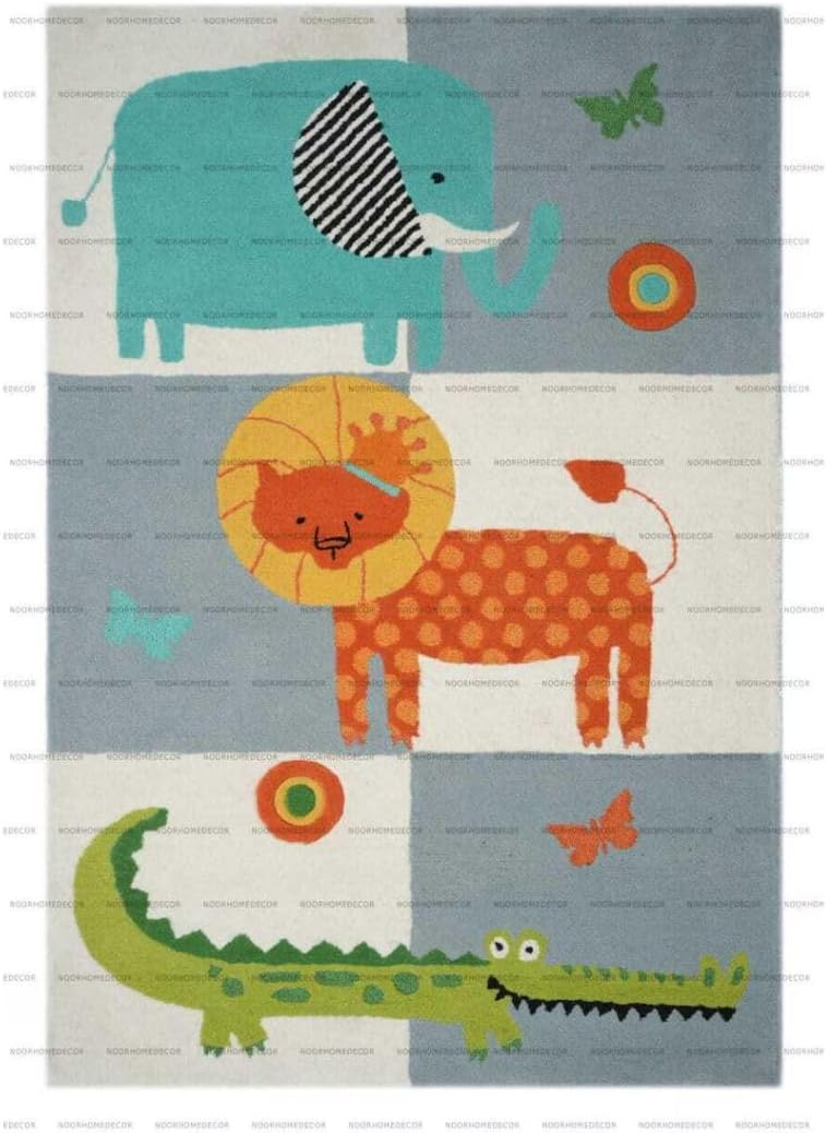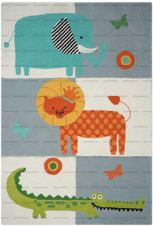 Alfombra moderna de lana con estampado de animales de dibujos animados a mano, alfombra de área para habitación, pasillo, cocina, sala de juegos, alfombra de animales (7 x 10 pies)