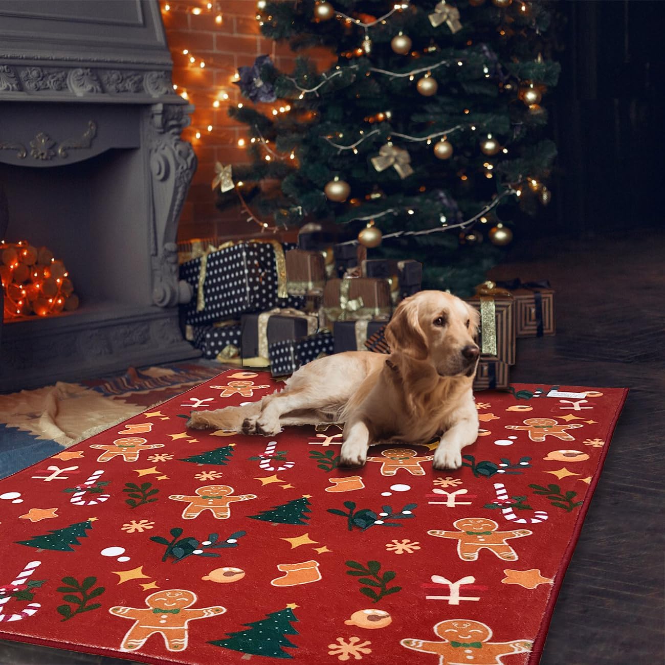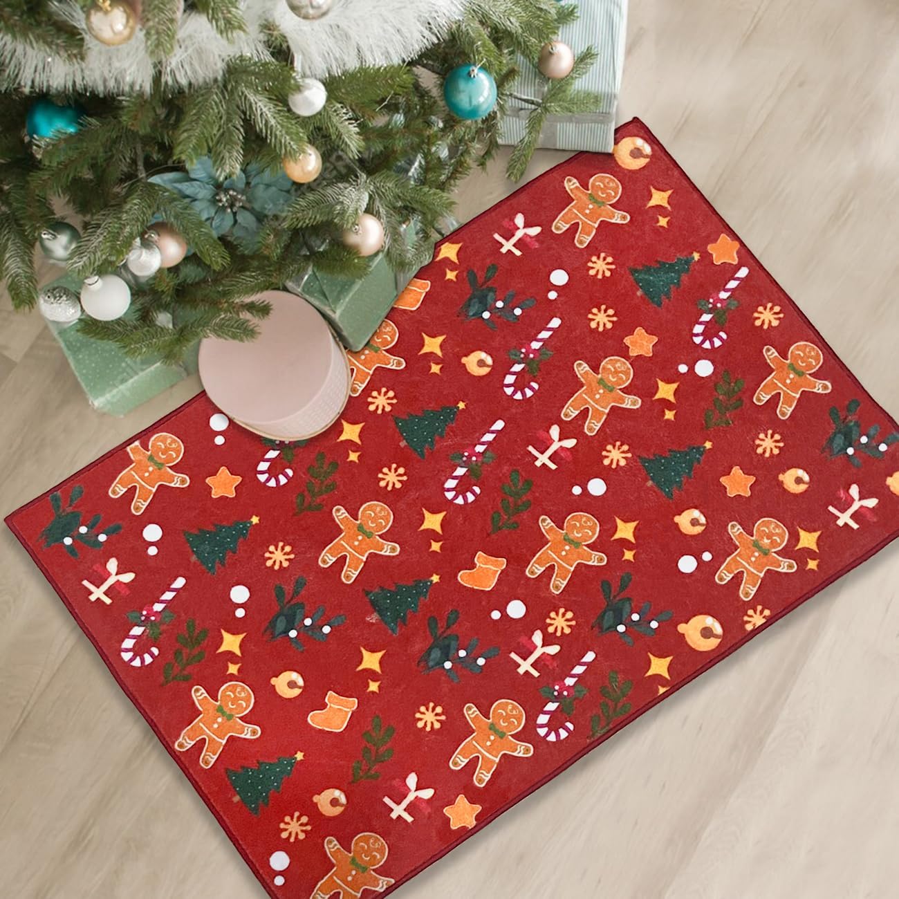Alfombra navideña de jengibre de 4 x 6 pies, lavable a máquina, de alto tráfico, tapete antideslizante para sala de estar, comedor, dormitorio, entrada y pasillo, color rojo jengibre