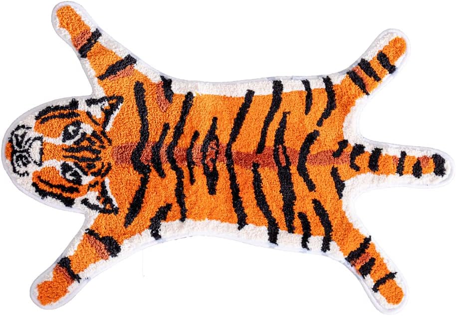 La alfombra de animal tigre puede mostrar tu carácter único: esta suave alfombra de dibujos animados es la herramienta llamativa para la decoración del hogar, protección del medio ambiente, suave, resistente al deslizamiento, absorción de agua, no solo es perfecta para decorar tu hogar cuando estás de vacaciones o fiestas temáticas, sino también ideal para jugar.