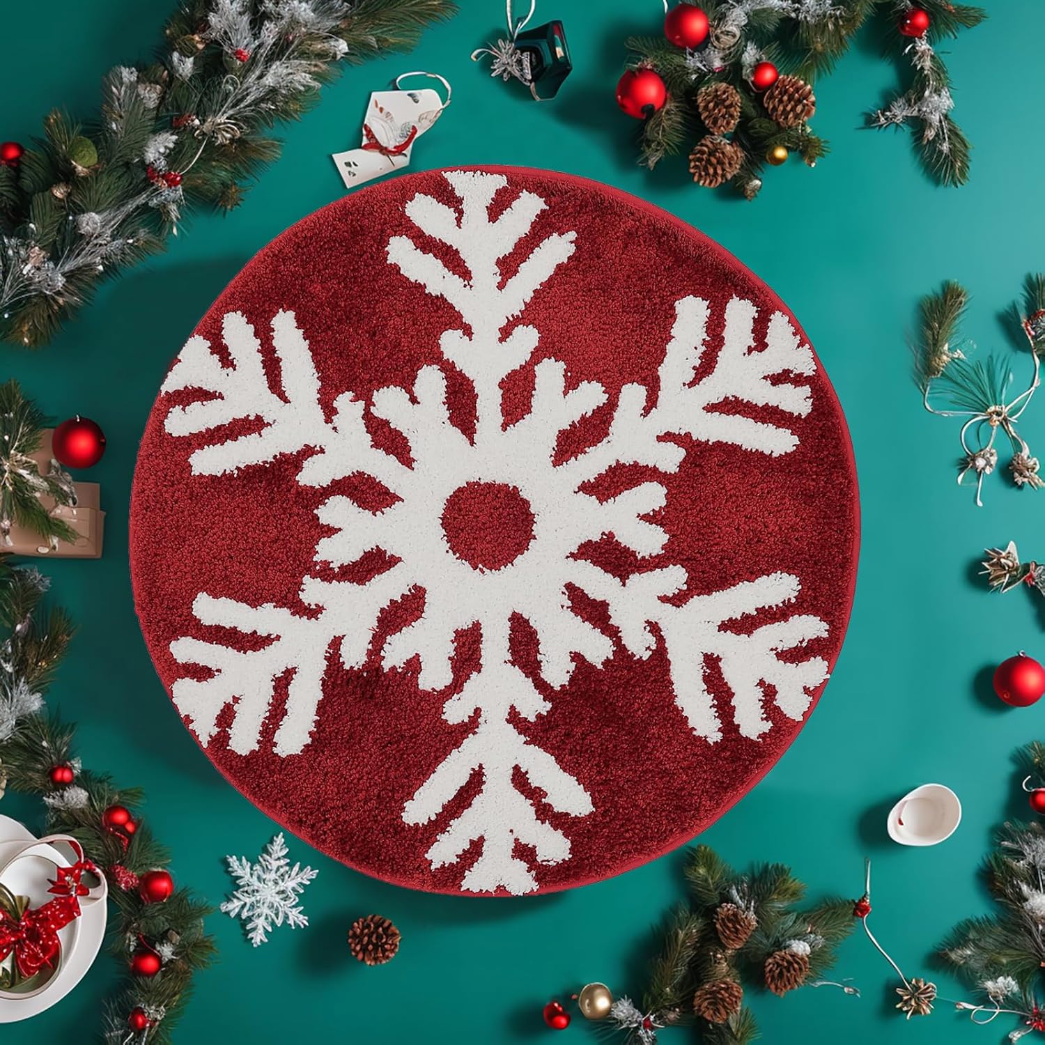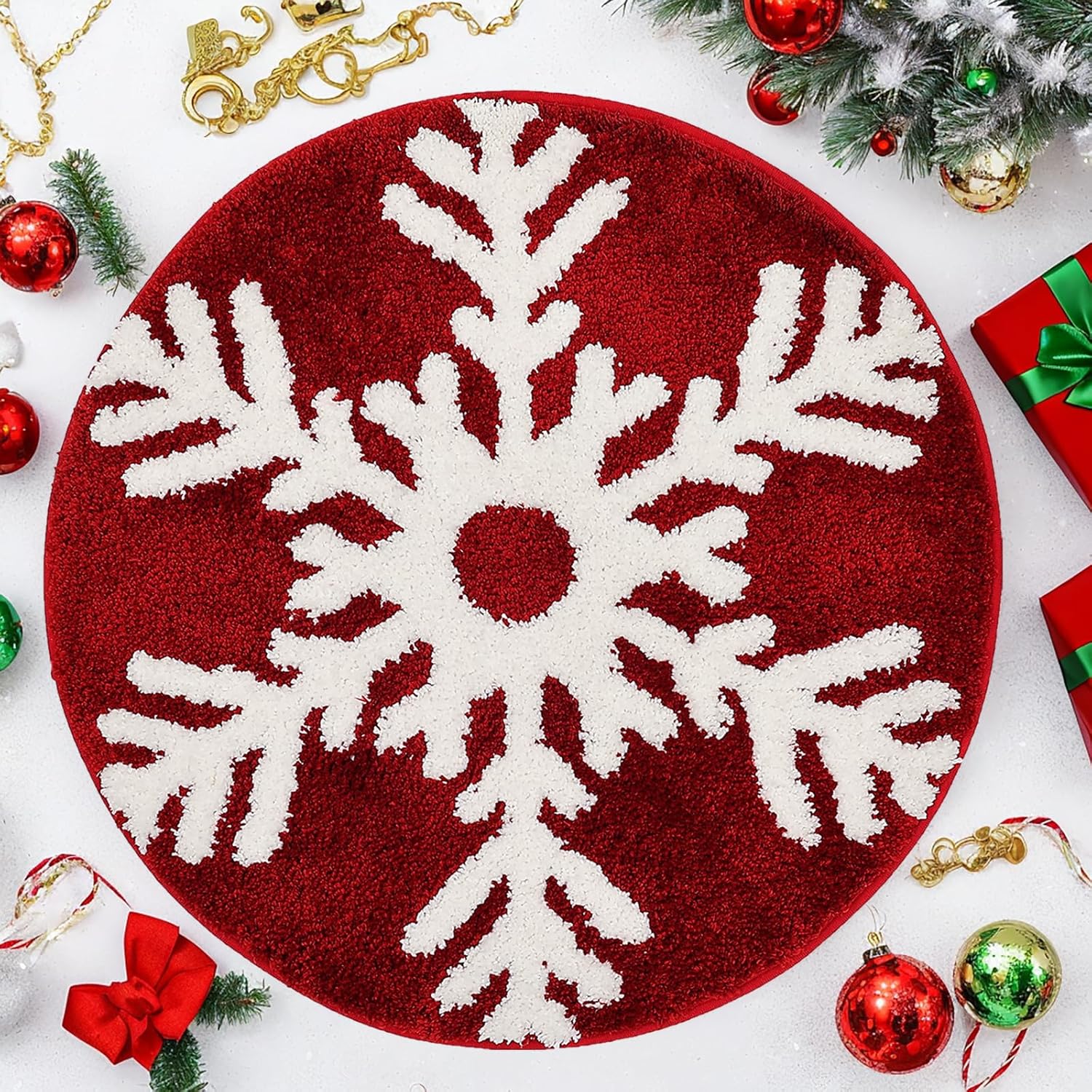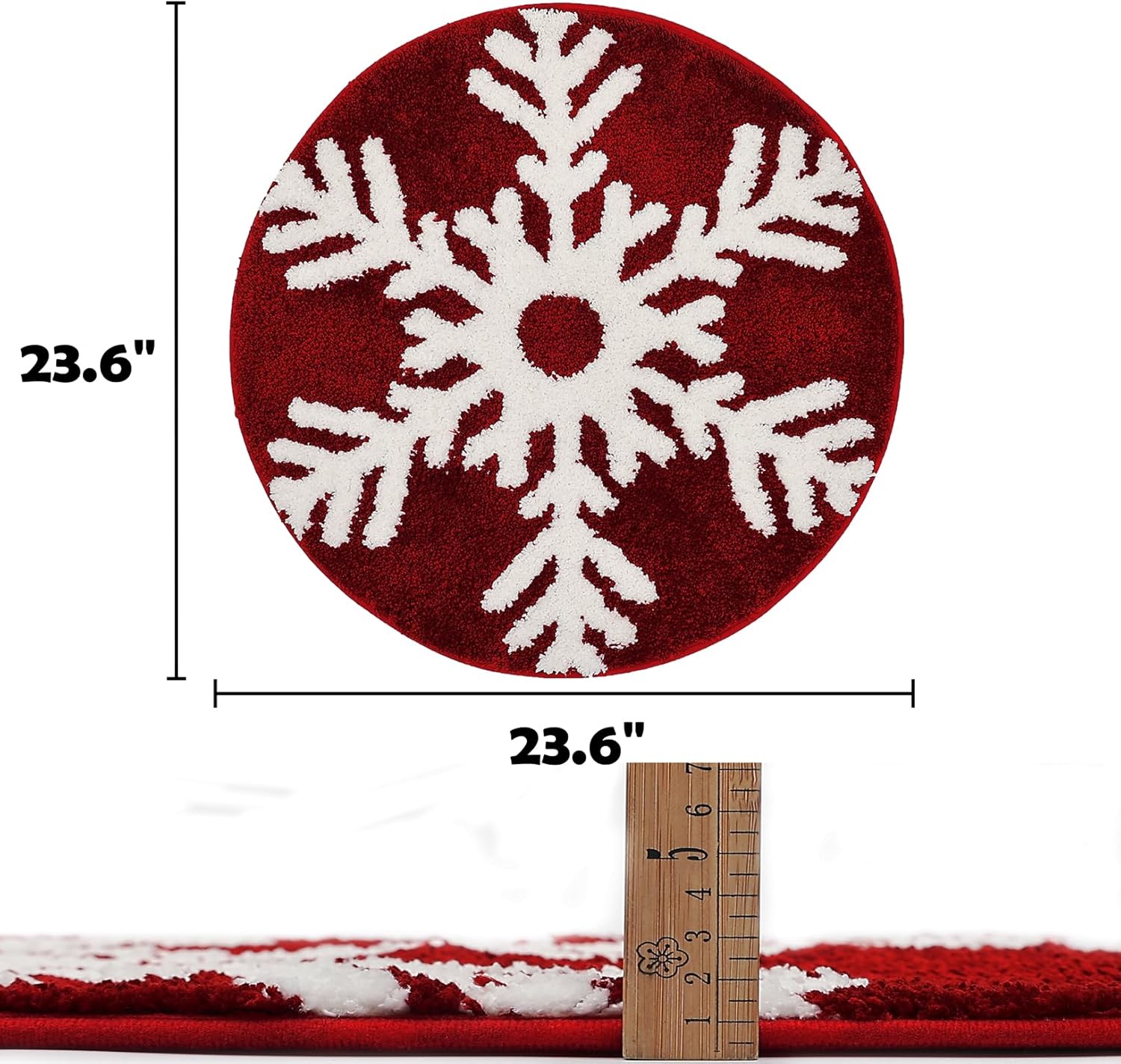 Alfombra con diseño de copos de nieve: la alfombra de baño está hecha con microfibra de felpa de alta calidad. El felpudo mide aproximadamente 24 x 24 (aprox. 61.0 cm), tamaño adecuado tanto para interiores como para exteriores. El pelo mide 0.4 (aprox. 1.0 cm) de altura, muy suave y acogedor al tacto. Es ideal para mantener tus pies calientes de suelos de madera fría