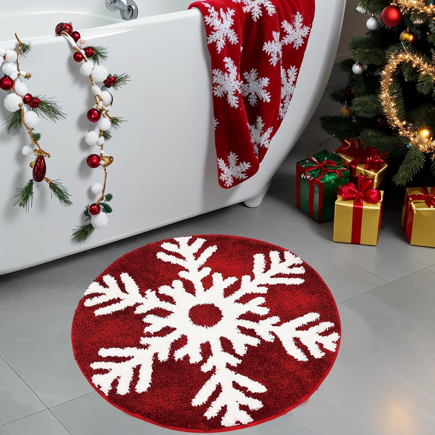 Alfombras de baño antideslizantes: nuestra moderna alfombra de baño de Navidad cuenta con respaldo de goma antideslizante, añadiendo miles de puntos antideslizantes en la parte posterior de la alfombra de baño temática de invierno para evitar que se resbale