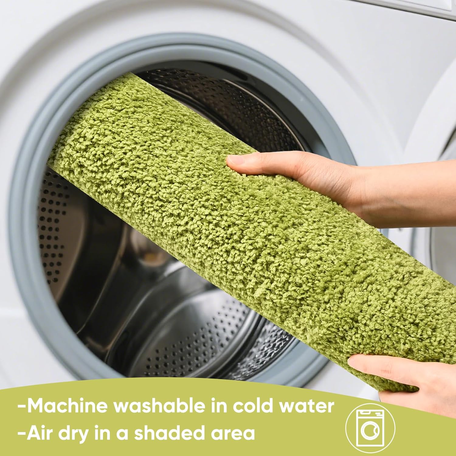 Diseño lavable a máquina: la limpieza es sin esfuerzo. Simplemente mételo en tu lavadora para una limpieza profunda o límpialo con un paño húmedo para un mantenimiento rápido. Esta alfombra de baño verde mantiene la forma y la suavidad incluso después de repetidos lavados.