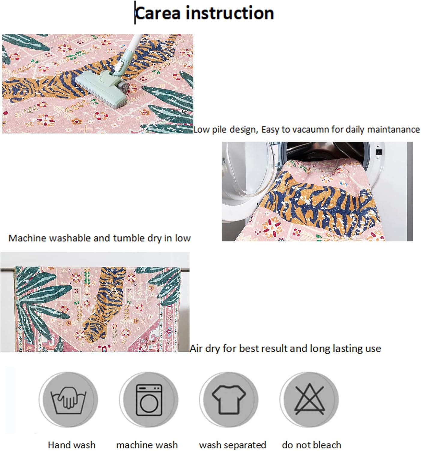 Alfombras para baño lavables: esta alfombra vintage suave y moderna se puede lavar a máquina en agua fría. Usar detergente suave. No usar blanqueador, ni lavar en seco. No utilizar suavizantes de tela ni hojas para secadoras. No estrujar.