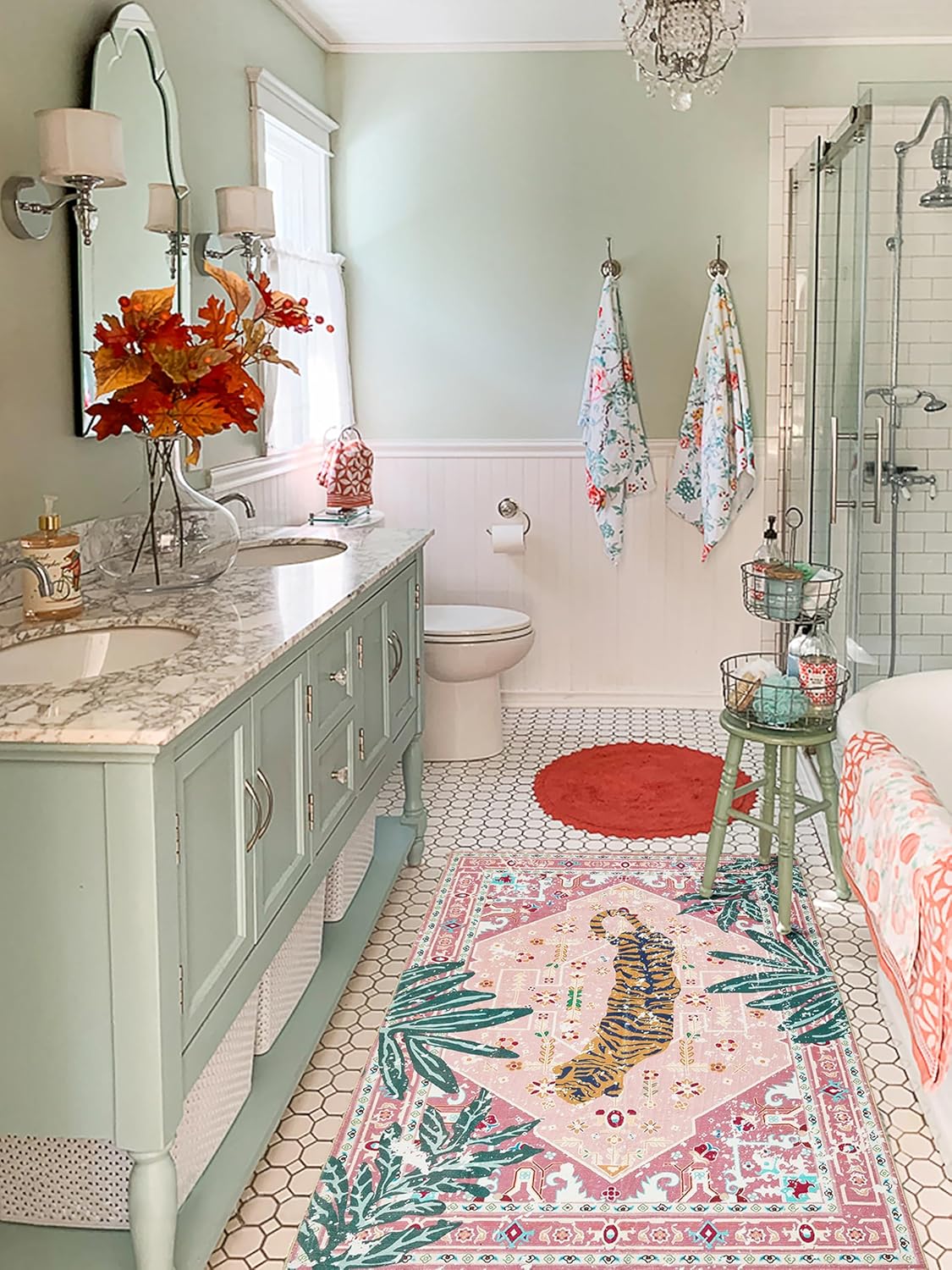 Alfombra funcional de 2 x 3: alfombra tropical perfecta antideslizante para sala de estar, alfombra grande tropical para baño, alfombra estética de dormitorio, alfombra de entrada interior lavable, alfombra de decoración hippie para dormitorio, alfombra vintage de guardería, etc. Ideal para cualquier zona de alto tráfico de la casa.