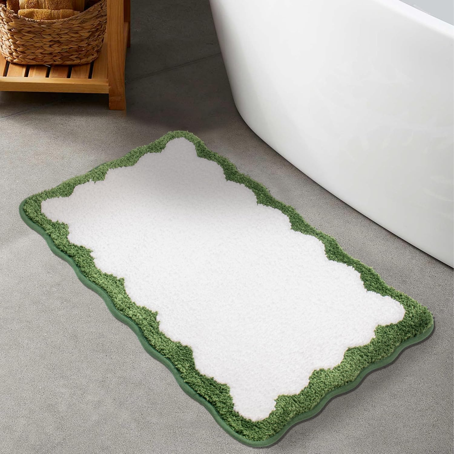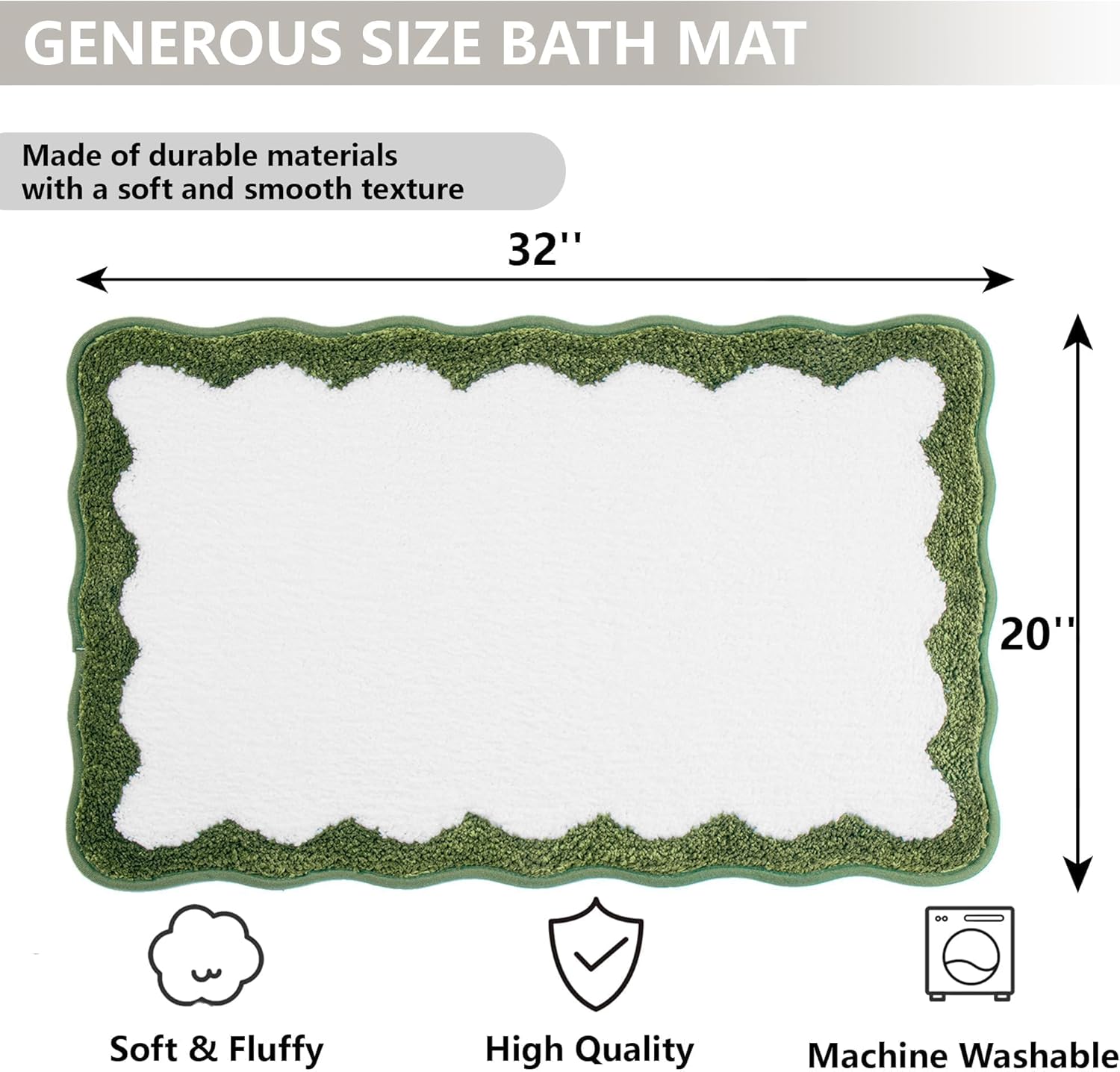 Divertido diseño de alfombra: nuestros tapetes de baño están disponibles en 3 tamaños: 16 x 24 (aprox. 61.0 cm). 20 x 32 (aprox. 81.3 cm). 18 x 47 (aprox. 119.4 cm). Con un diseño ondulado irregular y un proceso de flocado único, la alfombra de baño festoneada mejora el diseño estético de la decoración de tu baño. Ya sea que tu estilo de baño sea moderno, tradicional o ecléctico, el atractivo atemporal y la estética versátil de esta alfombrilla de baño lo convierten en el complemento perfecto para crear un ambiente sereno y elegante en tu espacio.