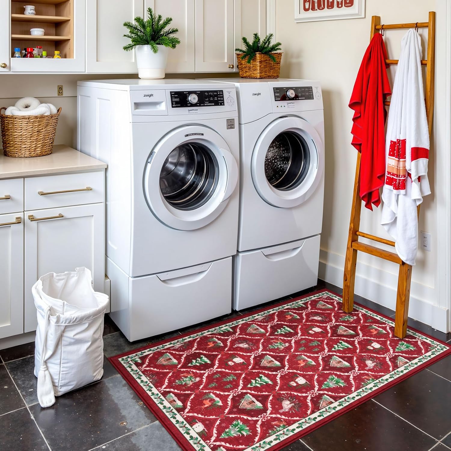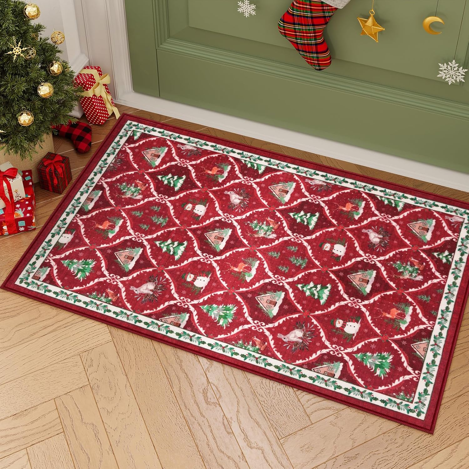 Alfombras de Navidad para entrada, alfombra de baño roja de 2 x 3, antideslizante, lavable, decoración de vacaciones, tapete de invierno para puerta delantera, alfombras de área pequeña para