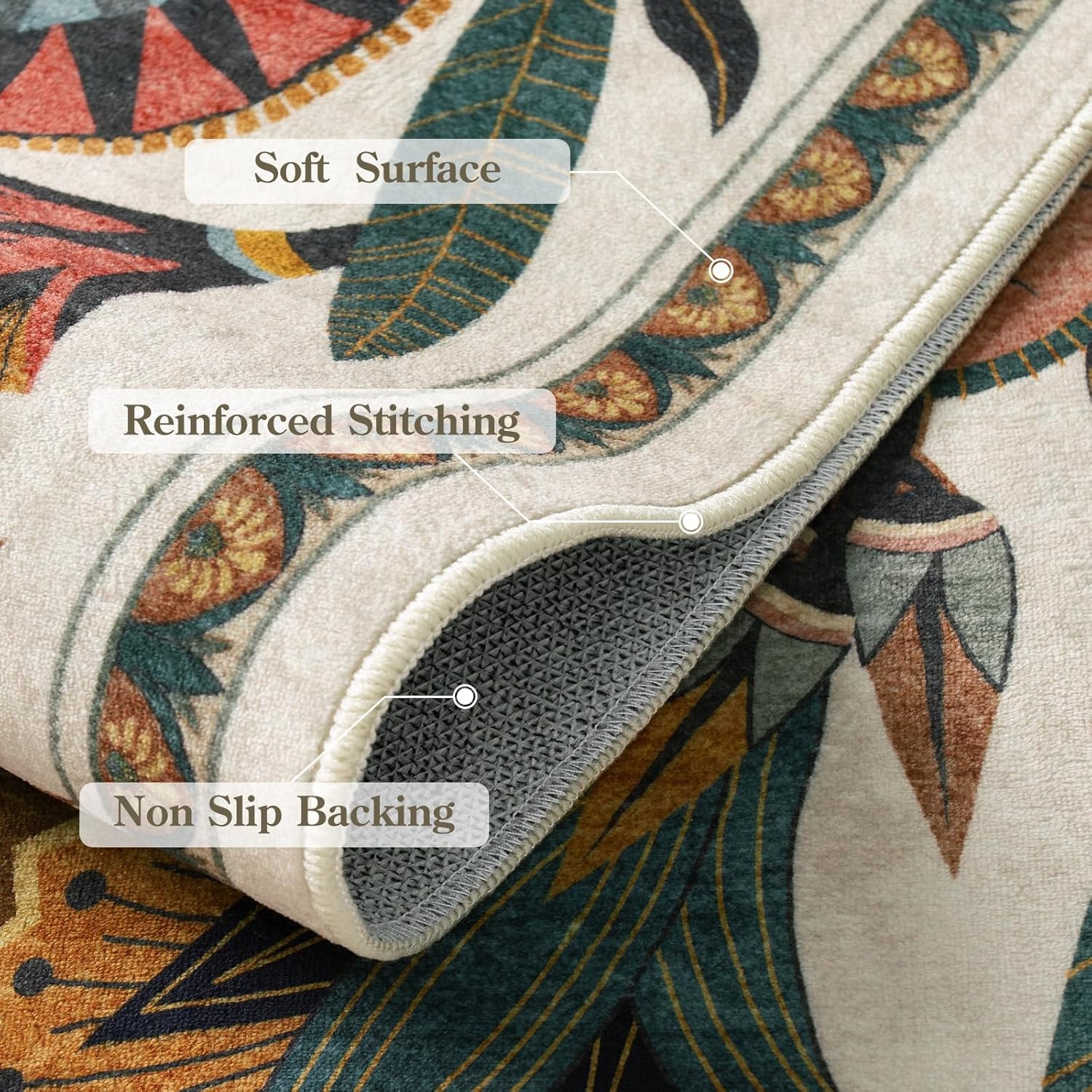 Alfombra beige fácil de limpiar: nuestras alfombras bohemias para dormitorio son lavables a máquina y fáciles de mantener. Simplemente métela en la lavadora para un lavado rápido, luego sécala con aire solo ajuste sin calor. Utiliza una escoba o aspiradora para eliminar el polvo o el cabello para el cuidado diario