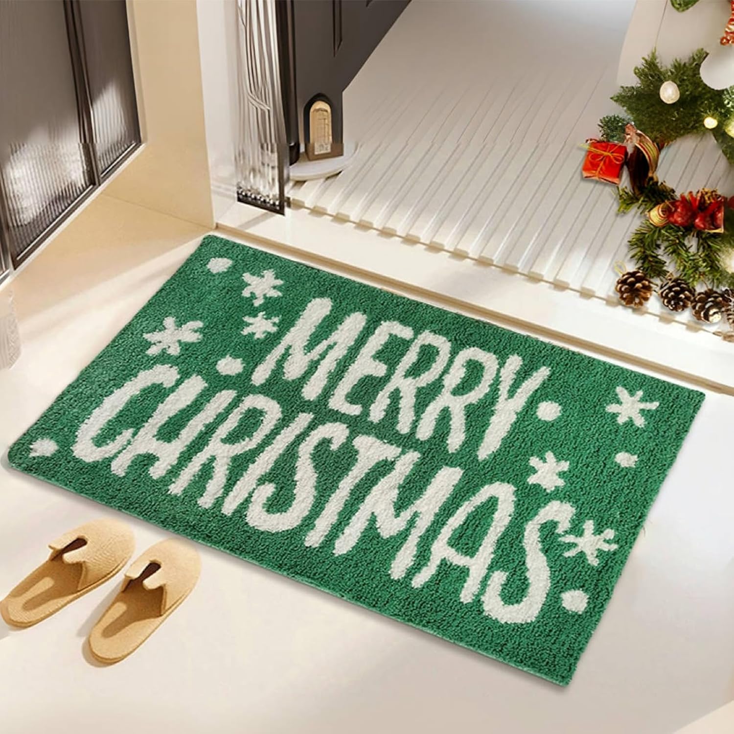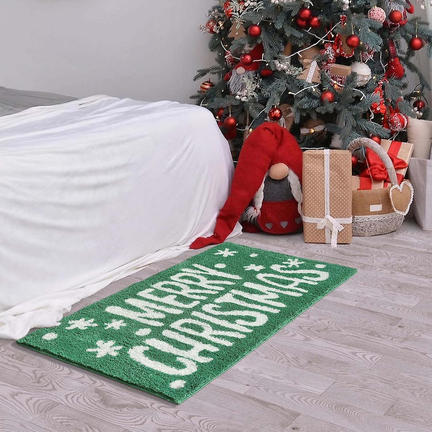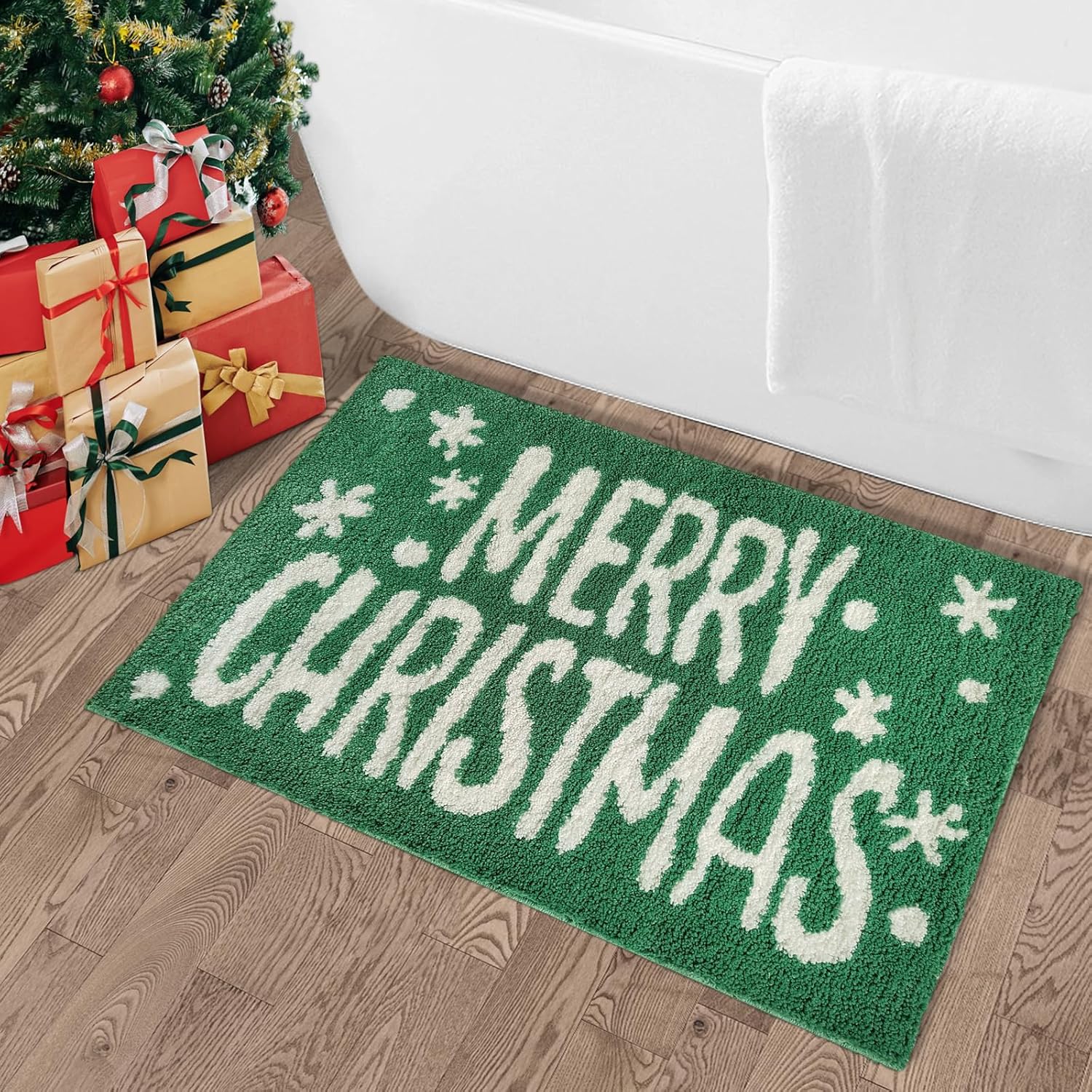Diseño festivo: esta alfombra de baño de Navidad con un fondo verde añade un toque divertido y festivo a cualquier habitación, el diseño único hace que esta alfombra de baño sea moderna y linda