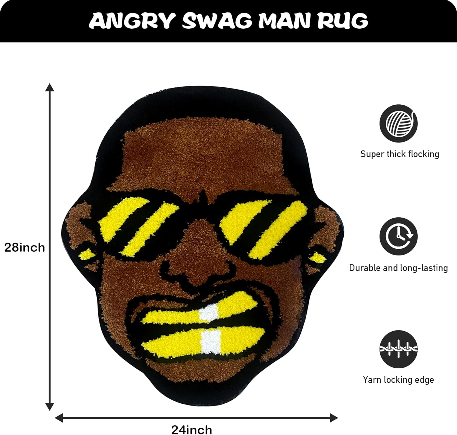 Angry Swag Man – Alfombra estética para dormitorio, suave de pelo alto, decoración de habitación fresca para chicos, tapete de baño funky Hypebeast Decor 24 x 28 pulgadas (Swag Man)