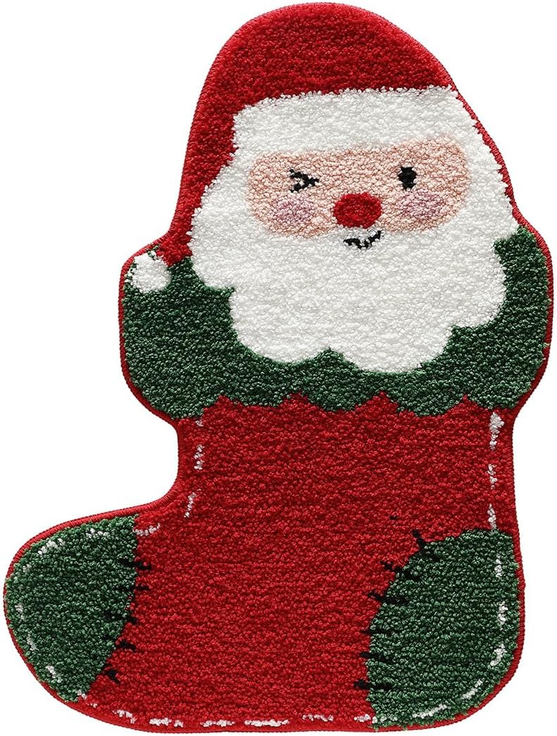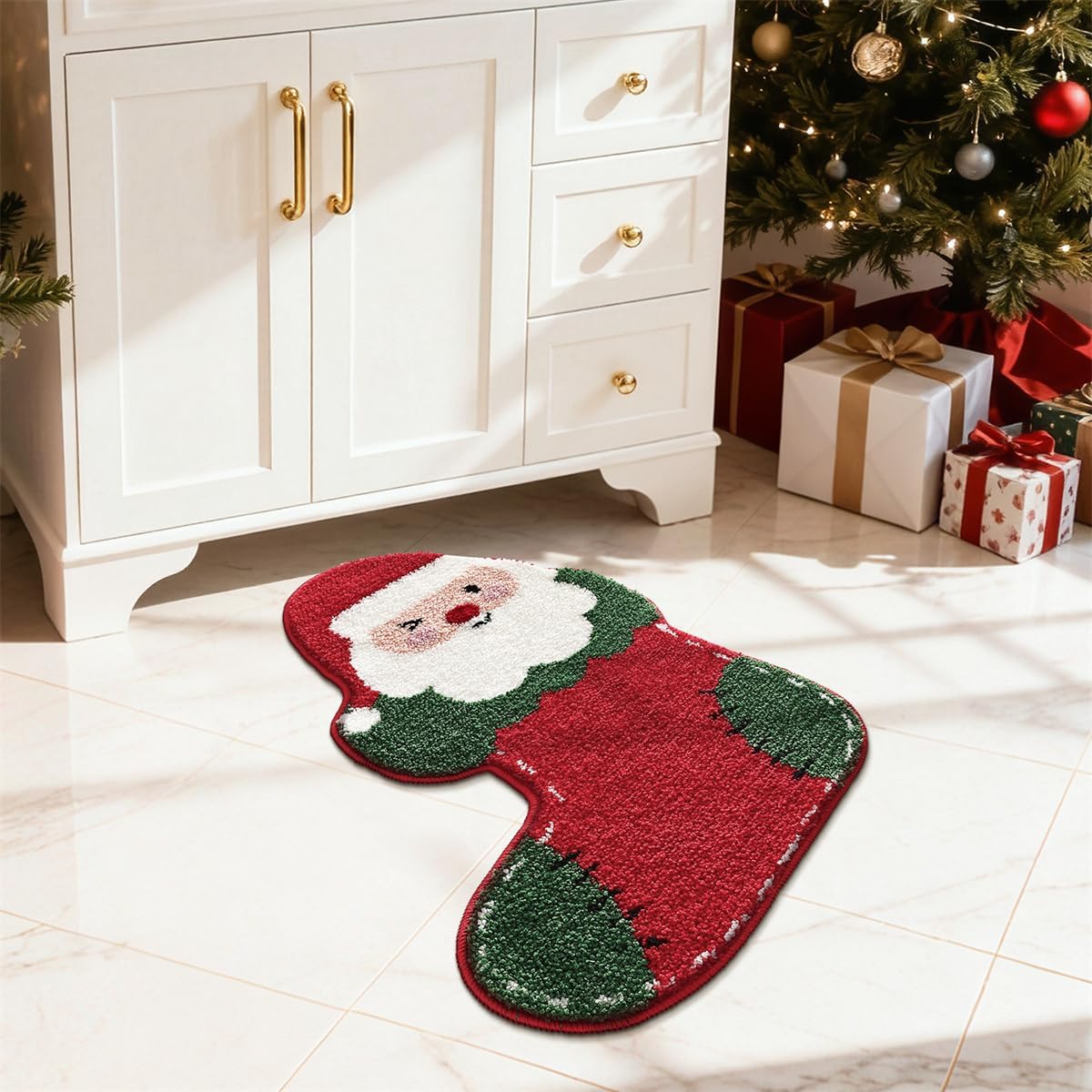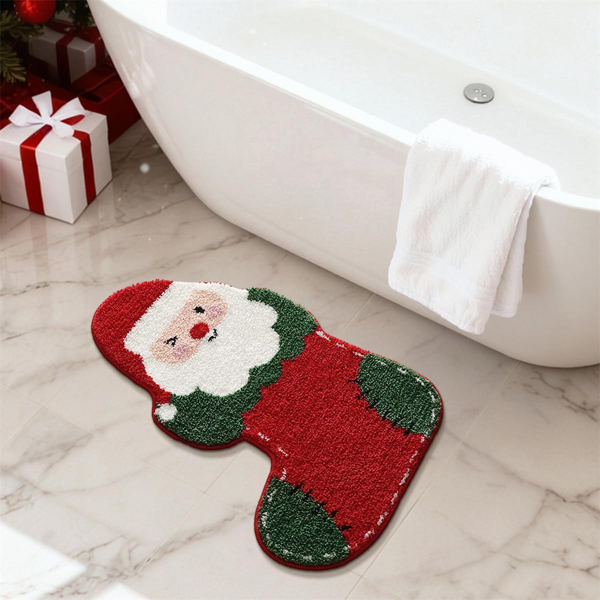 Ankah Alfombra de baño con árboles de Navidad, calcetín de Navidad y Papá Noel, suave, afelpada, de alta absorción, antideslizante, lavable a máquina, tapete de baño de felicidad para festivales