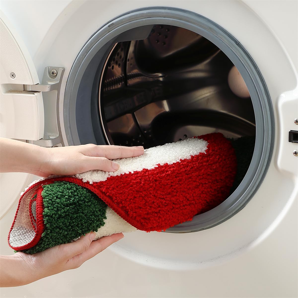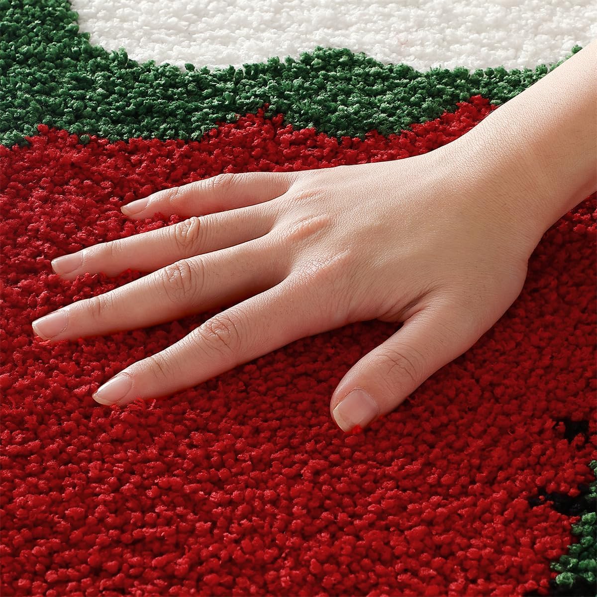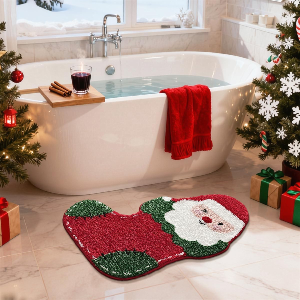 Ankah Alfombra de baño con árboles de Navidad, calcetín de Navidad y Papá Noel, suave, afelpada, de alta absorción, antideslizante, lavable a máquina, tapete de baño de felicidad para festivales