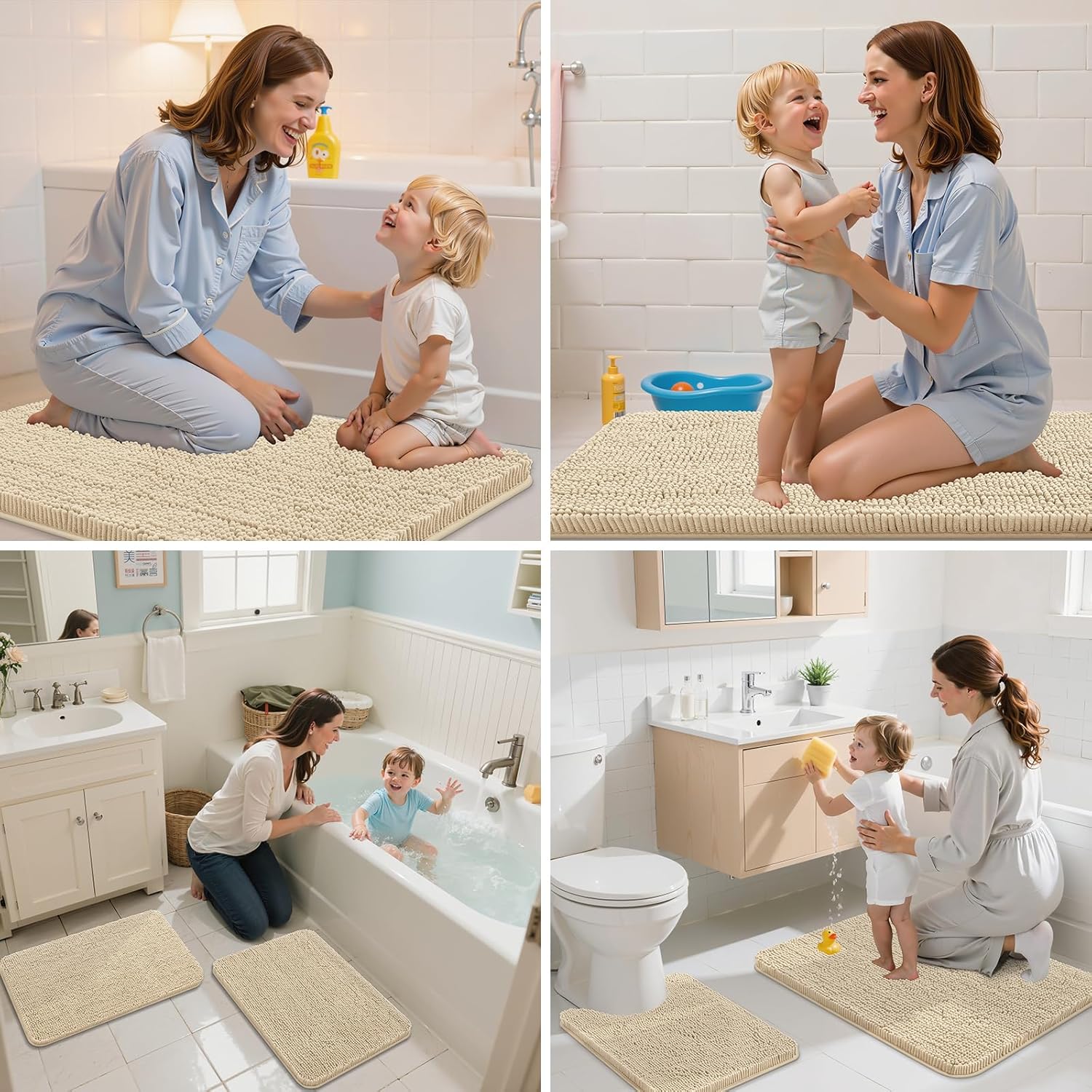 Respaldo antideslizante: diseñado con un respaldo antideslizante de TPR, estas alfombrillas de baño proporcionan un agarre seguro que evita resbalones, deslizamientos o cambios durante el uso. Importante: Para una seguridad óptima, colóquelo solo sobre una superficie limpia, seca y plana. Asegúrate siempre de que la parte inferior de la alfombra permanezca seca