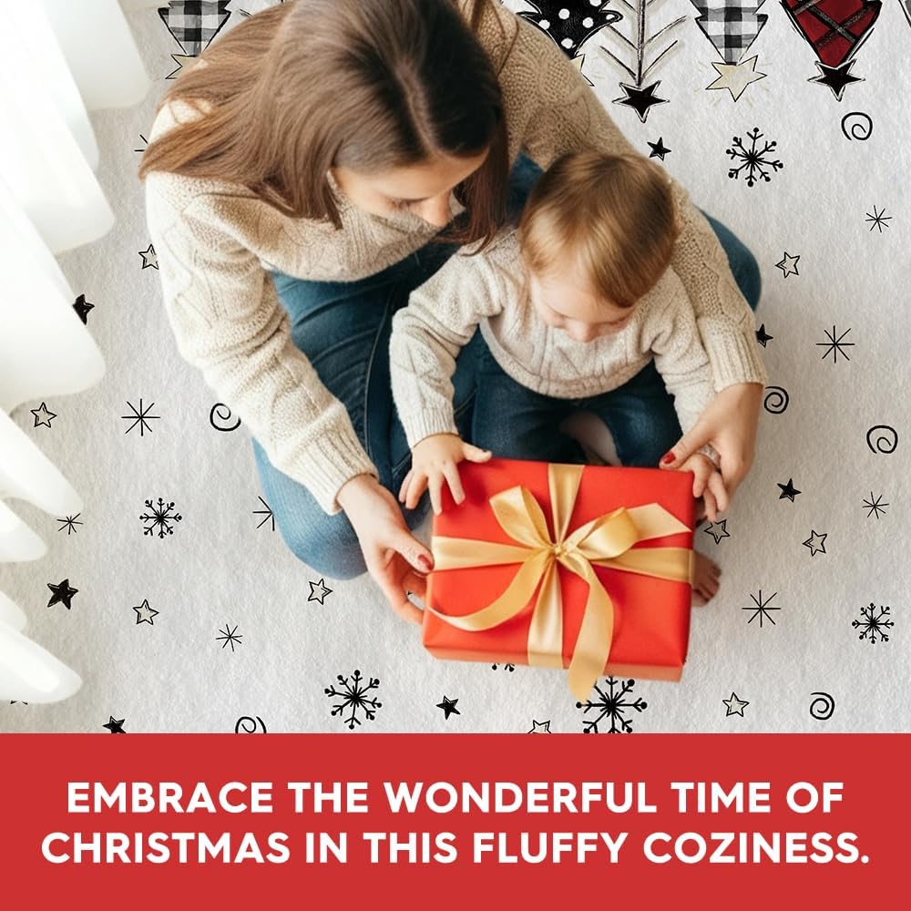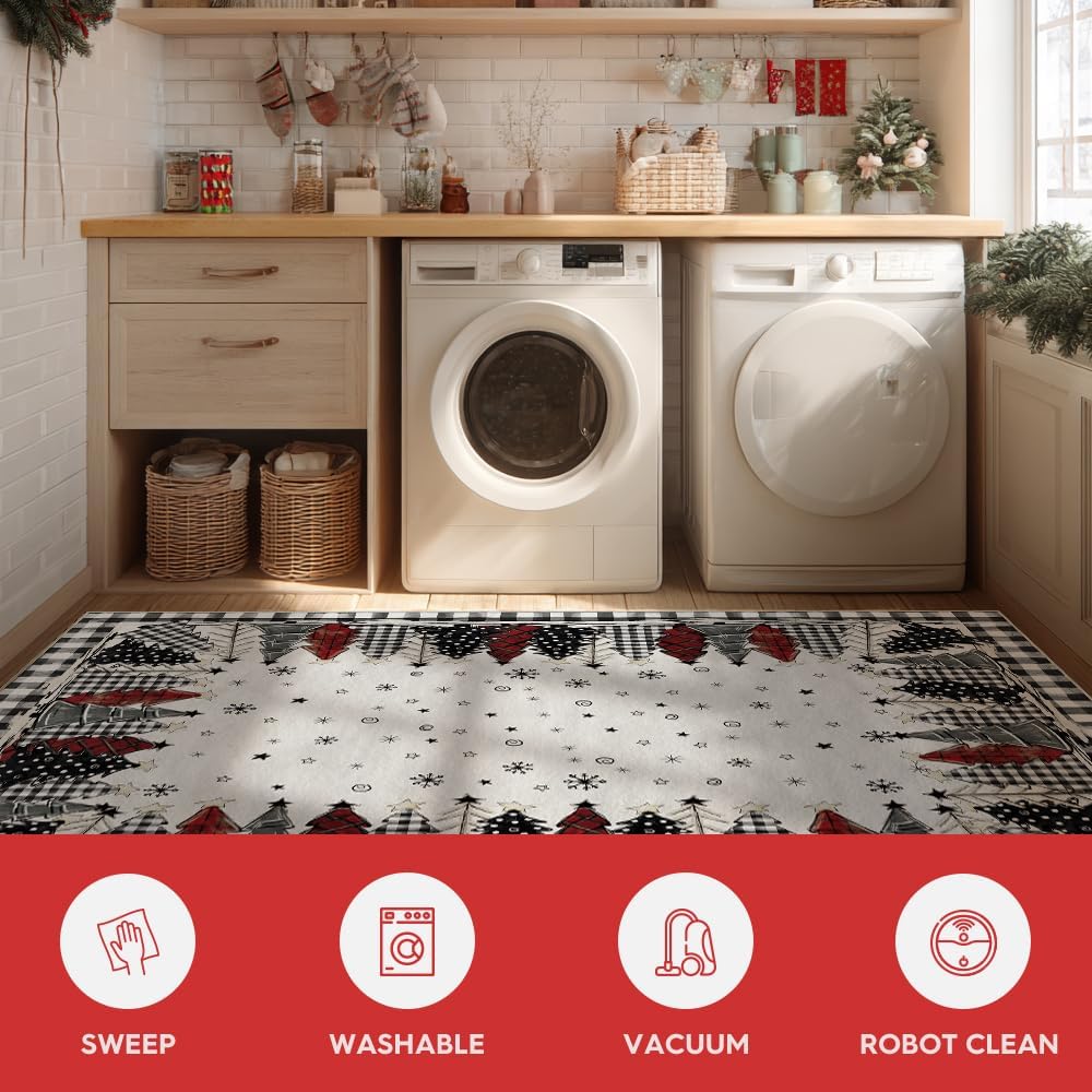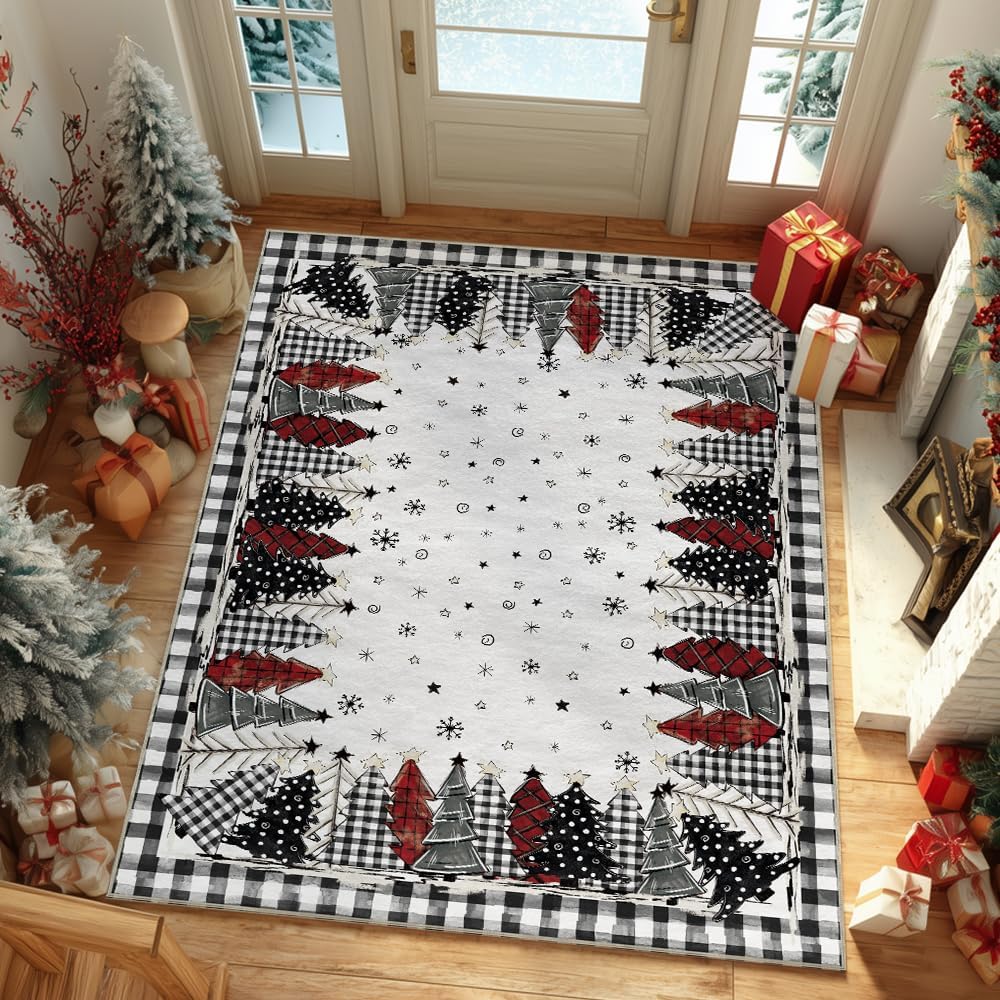 Artoid Mode Alfombra de área con diseño de árbol de Navidad con diseño de búfalo de acuarela, decoración del hogar, de bajo perfil, lavable, para entrada, dormitorio, sala de estar, lavandería,