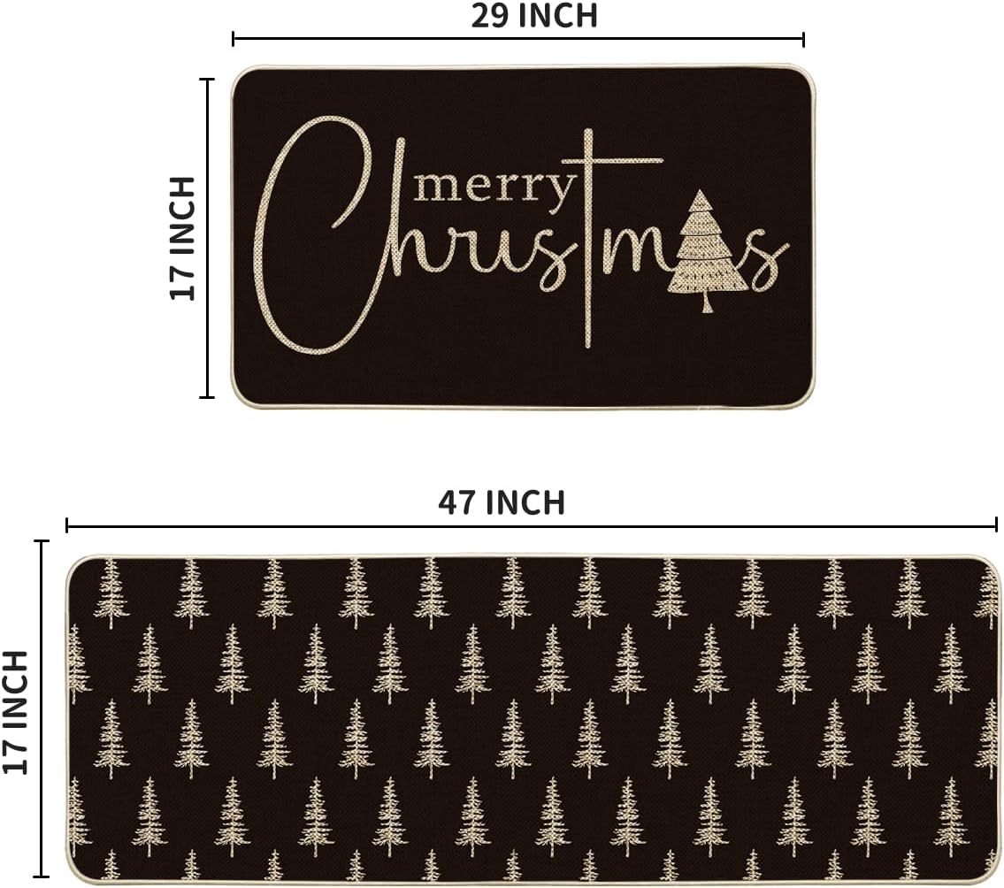 Artoid Mode Juego de 2 tapetes de cocina negros con árbol de Navidad, decoración del hogar, alfombras de cocina de bajo perfil para piso, 17 x 29 y 17 x 47 pulgadas