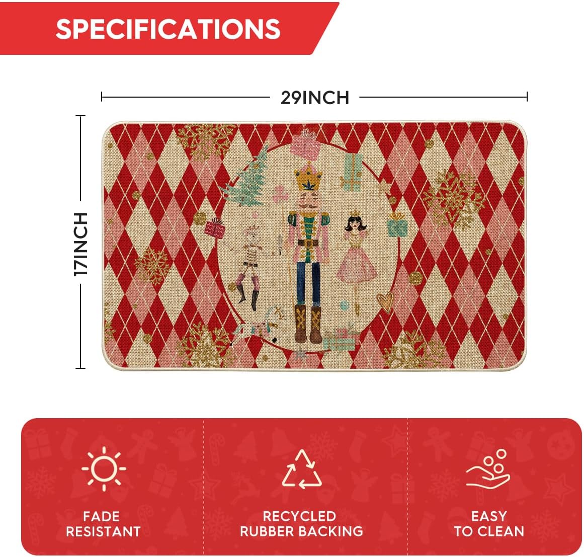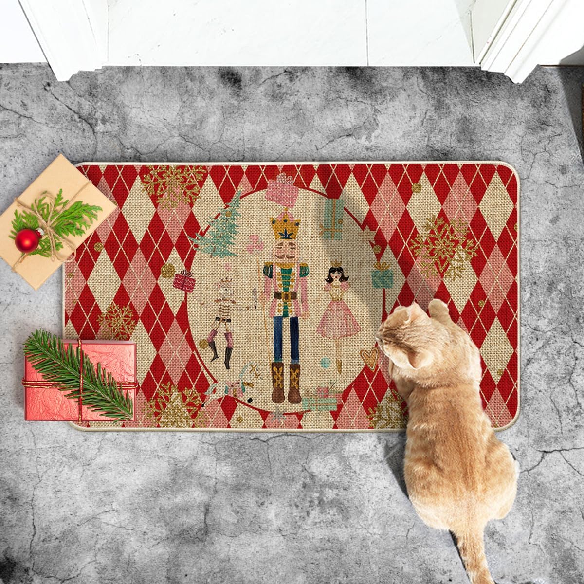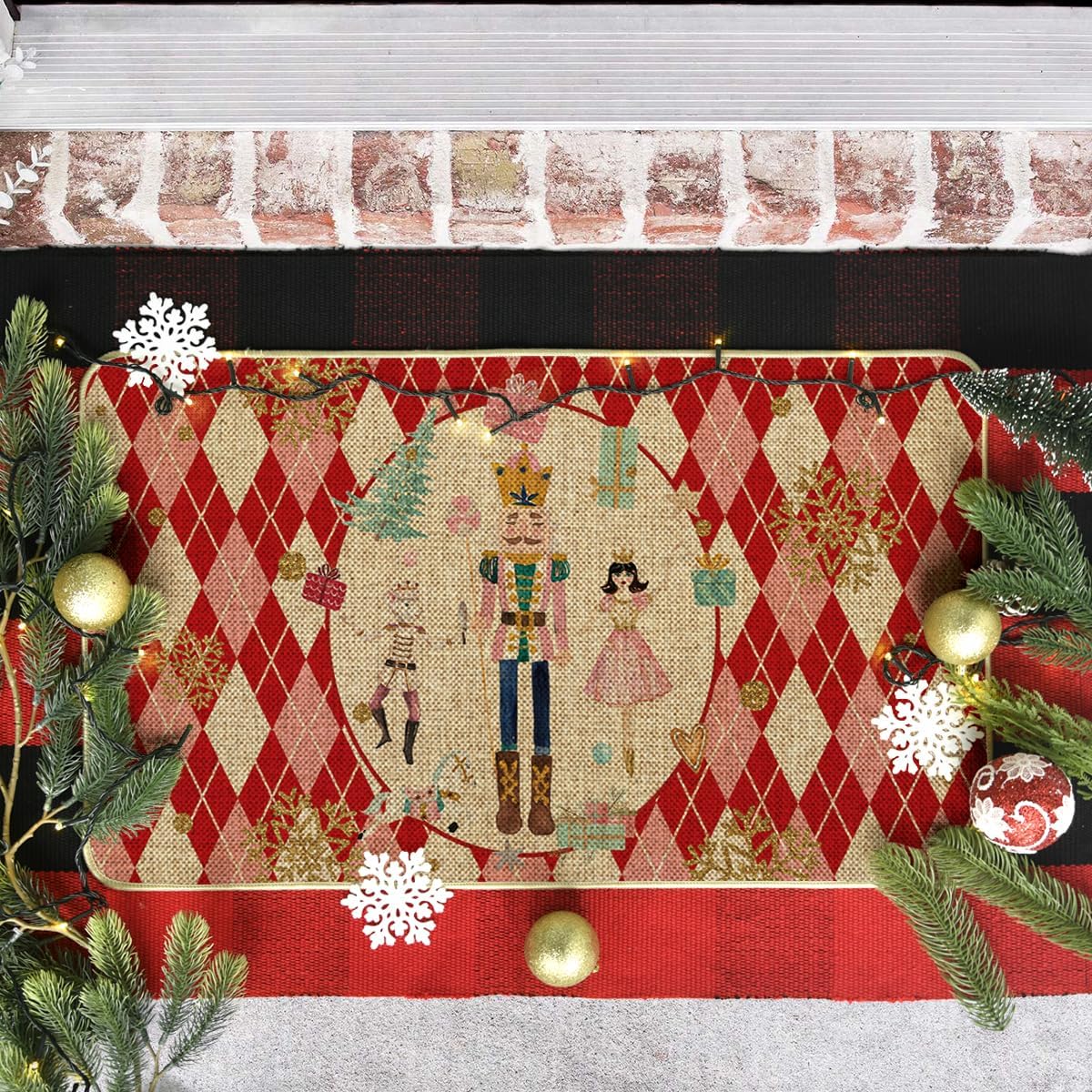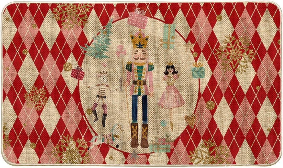 Artoid Mode Tapete de Navidad con diseño de cascanueces de diamantes rojos, decoración del hogar, tapete de bajo perfil para puerta de 17 x 29 pulgadas