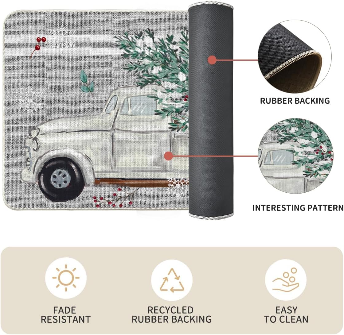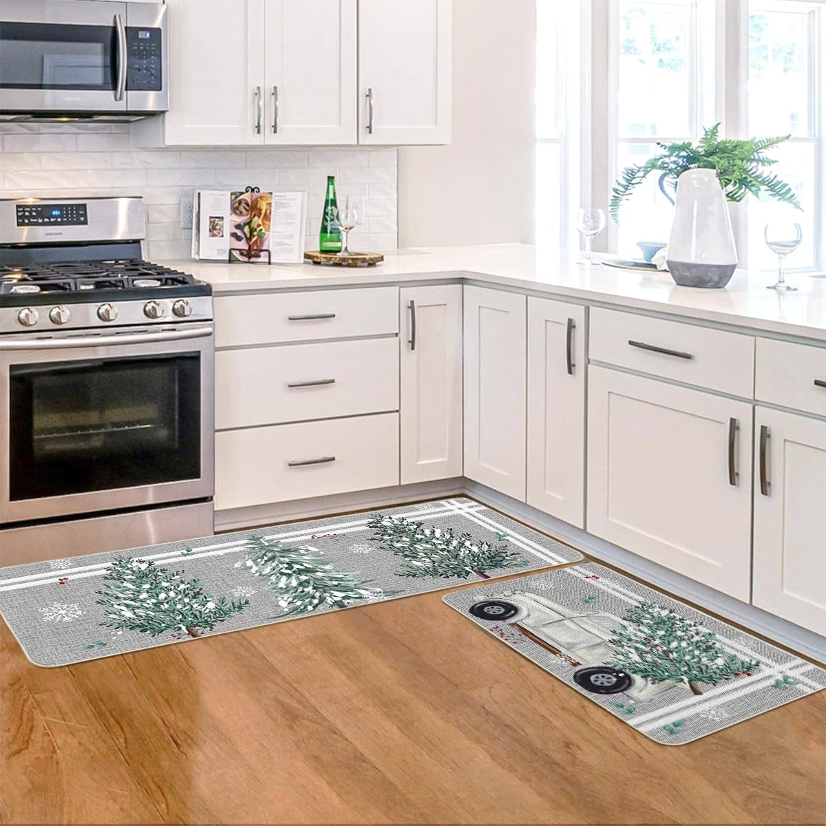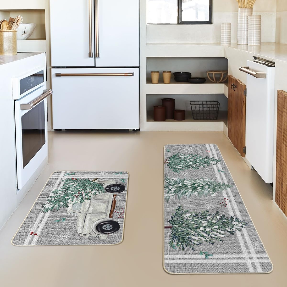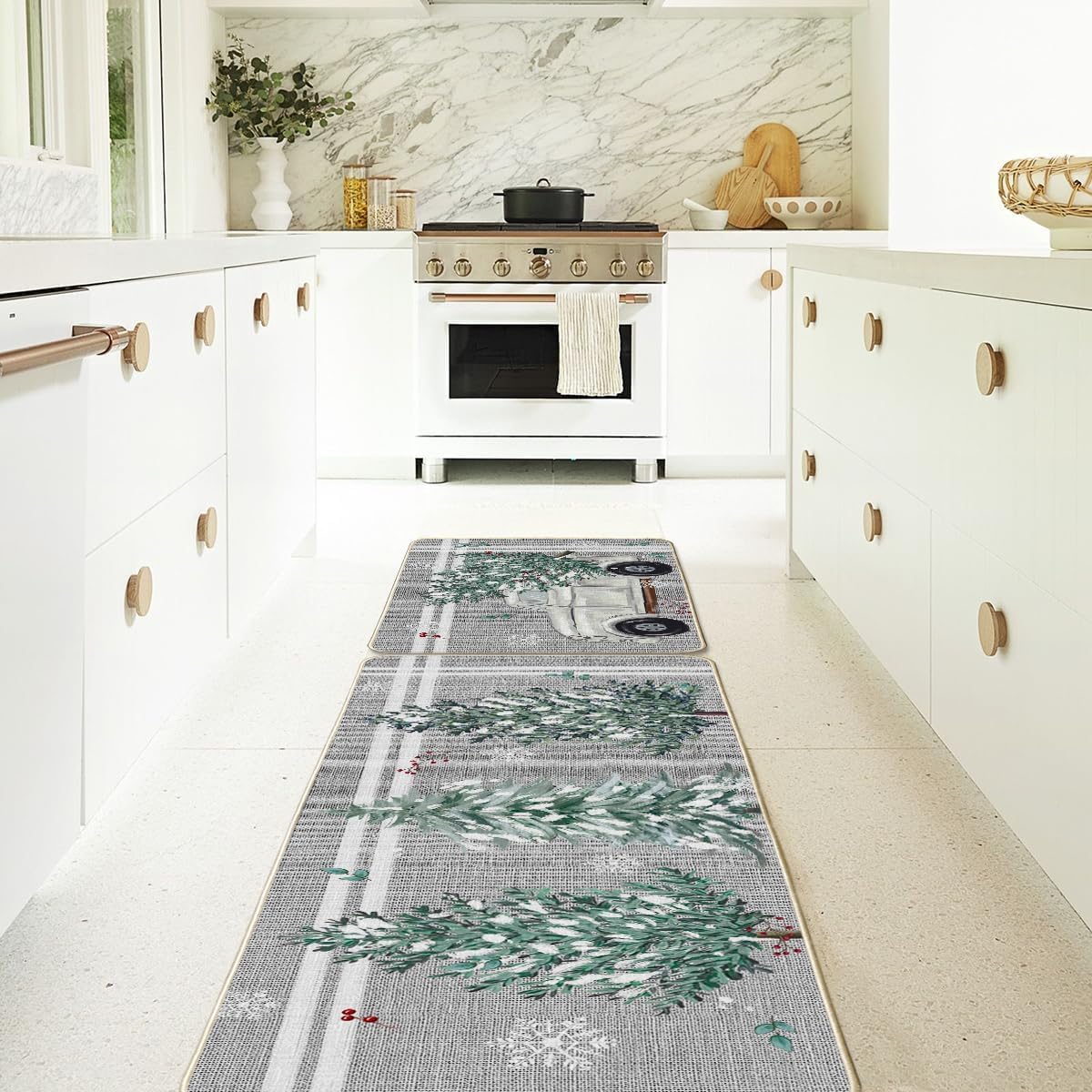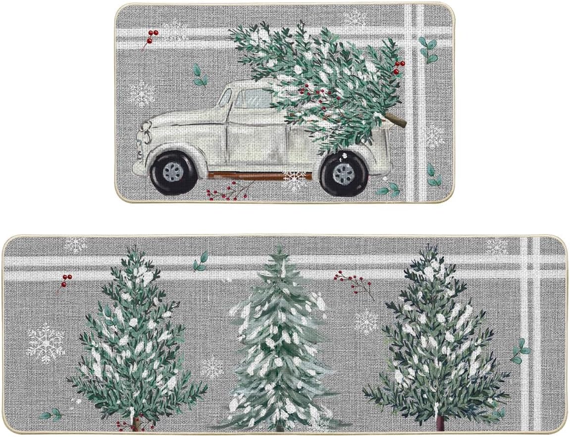 Artoid Mode Truck Pine Holly Stripes – Juego de 2 tapetes decorativos de cocina de bajo perfil, decoración del hogar, fiestas, 17 x 29 y 17 x 47 pulgadas