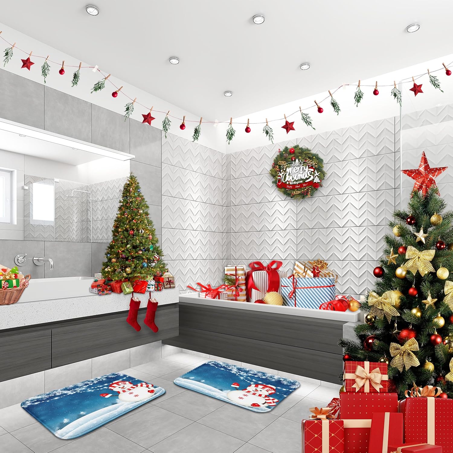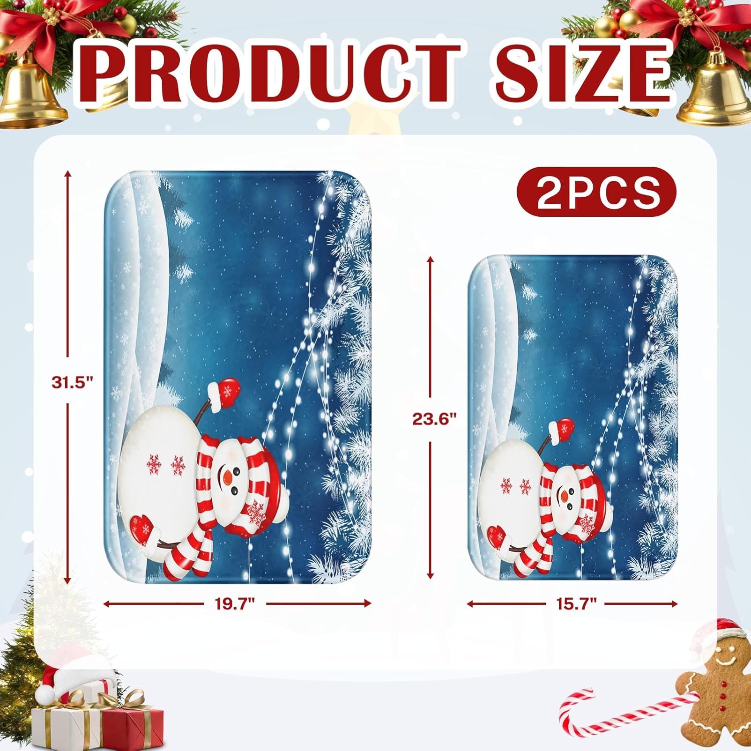 Dimensiones de nuestra alfombra de baño de invierno: estos lujosos juegos de alfombras de baño de primavera para baño/cocina/entrada están fabricados con dimensiones de 19.7 (aprox. 50.0 cm) de ancho x 31.4 (aprox. 79.8 cm) de largo y 15.7 (aprox. 39.9 cm) de ancho x 23.6 (aprox. 59.9 cm) de largo. Cuenta con espuma viscoelástica de alta densidad y más gruesa, varía con muchos colores y patrones, adecuado para decoración de baño de diferentes temas.