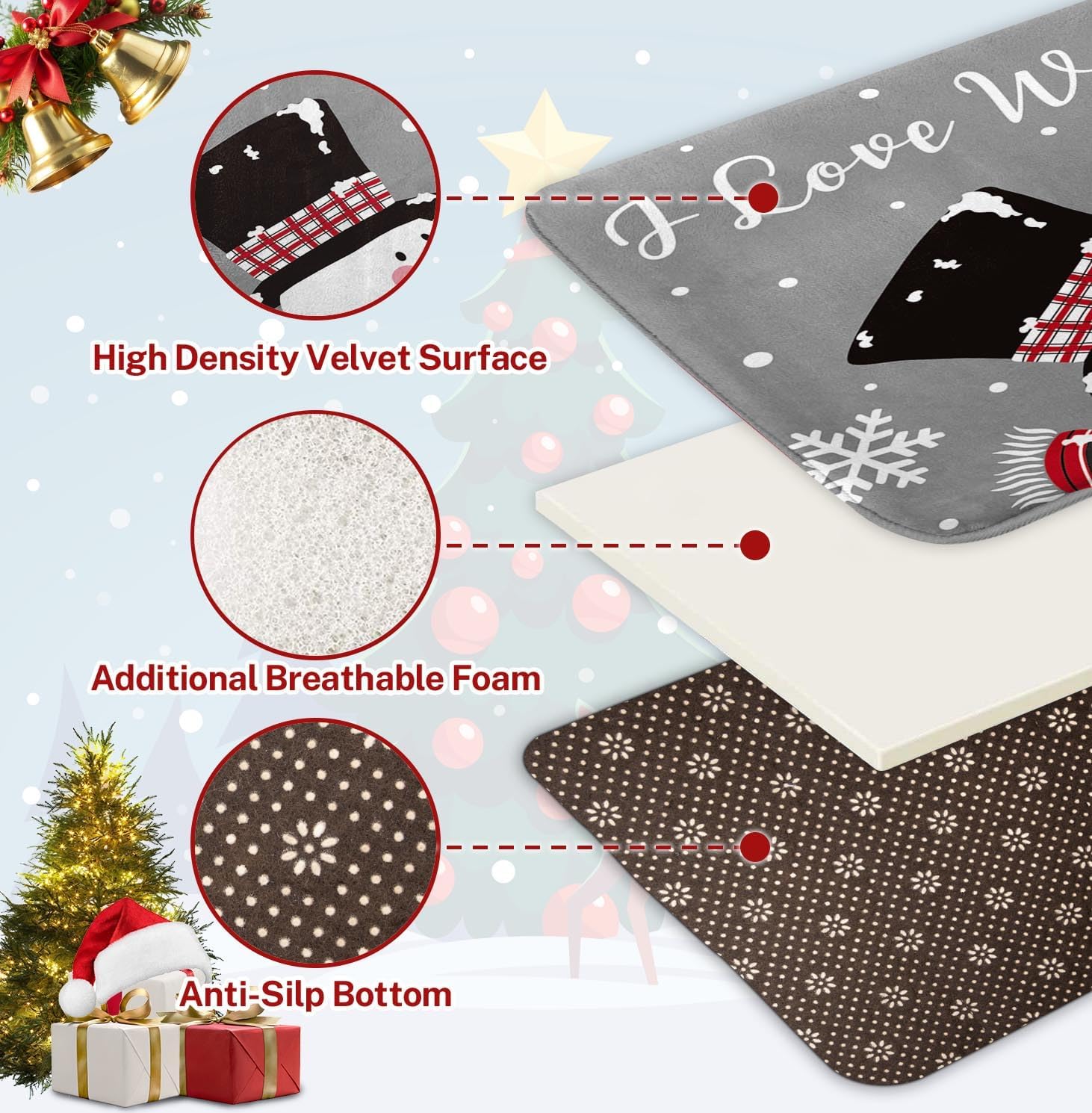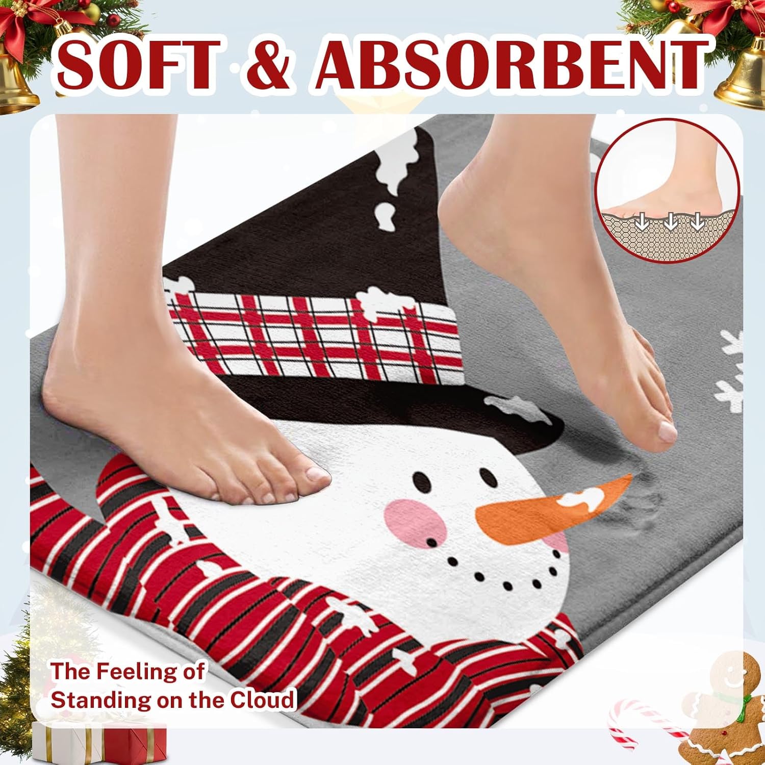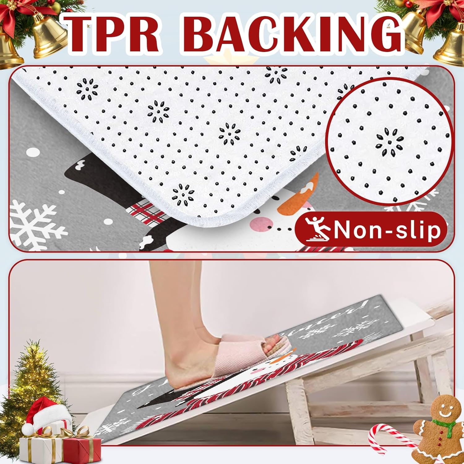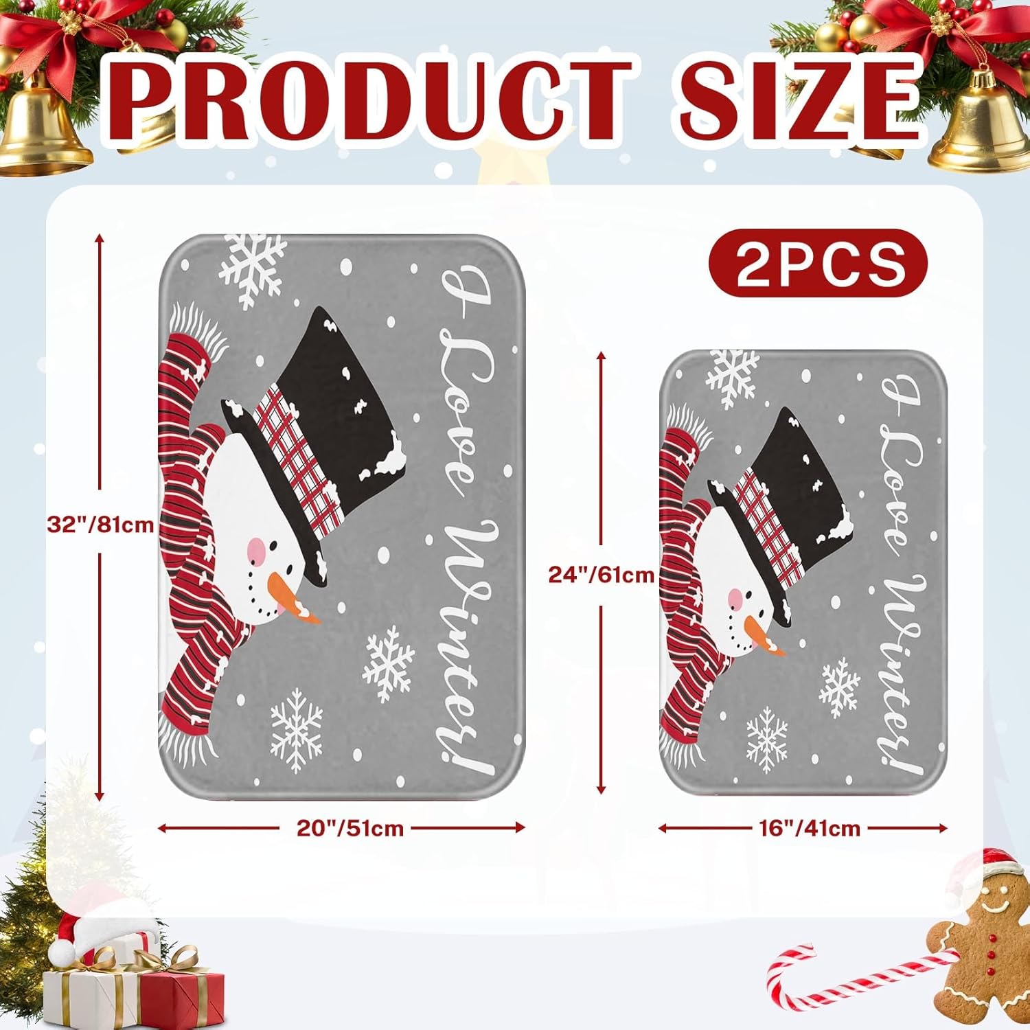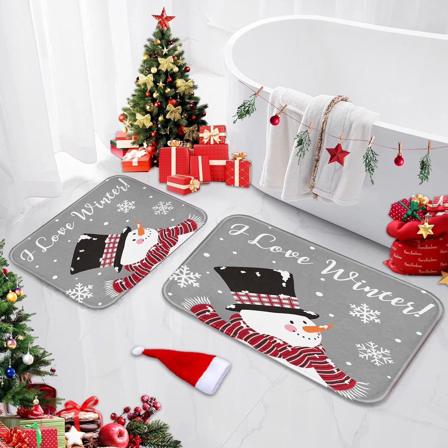 Arttown Juego de 2 tapetes de baño de Navidad, lindos copos de nieve y copos de nieve sobre fondo gris, cubierta lavable, alfombra de piso, alfombra de baño, decoración de baño, 16 x 24 y 20 x 32