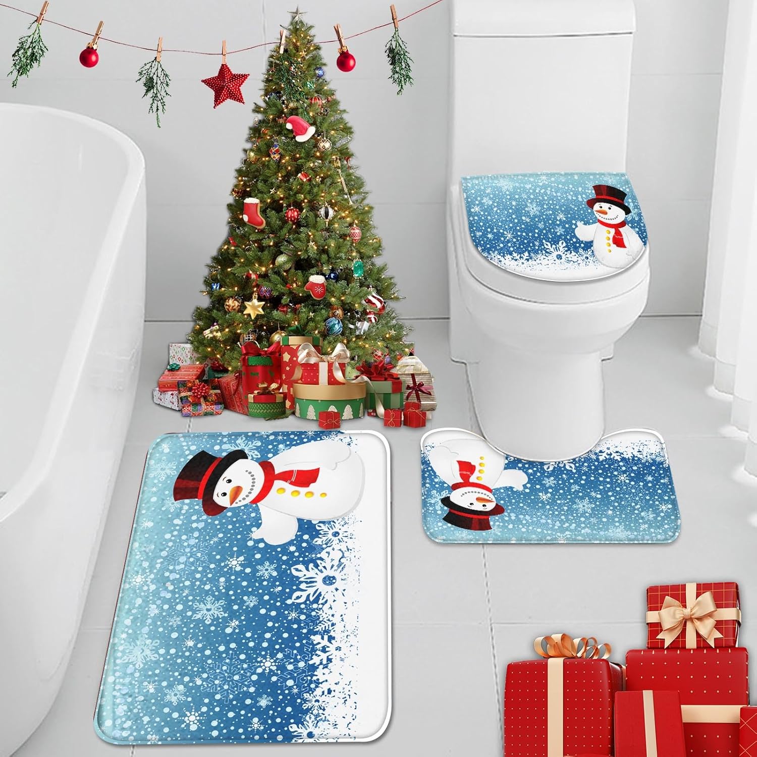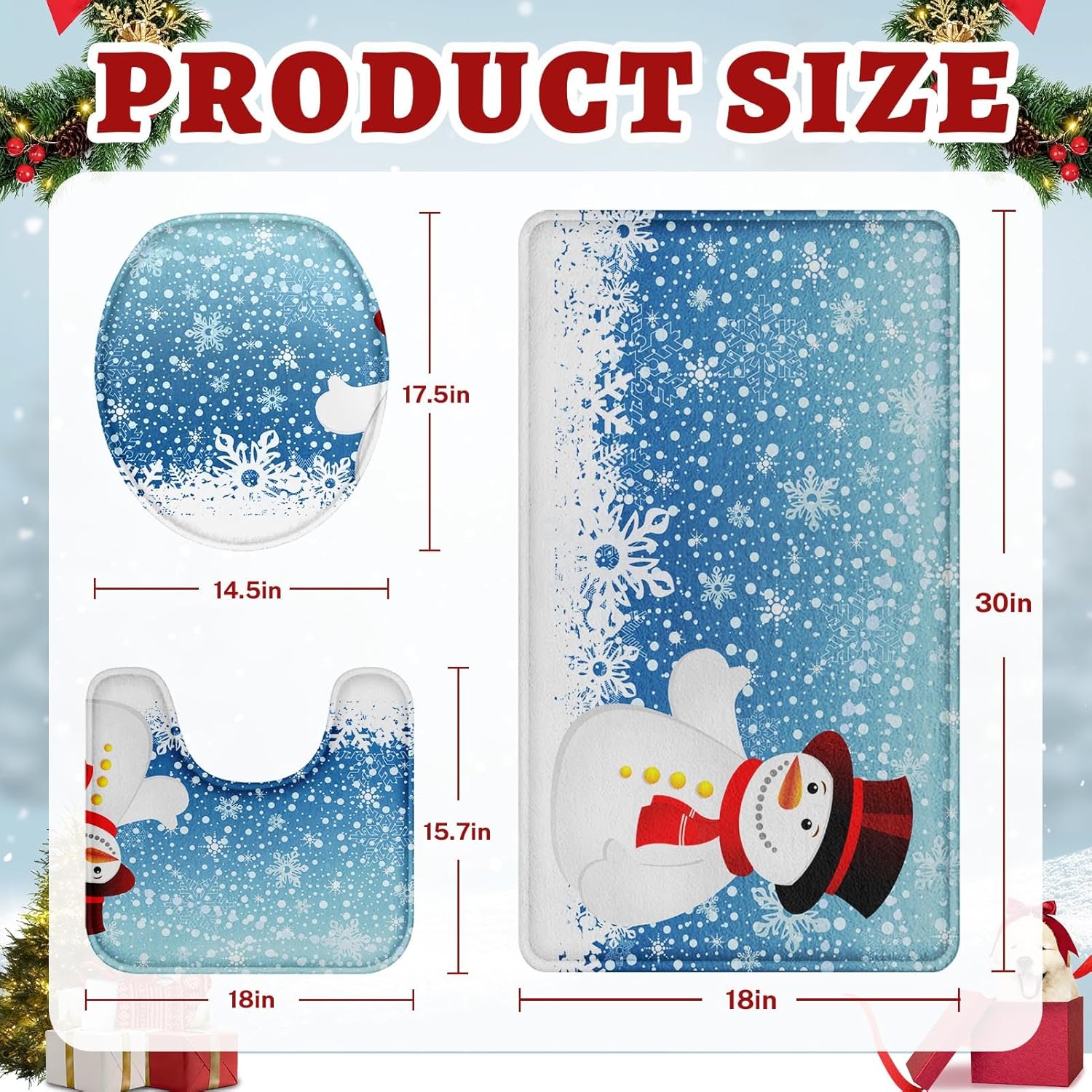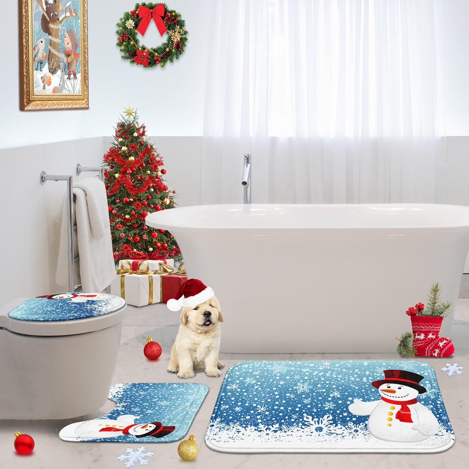 Arttown Juego de 3 alfombras de baño de Navidad, muñeco de nieve y copos de nieve, juego de 3 alfombrillas de baño para baño, color blanco, cubierta lavable, decoración para cocina, baño, dormitorio