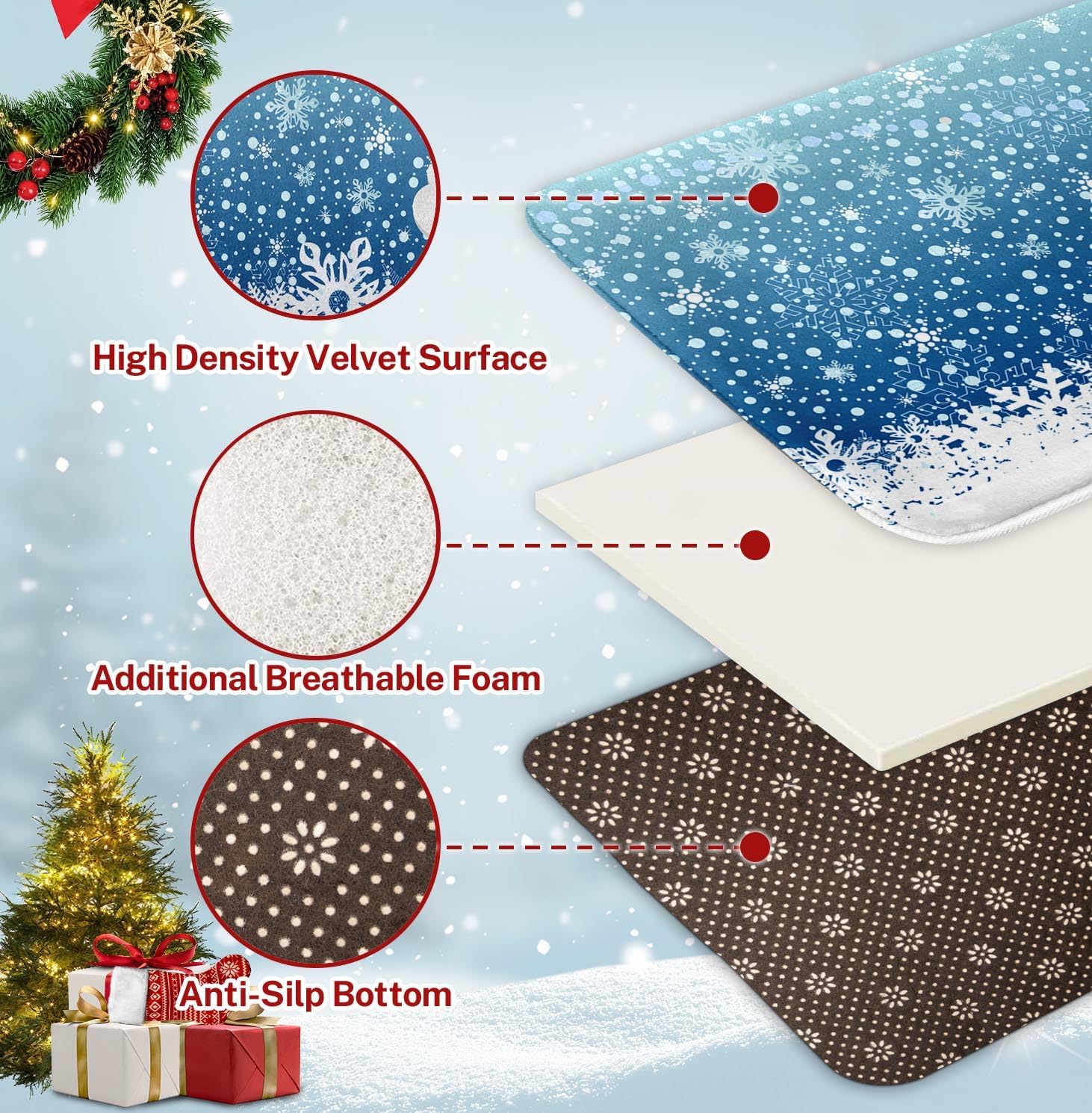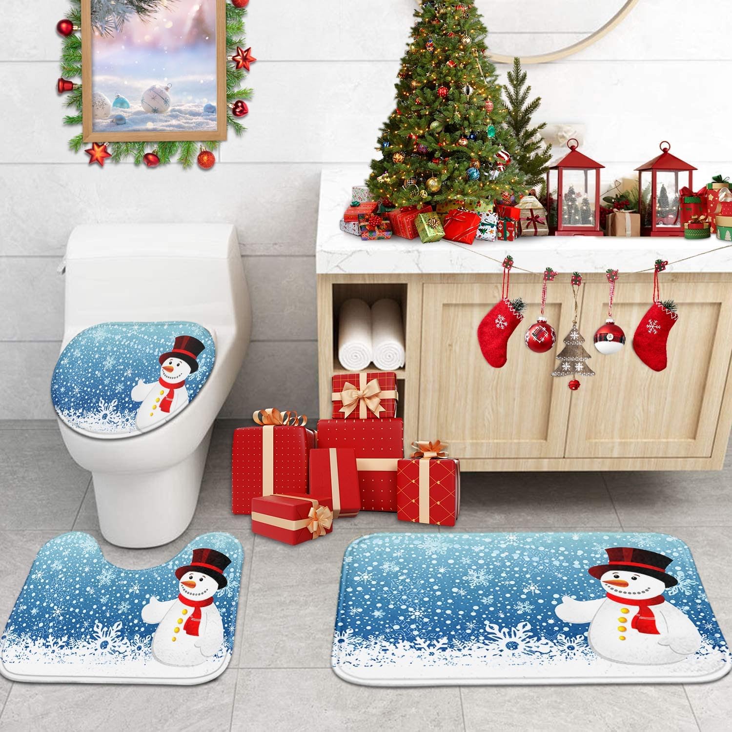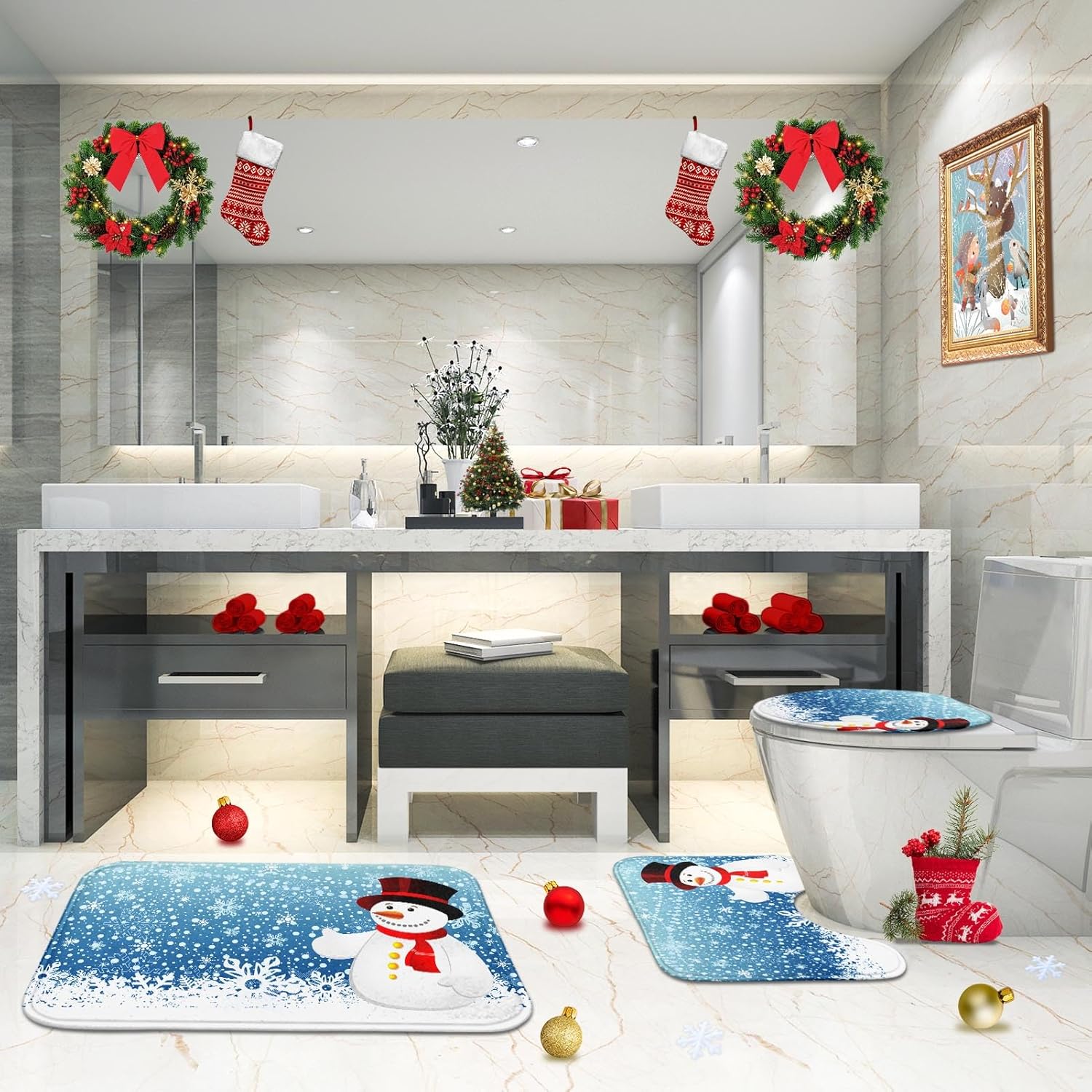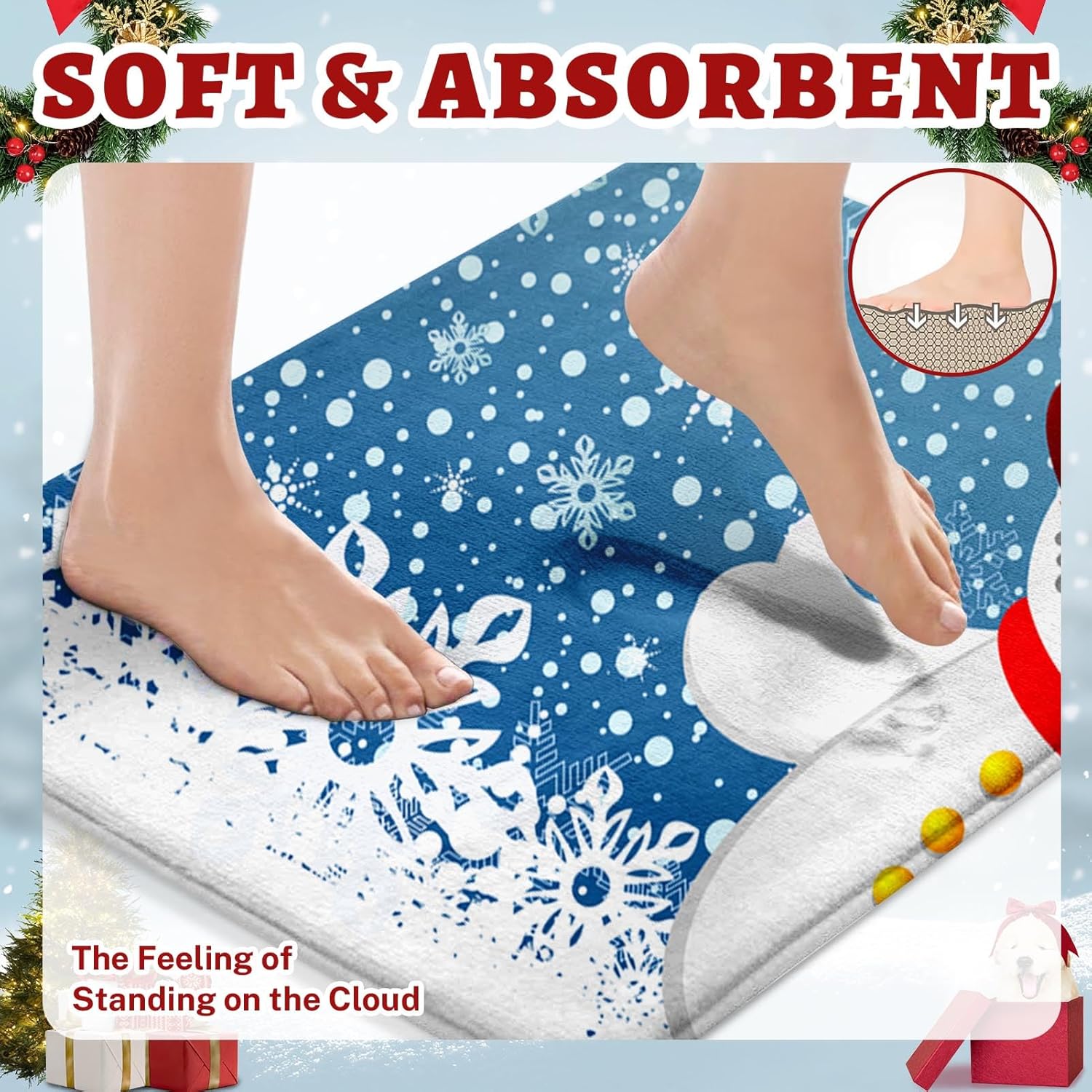 Arttown Juego de 3 alfombras de baño de Navidad, muñeco de nieve y copos de nieve, juego de 3 alfombrillas de baño para baño, color blanco, cubierta lavable, decoración para cocina, baño, dormitorio