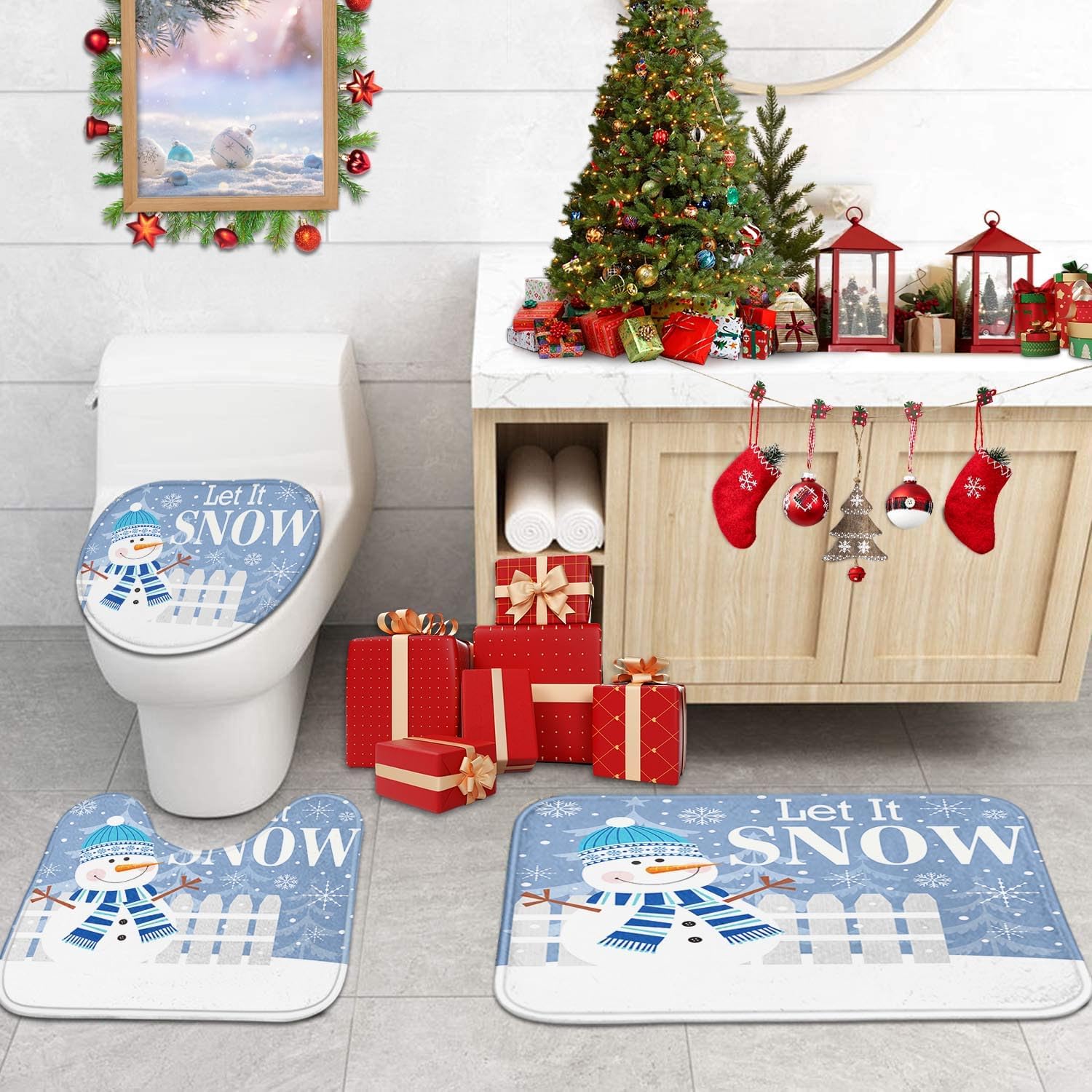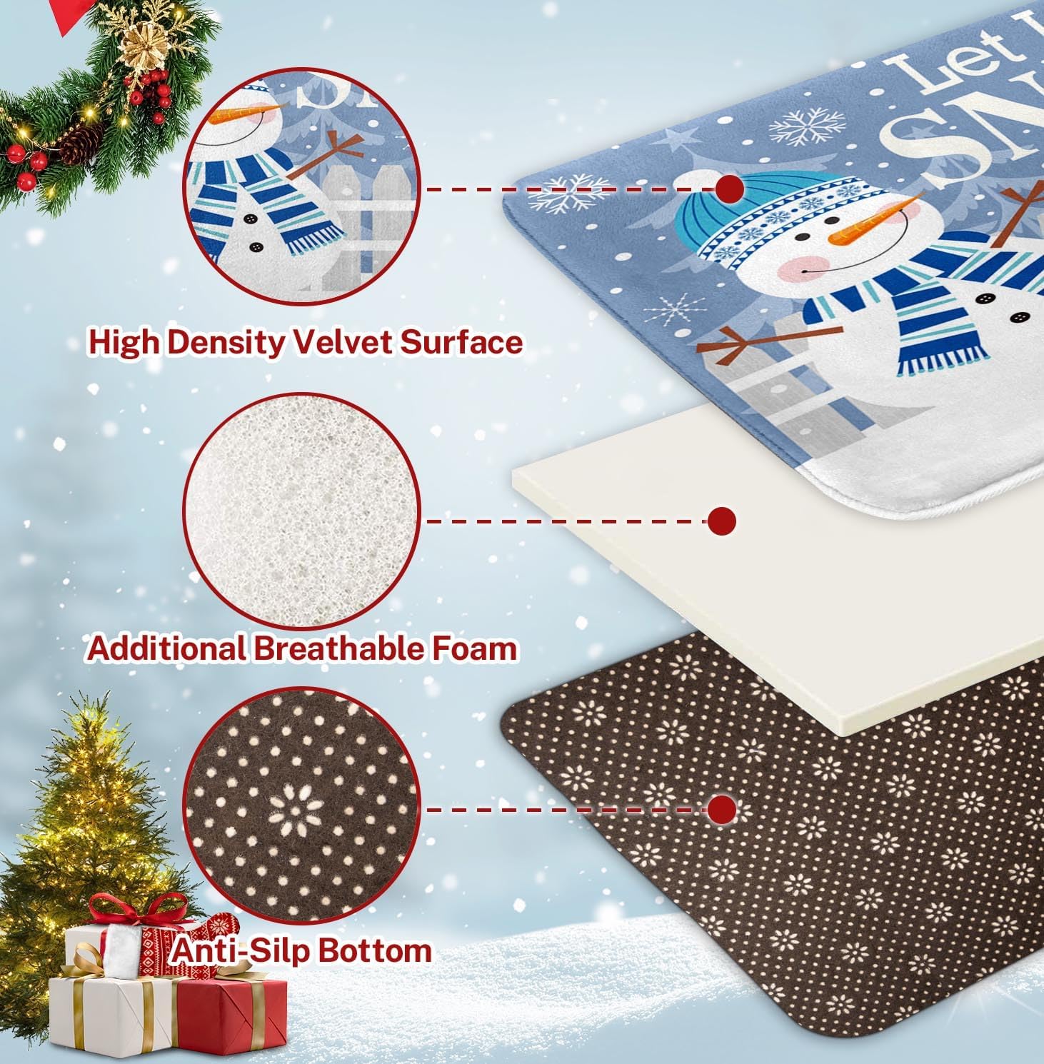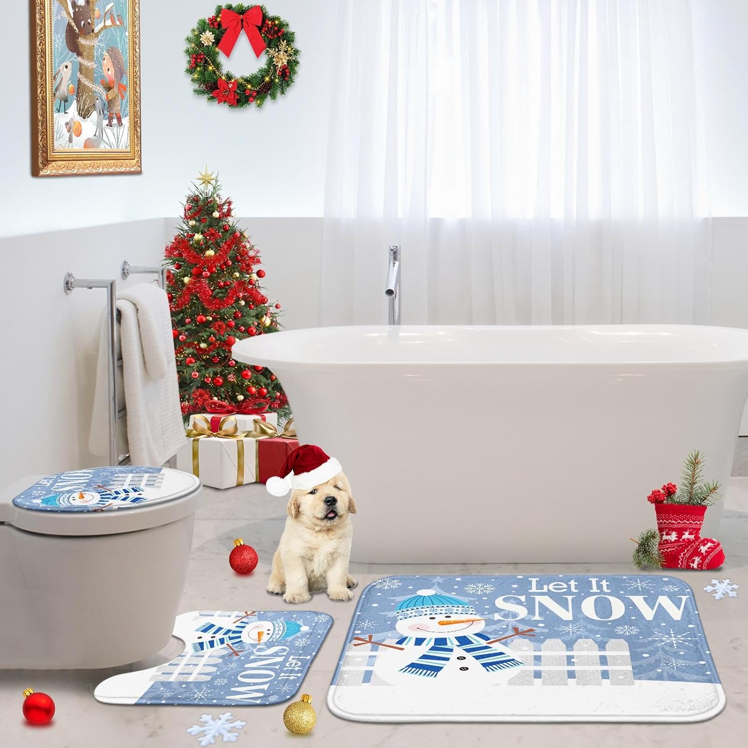 Arttown Juego de 3 tapetes de baño con diseño de muñeco de nieve de Feliz Navidad, juego de 3 tapetes de baño con diseño de copo de nieve azul invernal para baño, cubierta lavable antisedas,