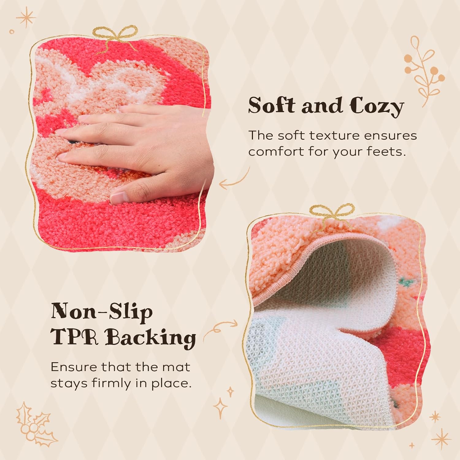 Decoración versátil para las fiestas: mide 45 x 18 (aprox. 45.7 cm), esta alfombra de Navidad rosa y roja es perfecta para varios espacios, úsalo como un felpudo festivo, una acogedora alfombra de noche o un encantador acento navideño. Deja que la alfombra Ashler HOHO ilumine tu hogar con espíritu de temporada