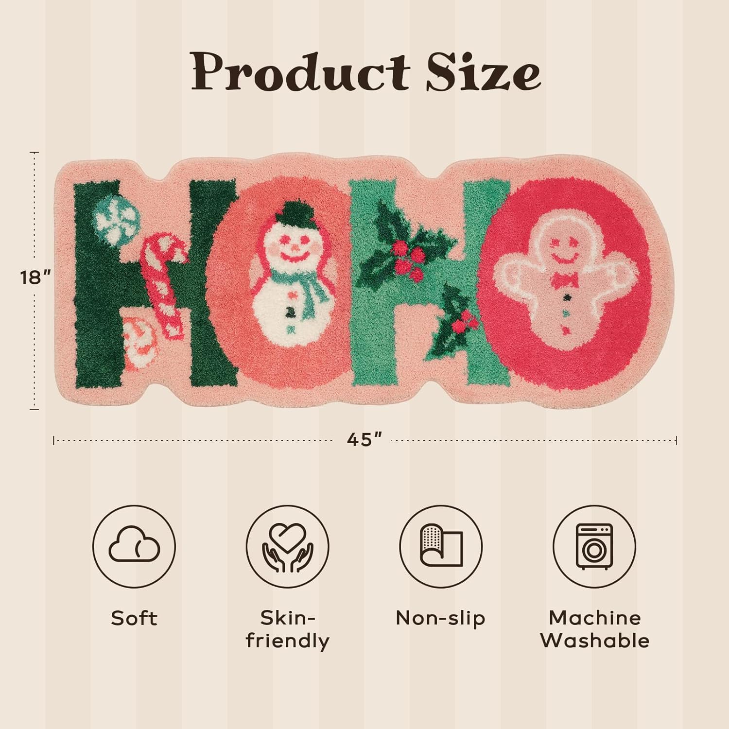 Ashler – Alfombra de baño de Navidad, suave y absorbente con letras HOHO, bonita alfombra decorativa rosa antideslizante para baño, puerta delantera, sala de estar, 45 x 18 pulgadas