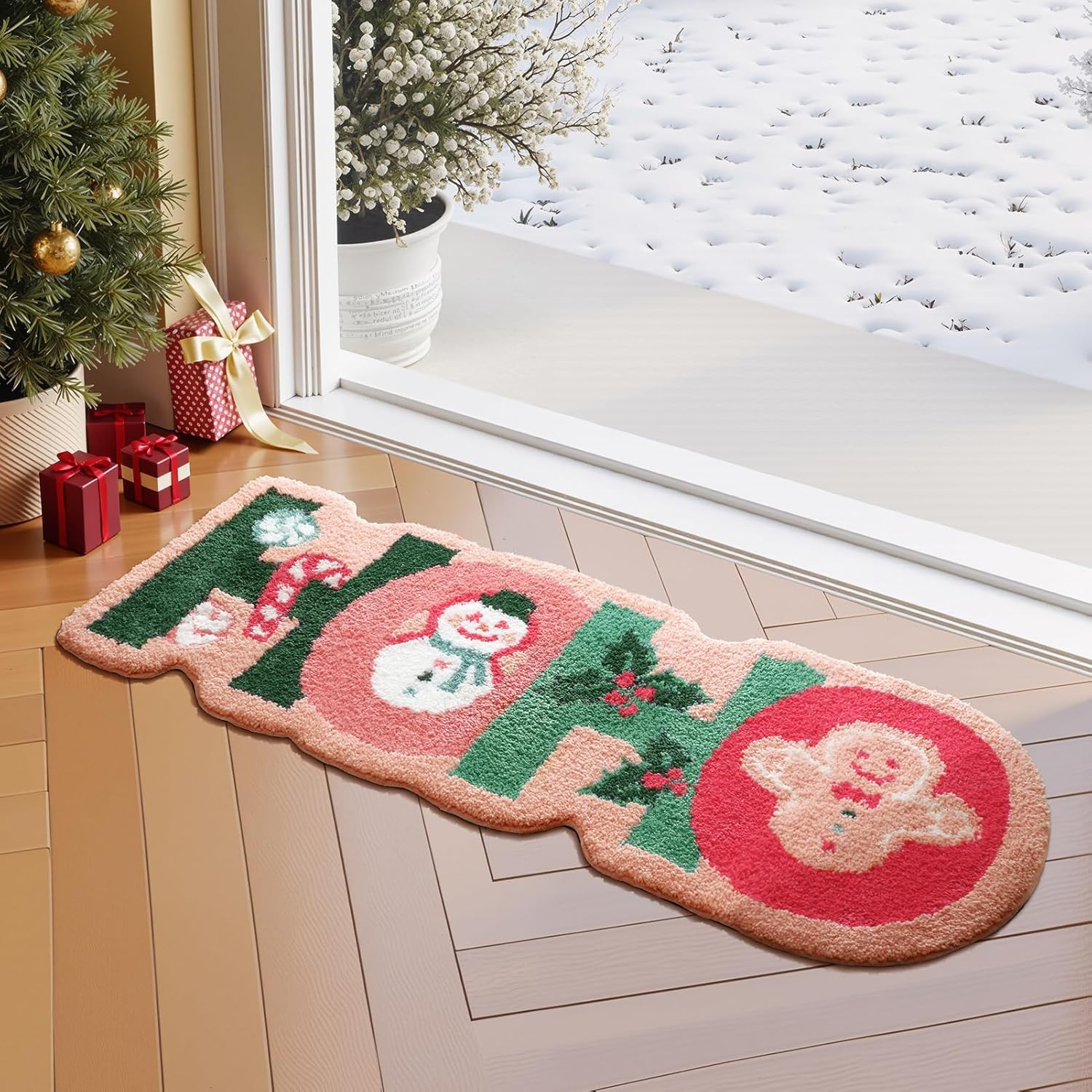 【Alfombra de Navidad con forma de letra HOHO】 El divertido diseño de la letra “HOHO” aporta alegría festiva a tu hogar.