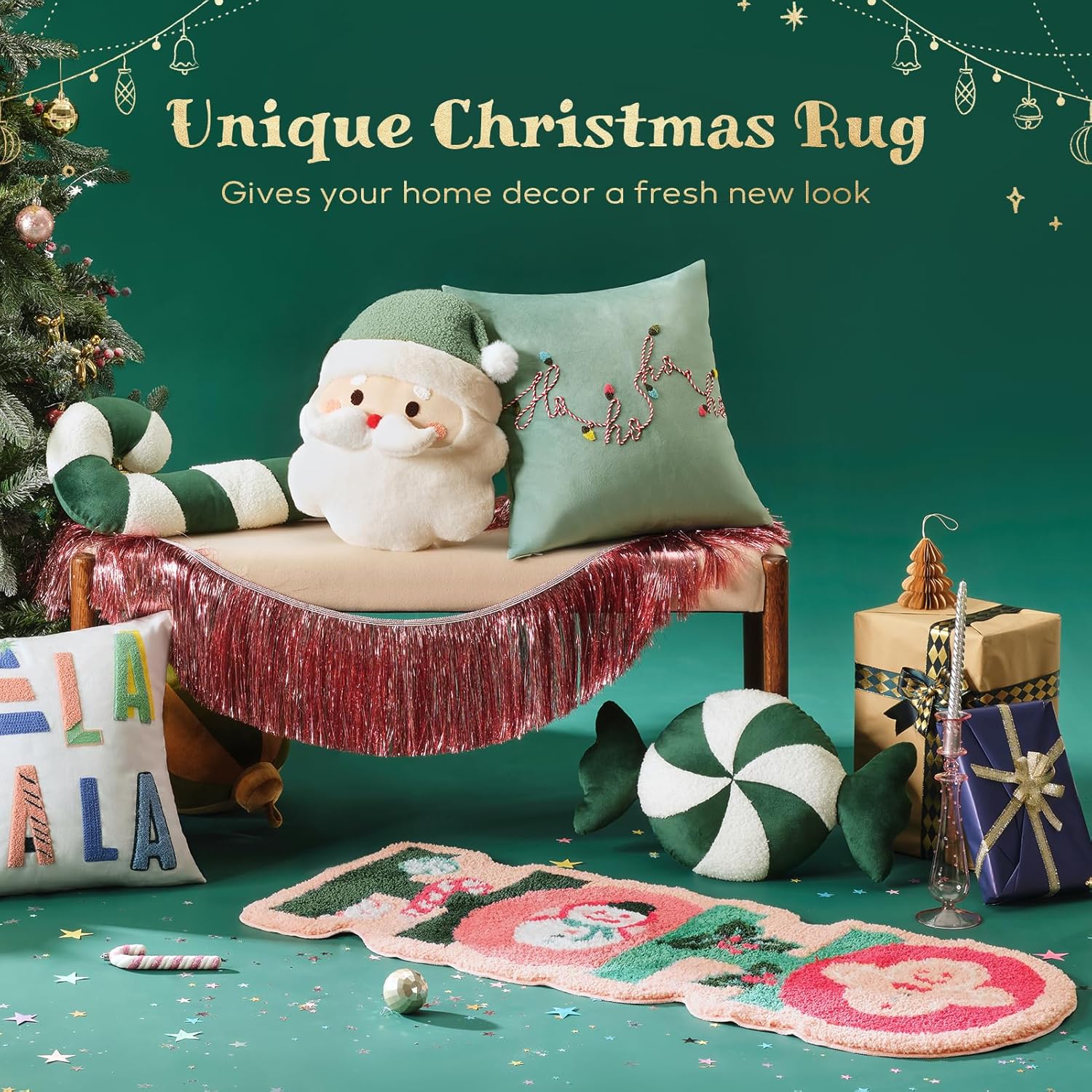 【Alfombra de Navidad con forma de letra HOHO】 El divertido diseño de la letra “HOHO” aporta alegría festiva a tu hogar. Adornada con bonitos elementos navideños como bastones de caramelo, muñecos de nieve y hombres de jengibre, esta alfombra Ashler añade un toque caprichoso a tu decoración navideña. Perfecto para difundir alegría en cualquier habitación