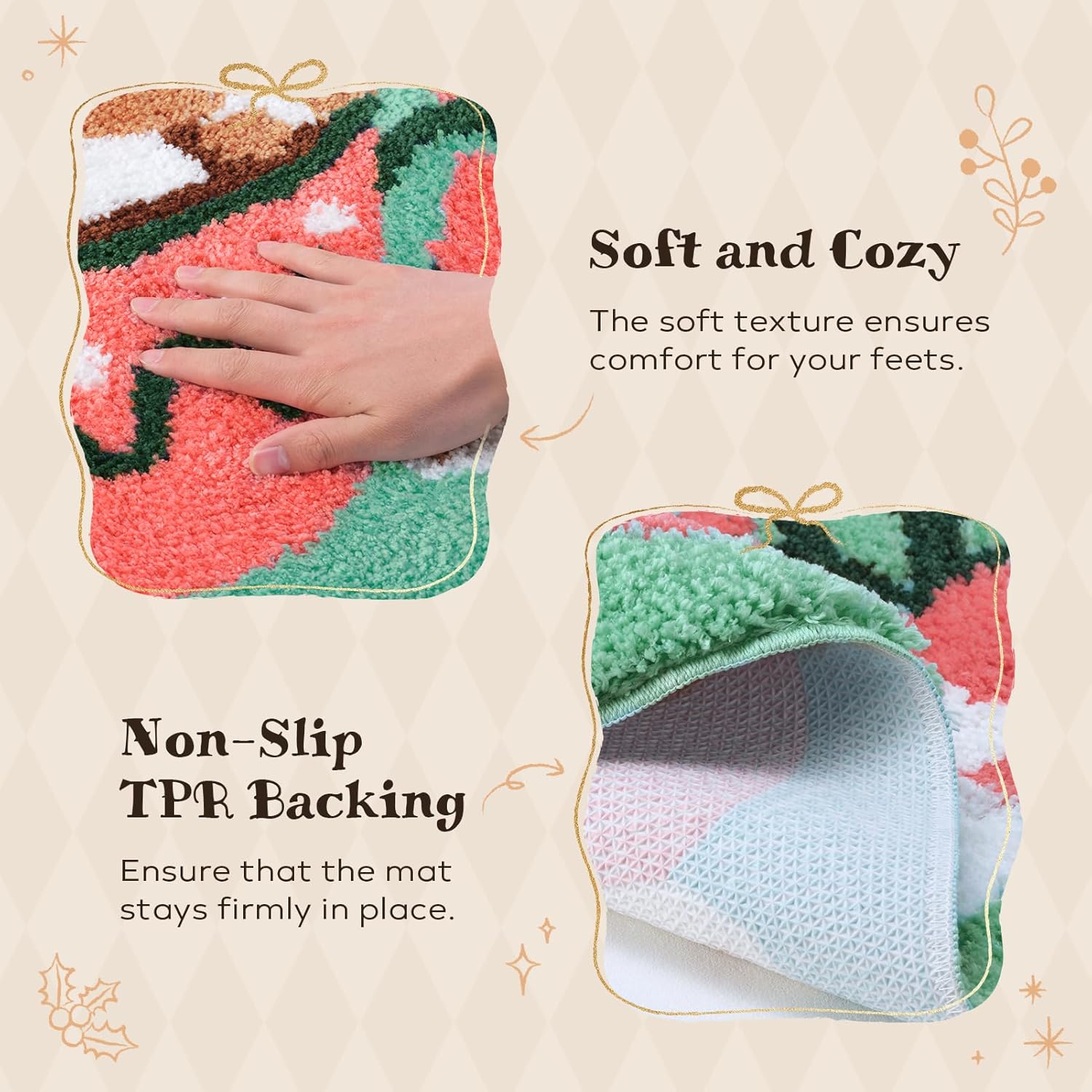 【Felpa y ultra suave】Sumerge tus pies en la superficie de felpa y copetuda de esta alfombra de 39 x 20 (aprox. 50.8 cm), diseñada para una comodidad inigualable. La textura ultrasuave proporciona una sensación cálida y acogedora, por lo que es ideal para las frías mañanas de invierno. Deja que la alfombra de Navidad Ashler traiga alegría y comodidad a tu espacio
