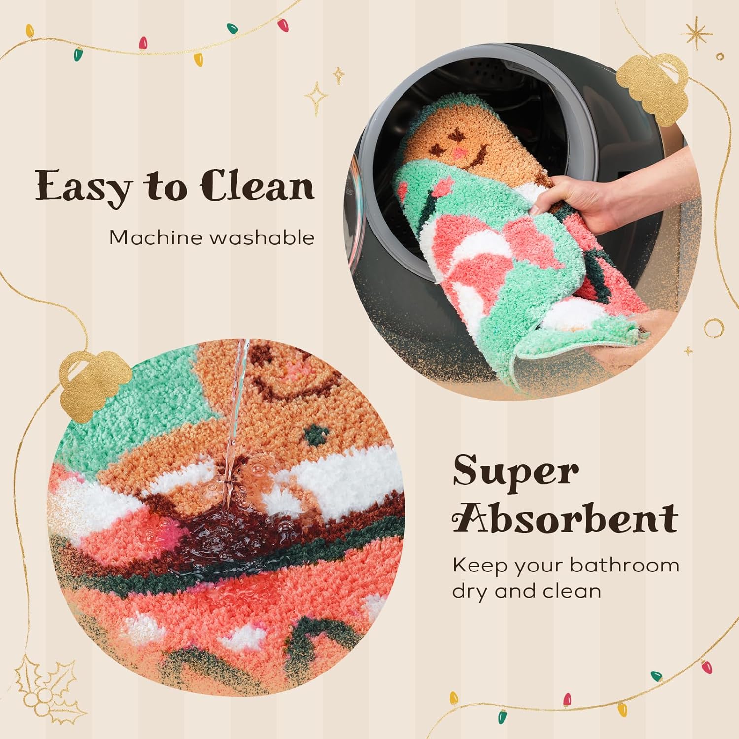 Parte trasera de seguridad antideslizante: diseñada con un respaldo de goma duradera, esta alfombra con temática navideña se mantiene firmemente en su lugar, evitando resbalones mientras protege tus suelos de arañazos. Ya sea en la cocina, el baño o la sala de estar, la seguridad y el estilo van de la mano. (Consejo profesional: ¡Deje que el respaldo se seque completamente antes de usar!)