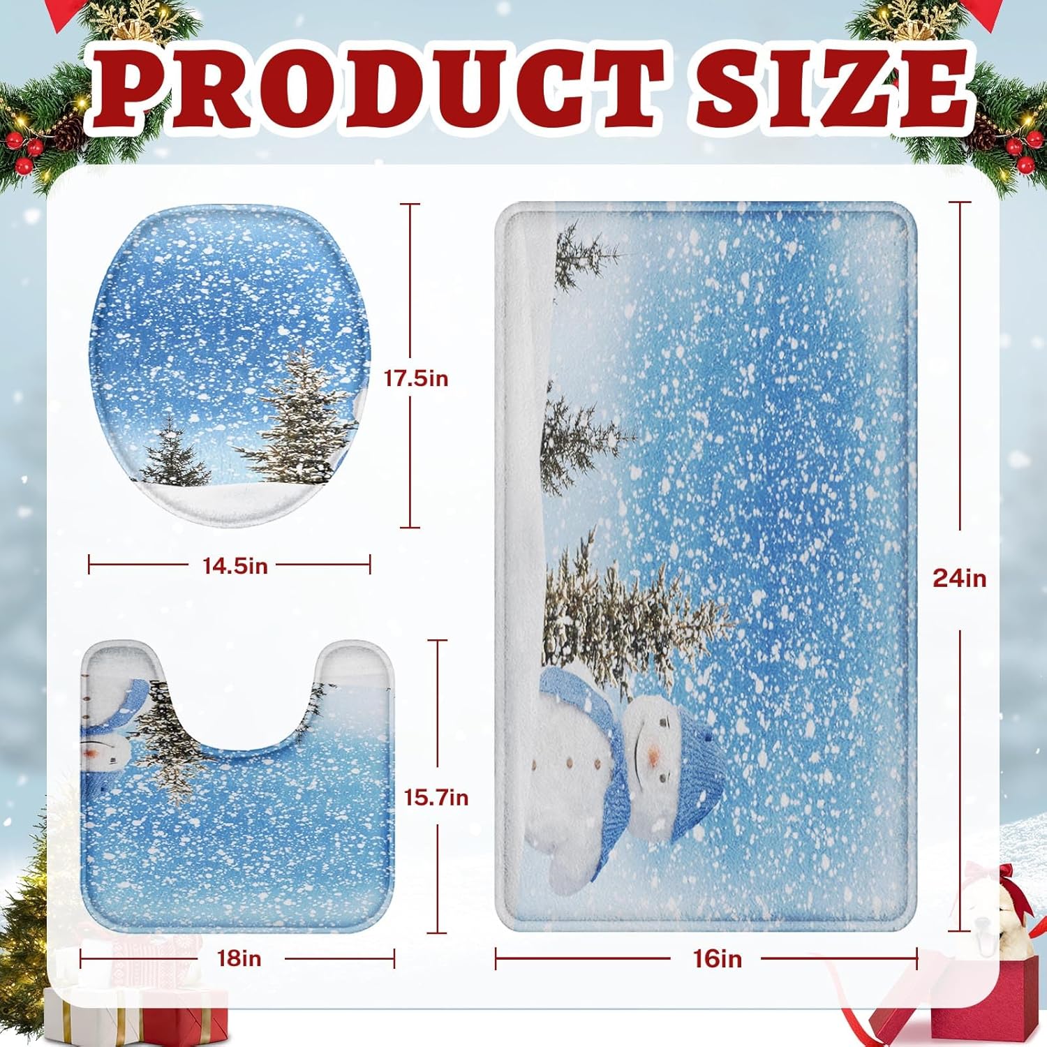 Tamaño del juego de alfombras de baño: 24 (aprox. 61.0 cm) de largo x 16 (aprox. 40.6 cm) de ancho, 18 (aprox. 45.7 cm) de largo x 15.7 (aprox. 39.9 cm) de ancho, 16.5 (aprox. 41.9 cm) de largo x 15 (aprox. 38.1 cm) de ancho. El tapete de baño mejorado es más grueso que los tapetes de baño normales. Habrá una sensación de apoyo y más comodidad cuando pises sobre ella. Protege tus pies del suelo frío al mismo tiempo que protege tu suelo de la humedad.