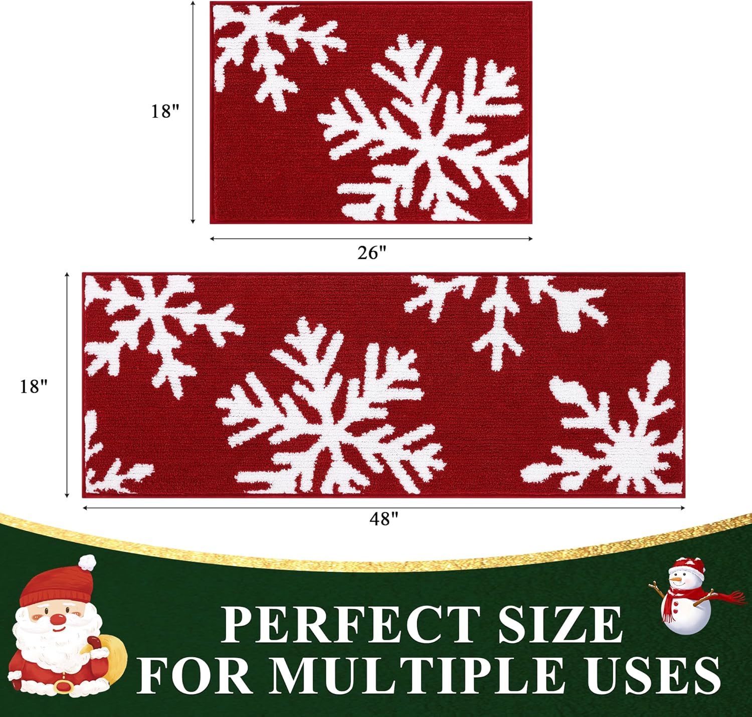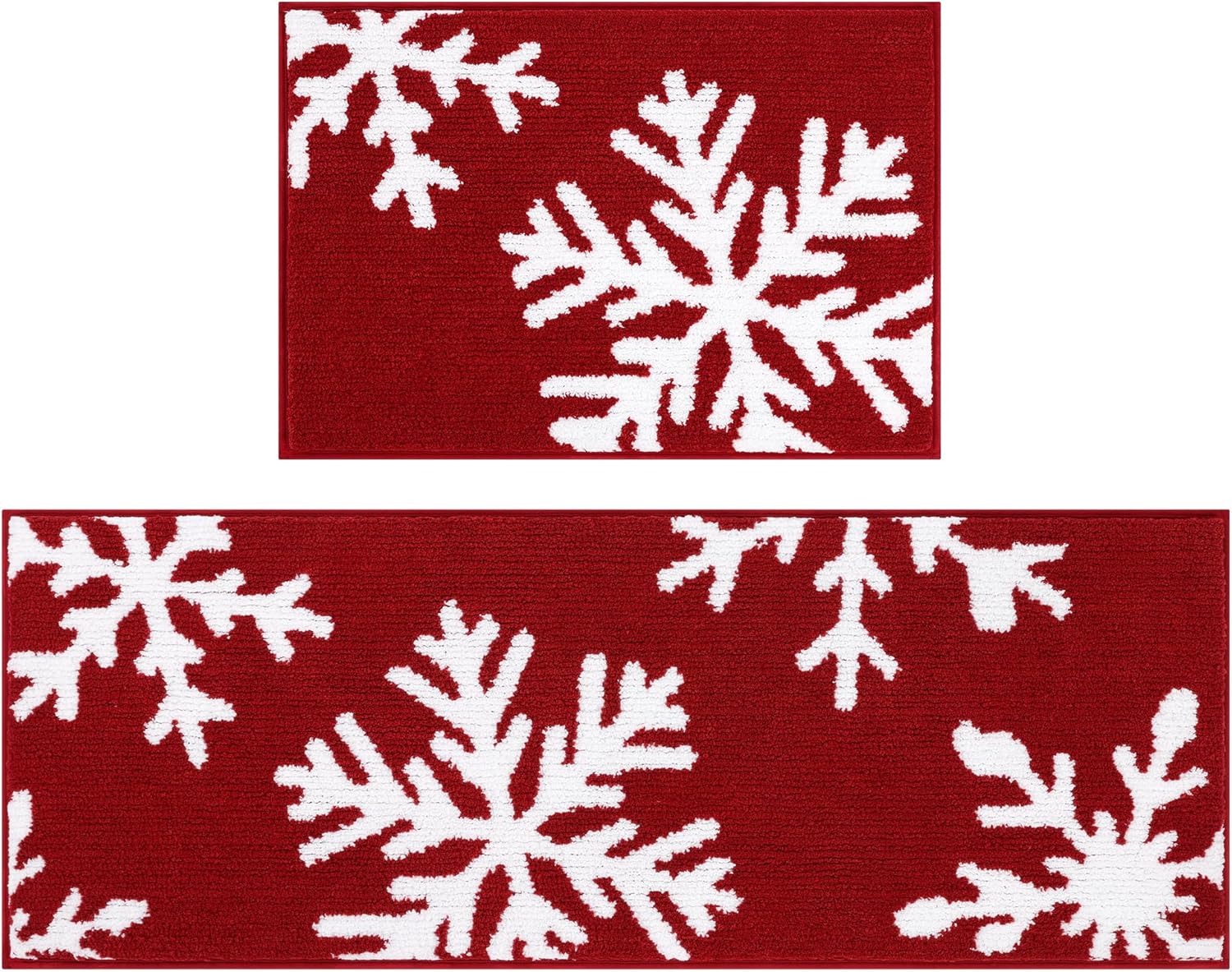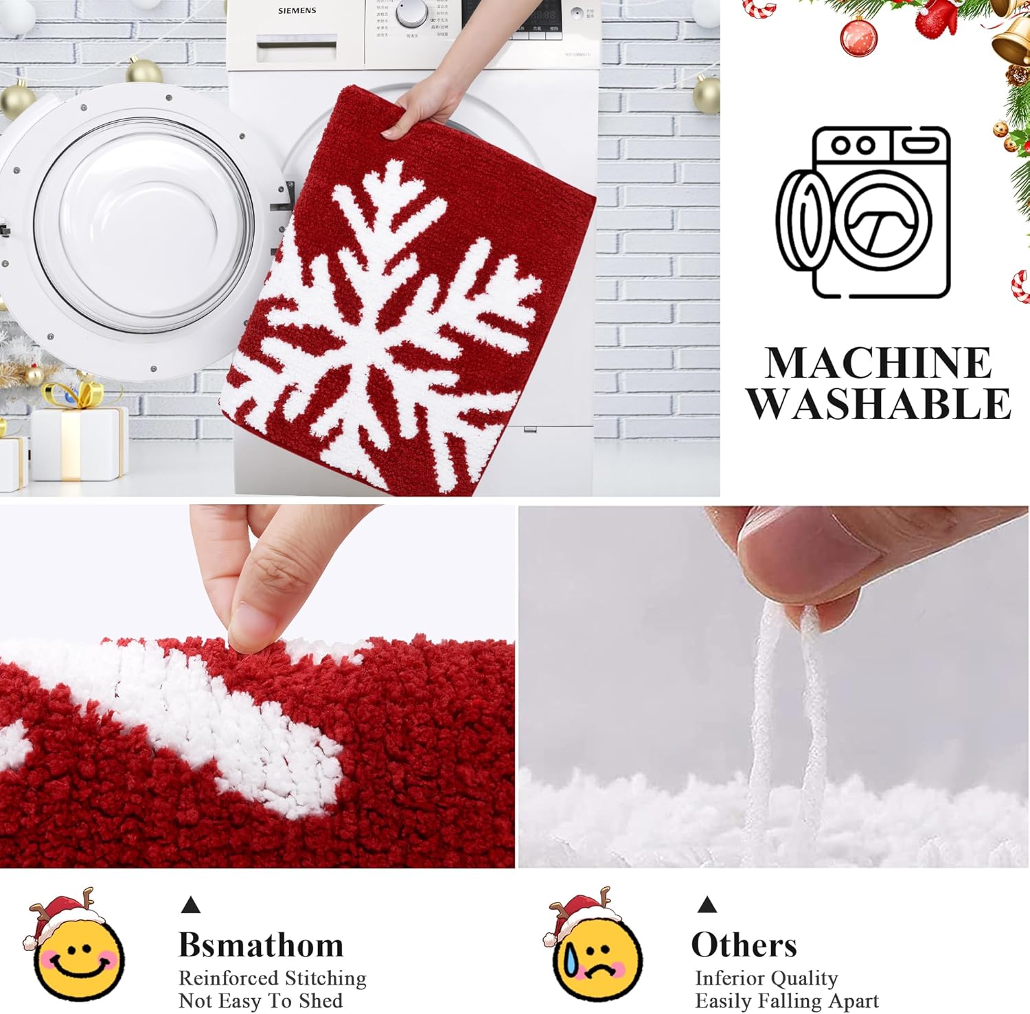 Juego de tapetes de baño de Navidad: la alfombrilla de baño antideslizante Bsmathom está diseñada con elementos de copo de nieve, delicados y lindos. Esta divertida alfombra de baño navideña le dará a tu habitación un fuerte ambiente navideño y dará la bienvenida a tus invitados y familiares.