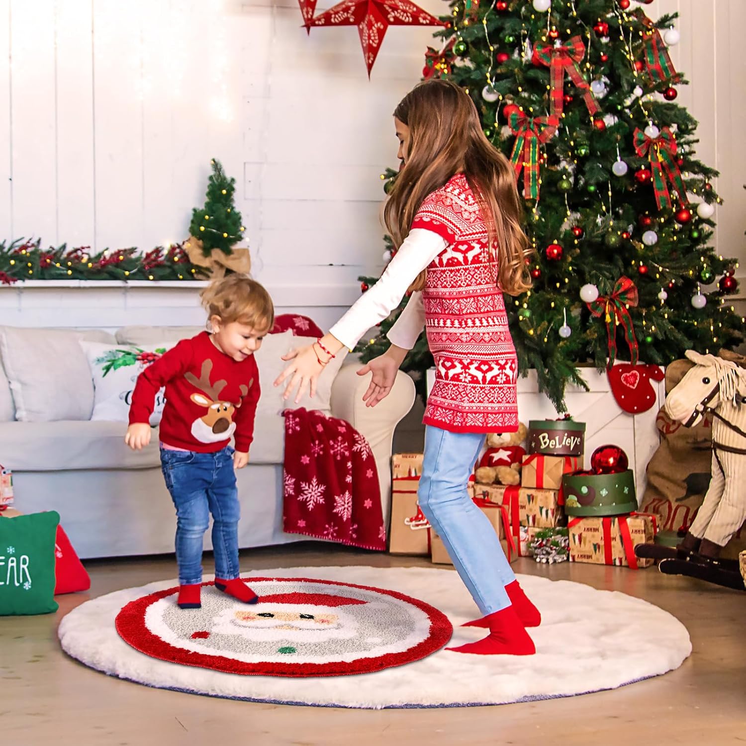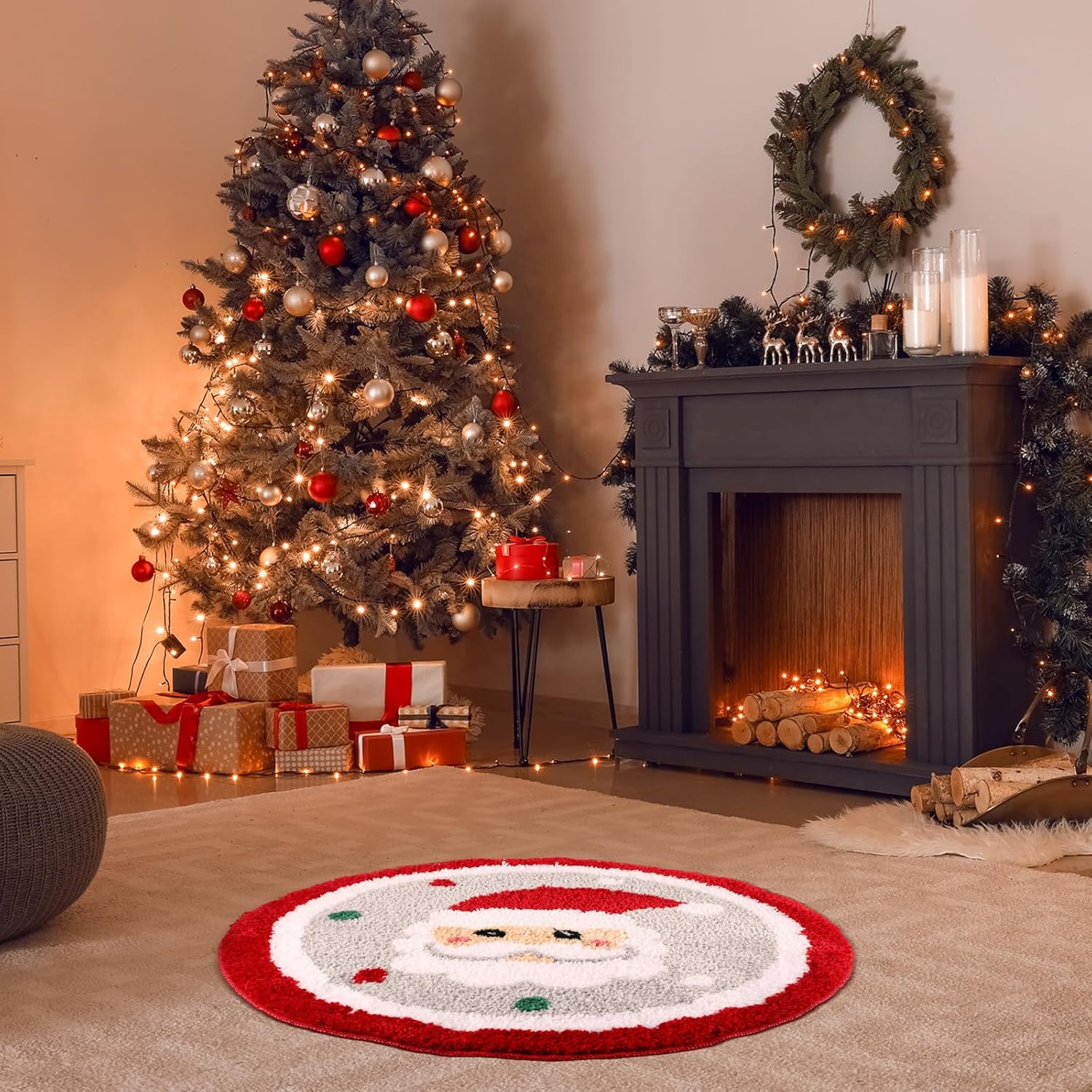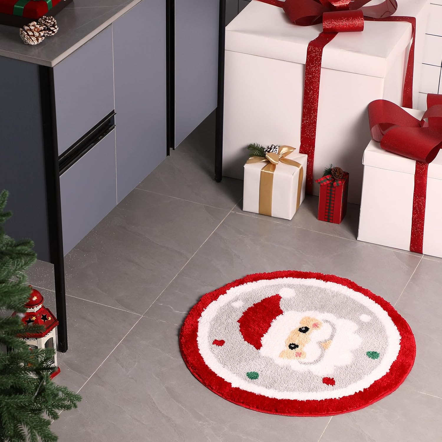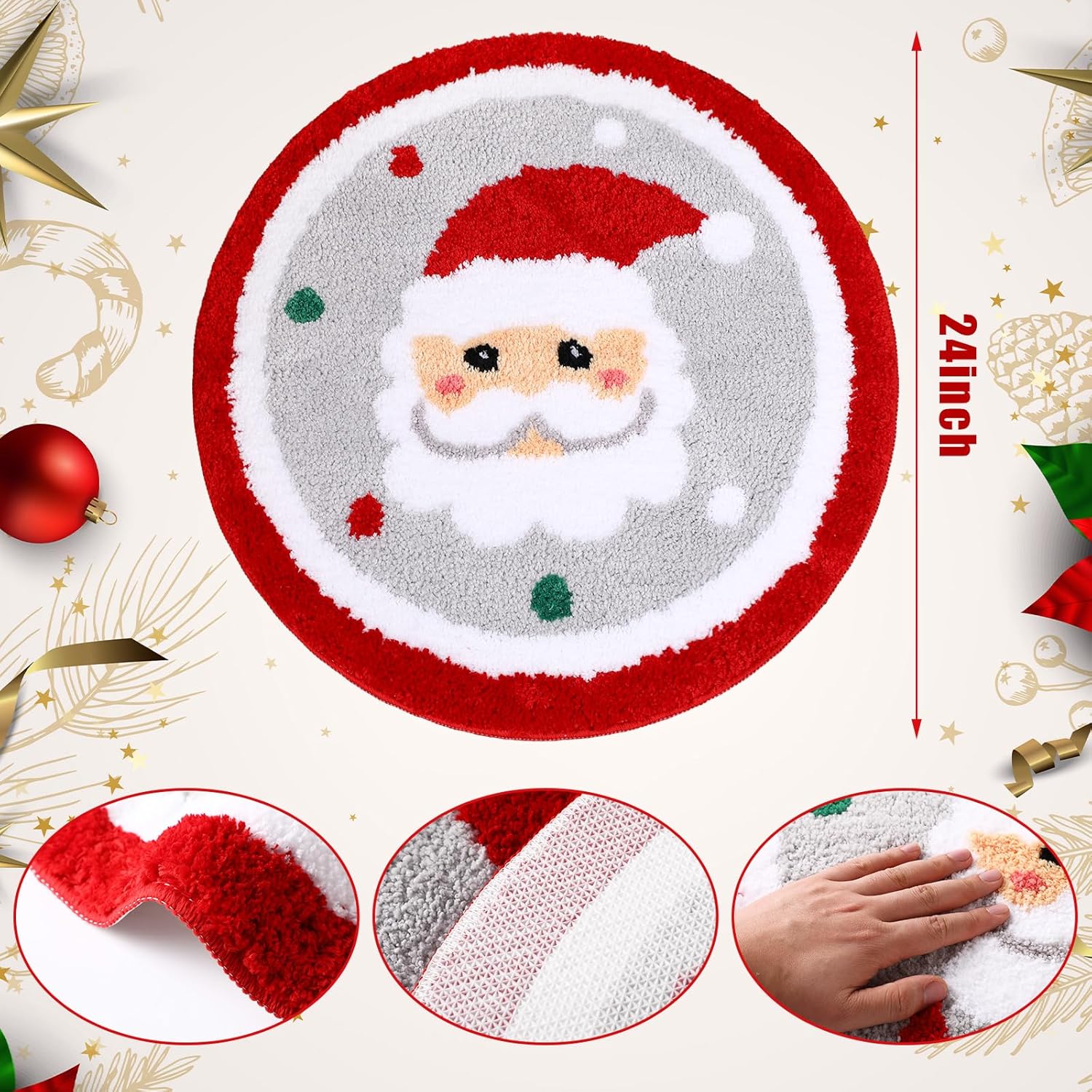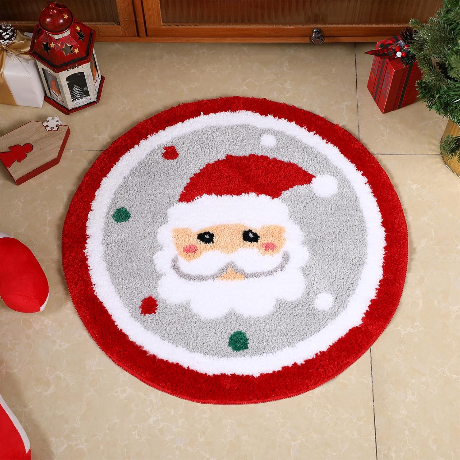 Estilo de Papá Noel de Navidad blanco: esta divertida alfombra de baño de Navidad está diseñada con Papá Noel, lo que añadirá un ambiente navideño animado a tu baño, haciendo que tu baño tenga un nuevo aspecto en el día de Navidad, y permitirá que los niños disfruten de una Navidad feliz y divertida
