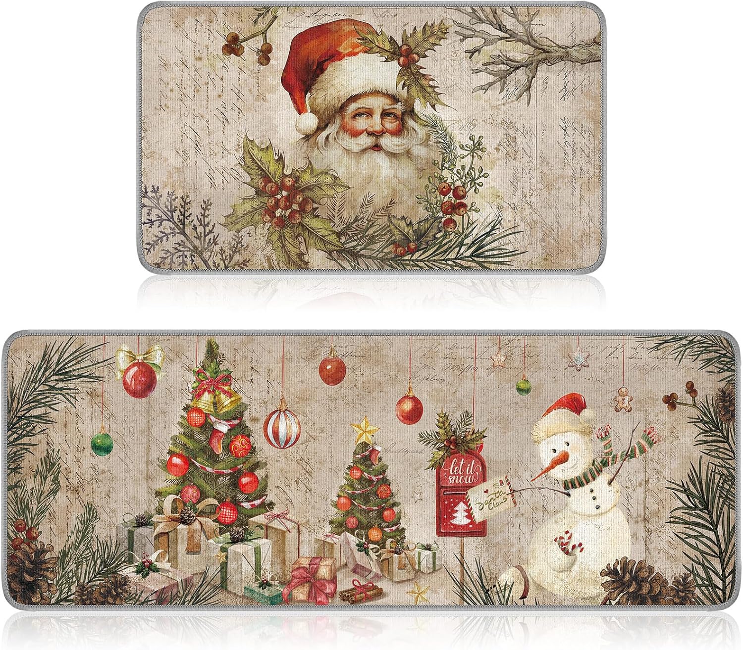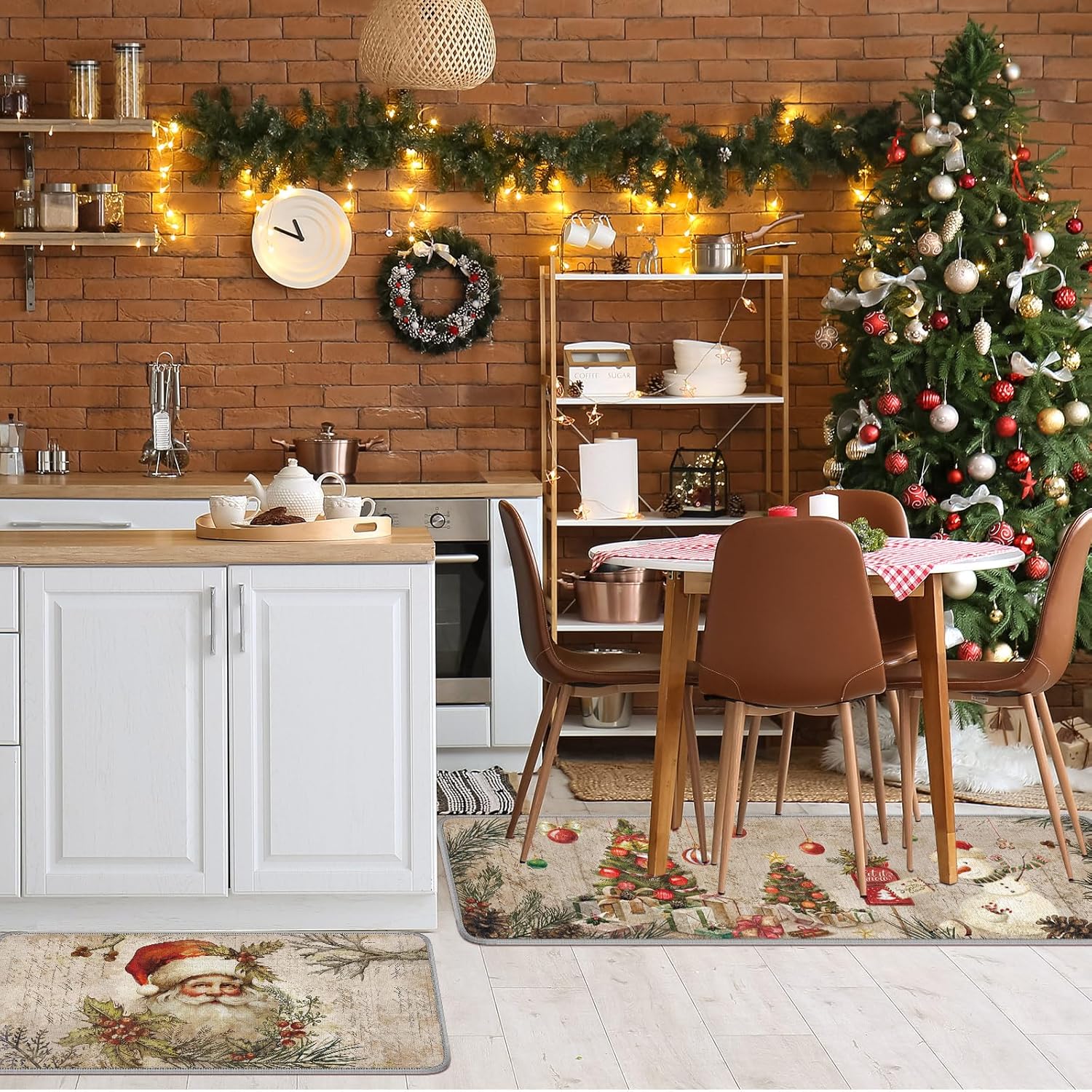 Diseño atractivo: estas alfombras de cocina de Navidad cuentan con un proceso de impresión 3D, asegurando que no se decoloren, no se encogen y no se encogen imágenes claras; este proceso de impresión y teñido añade hermosos y creativos temas navideños a tu hogar, mejorando tu disfrute y comodidad