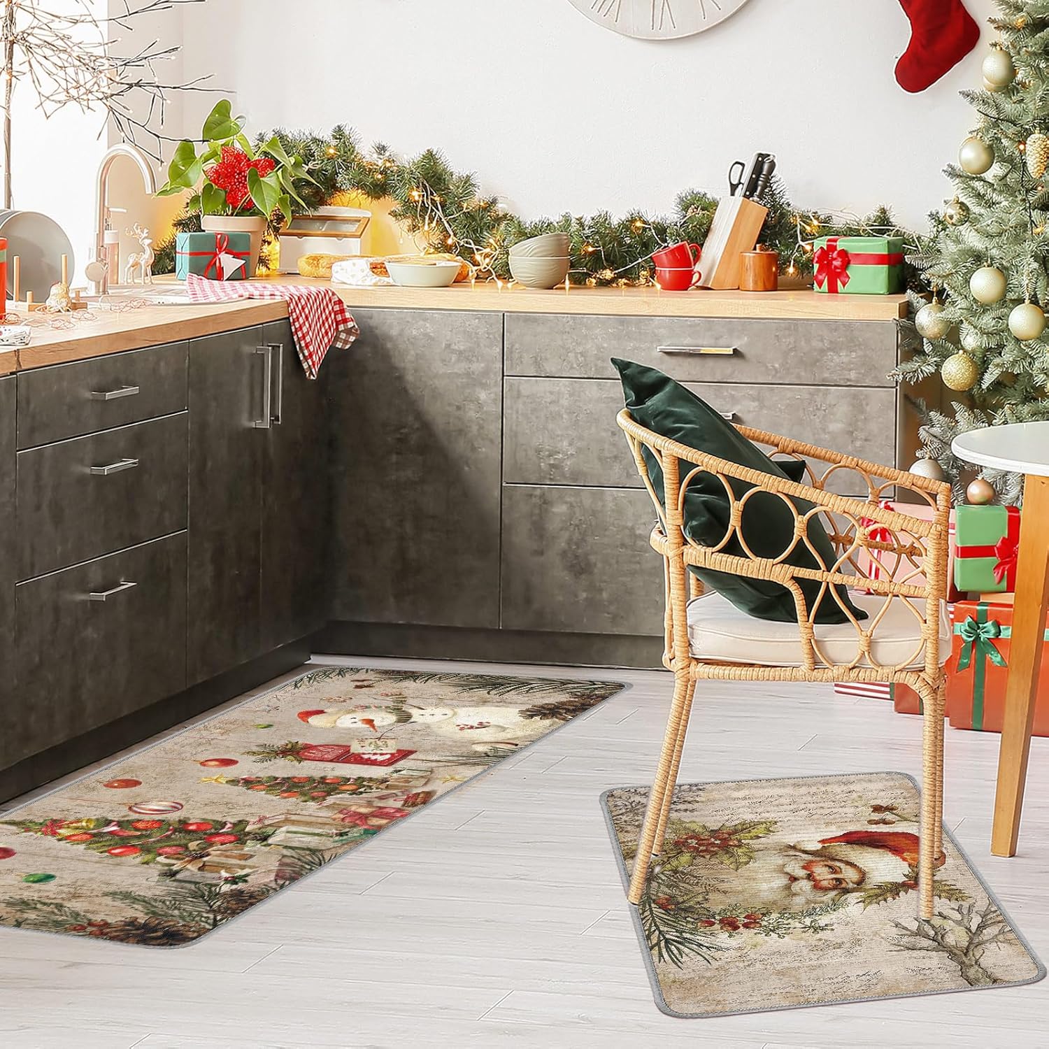 Juego completo de alfombras de cocina navideñas: este paquete incluye 2 alfombras de cocina de Navidad adecuadas para mejorar el ambiente festivo en tu hogar; una pieza sirve como alfombra de puerta y la otra como alfombra de cocina, con diseños de Papá Noel y muñeco de nieve, añadiendo un toque de calidez a tu hogar durante la temporada de Navidad