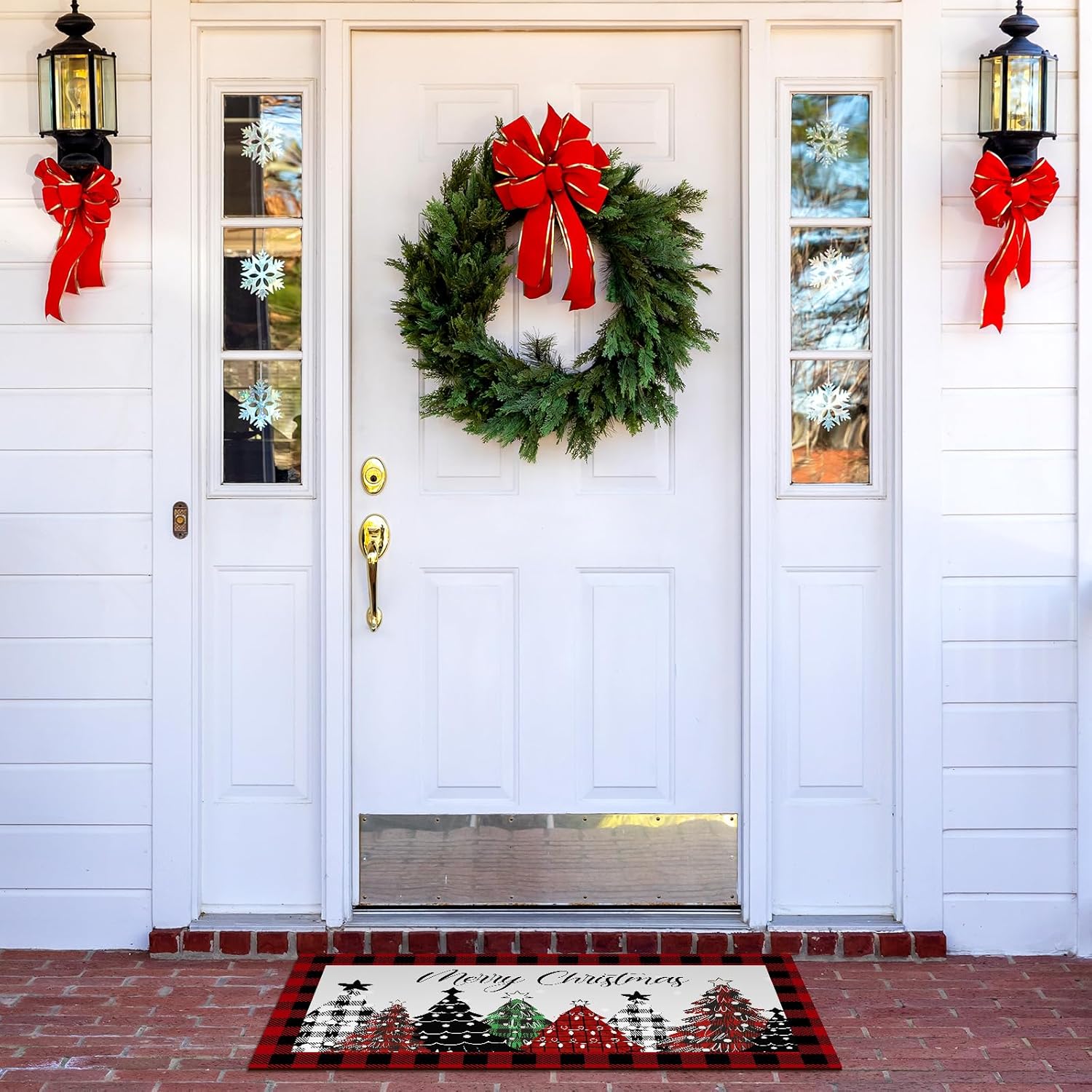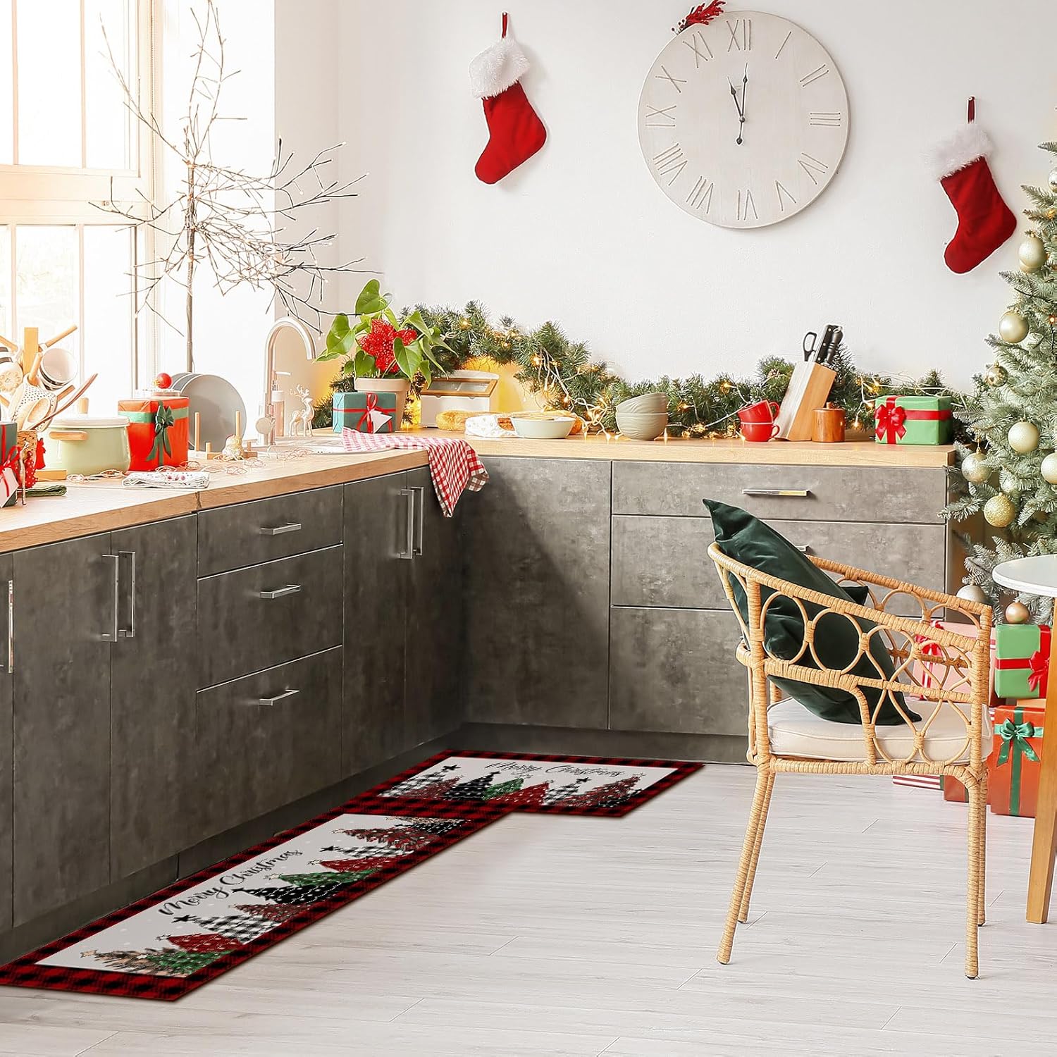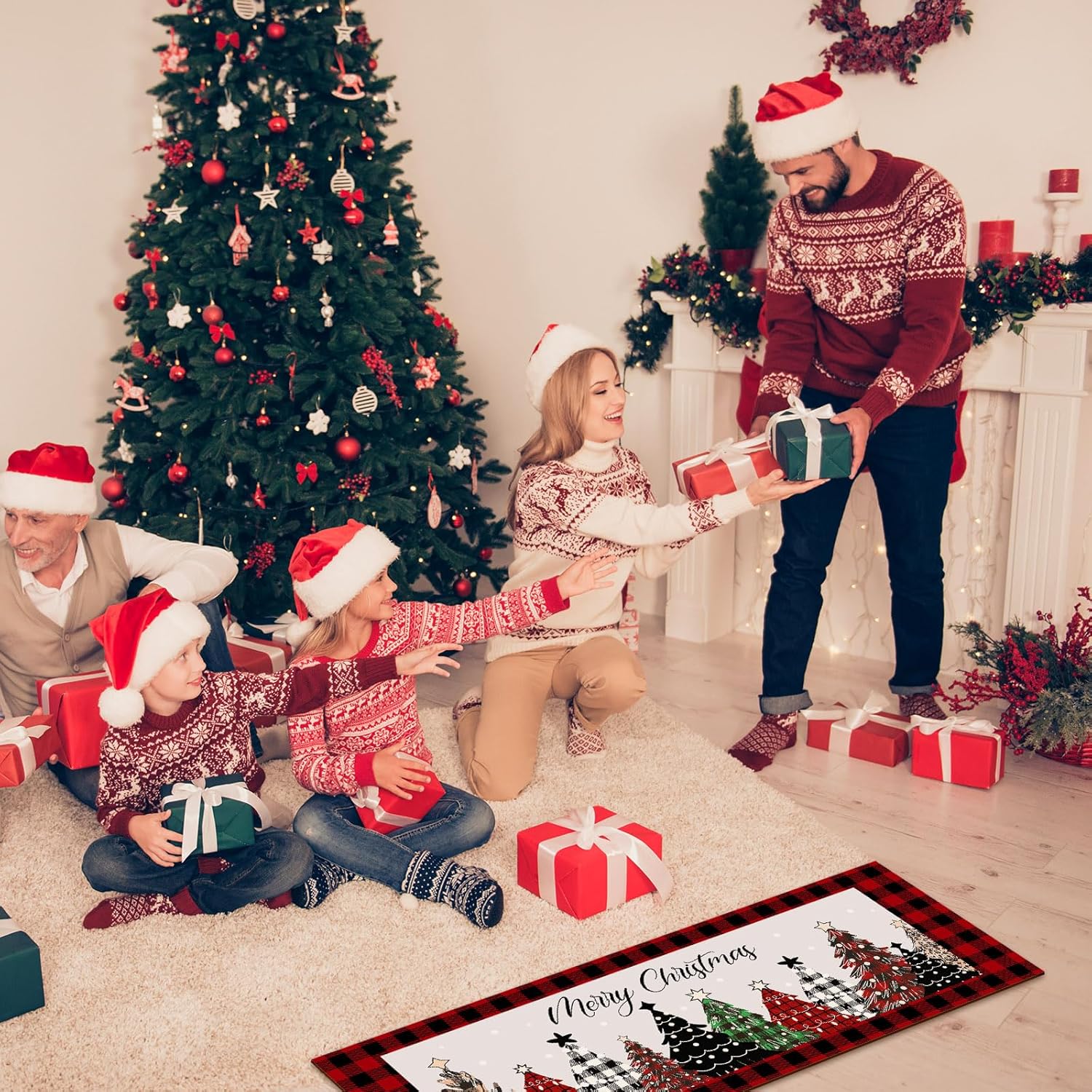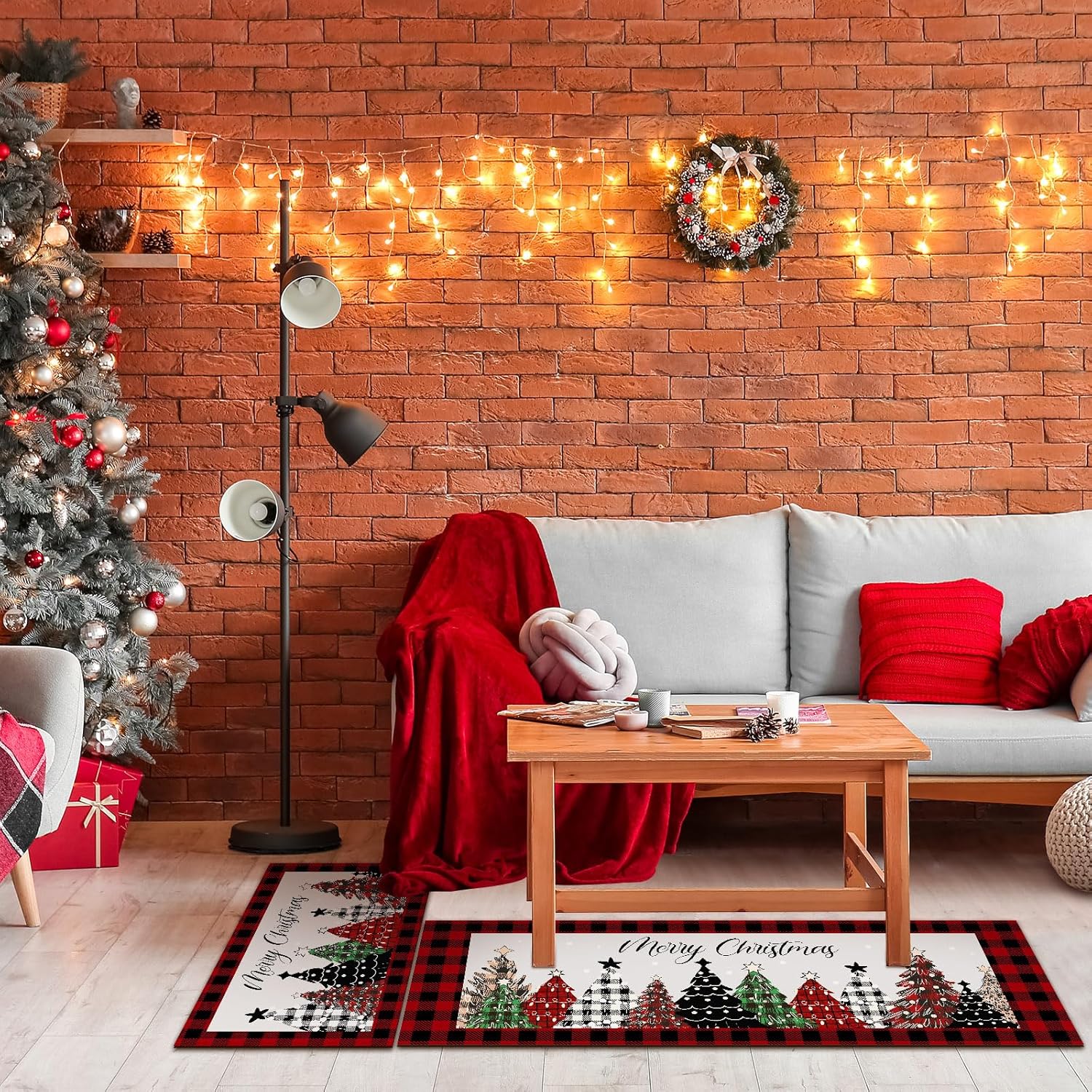 Diseño delicado y amplia aplicación: nuestros tapetes cuentan con patrones de cuadros rojos combinados con un árbol de Navidad, añadiendo un hermoso paisaje a tu hogar; el patrón de color de moda del tapete combina armoniosamente con cualquier decoración, por lo que es un regalo ideal para amigos, seres queridos y familia; se puede aplicar en múltiples lugares de casa, con una parte inferior antideslizante que evita que se muevan; es adecuado para baños, cocinas, salas de estar, dormitorios, oficinas, etc