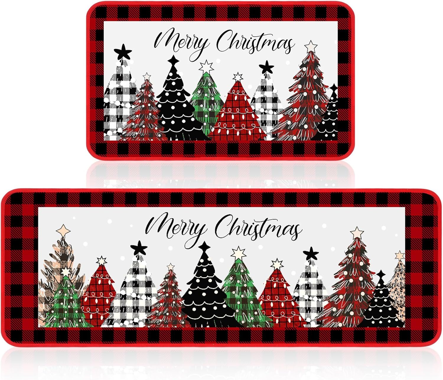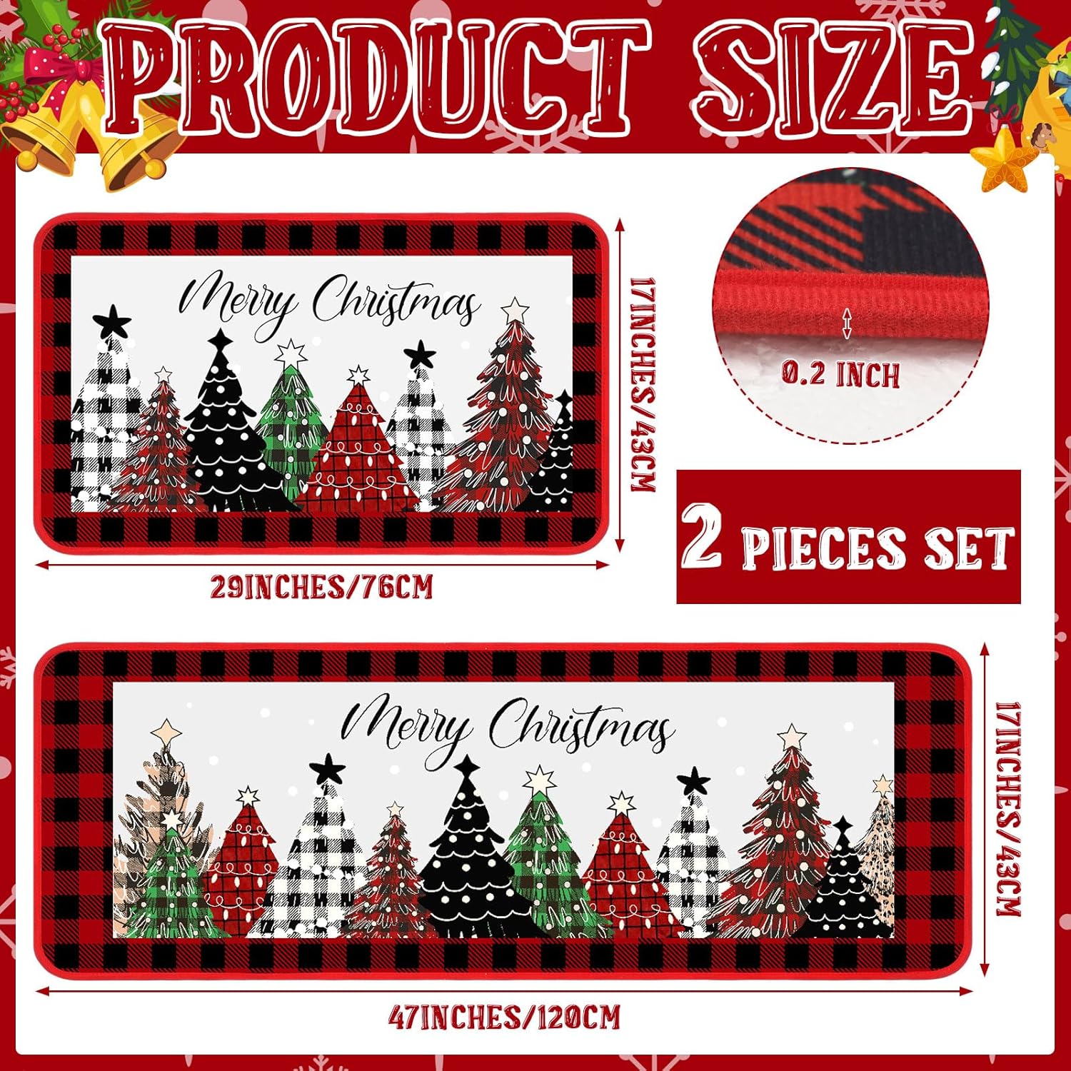 El paquete incluye: nuestros juegos de alfombras antideslizantes de árbol de Navidad a cuadros rojos miden 17 x 29 (aprox. 73.7 cm) y 17 x 47 (aprox. 119.4 cm), grosor de 0.2 (aprox. 0.5 cm); una larga y otra corta, lo que las hace del tamaño adecuado para la cocina; nuestros elegantes tapetes de cocina son una hermosa adición a tu cocina, comedor, salas de manualidades y espacios de oficina