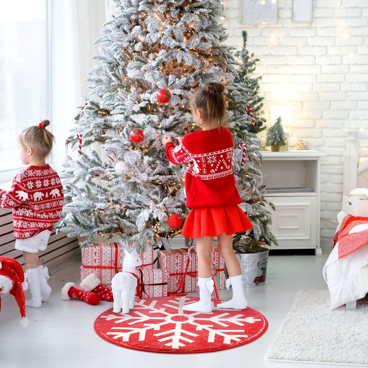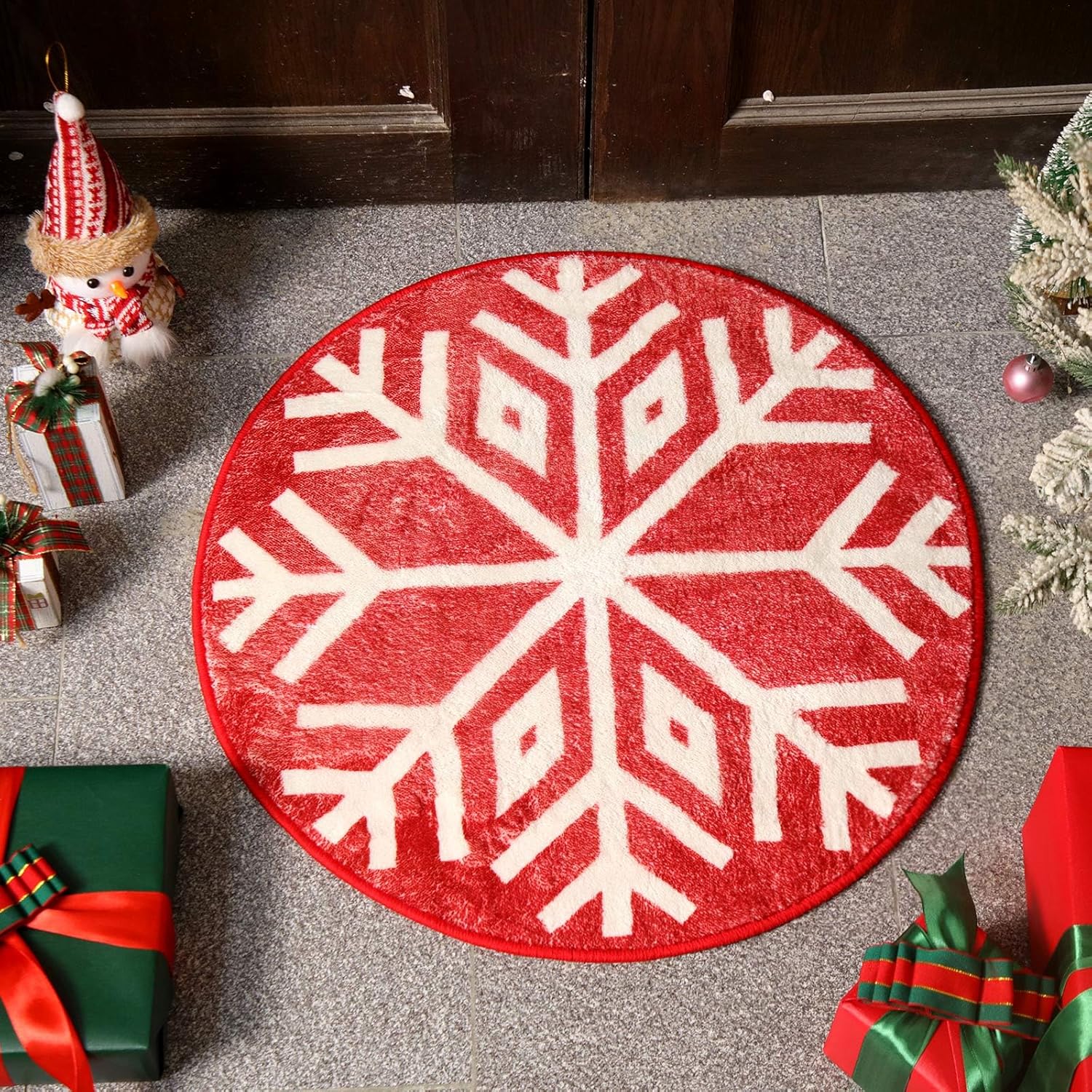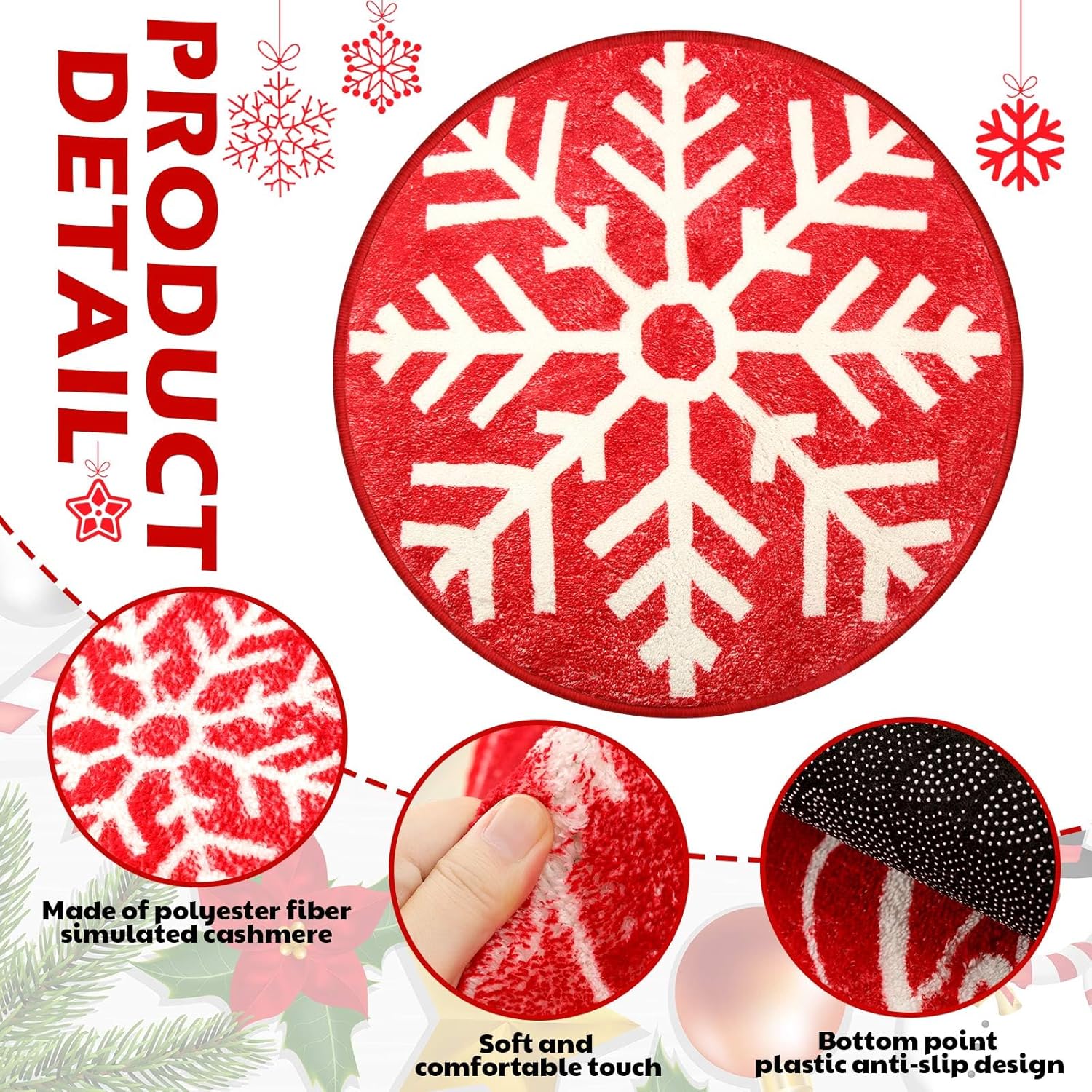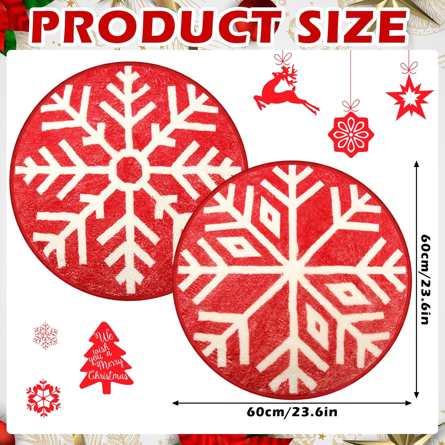 Elementos navideños: recibirás 2 alfombras de baño de Navidad, diseñadas con copo de nieve blanco, elementos clásicos de Navidad, sobre fondo rojo, para el tema de invierno, delicado y atractivo, se puede aplicar como una bonita decoración en tu hogar